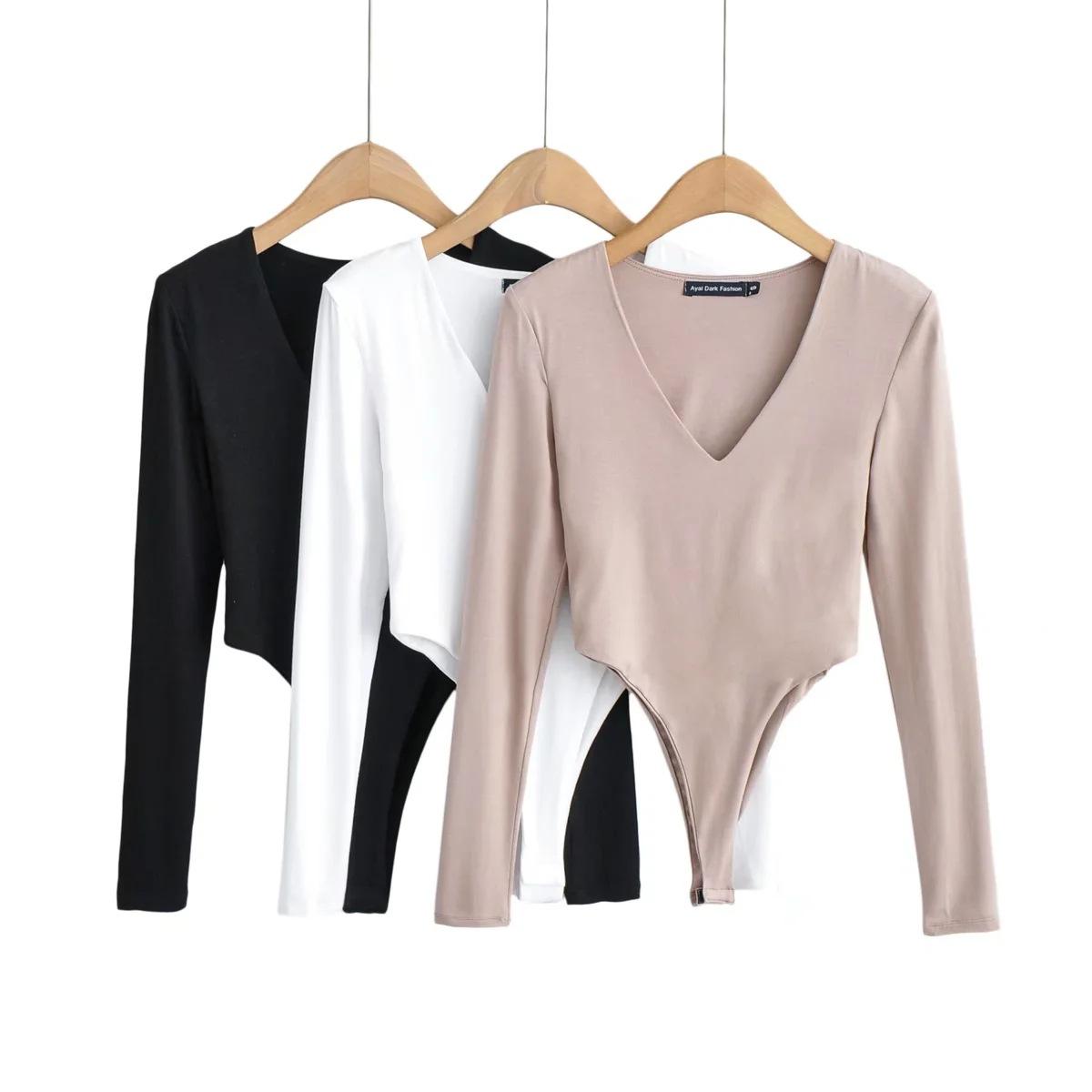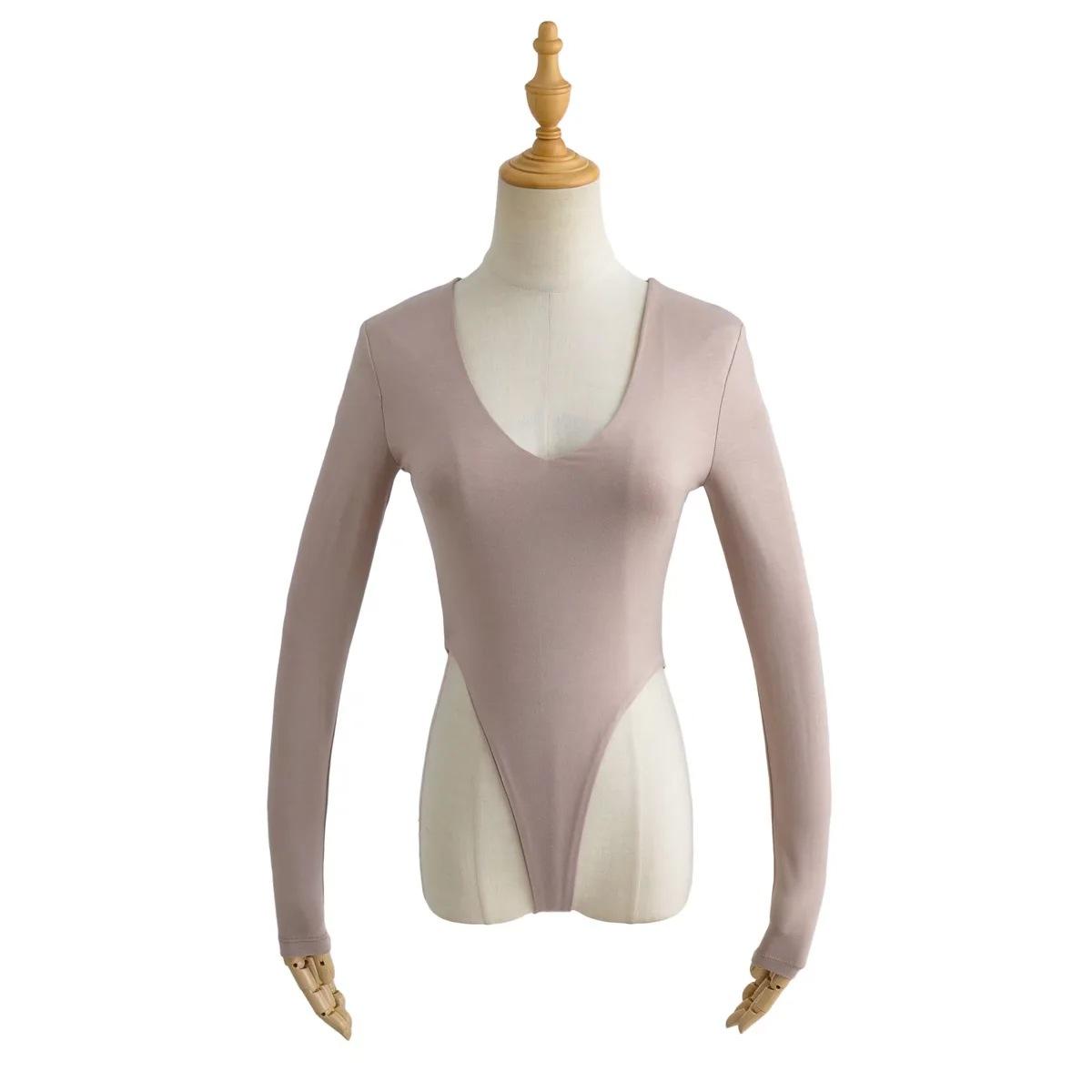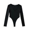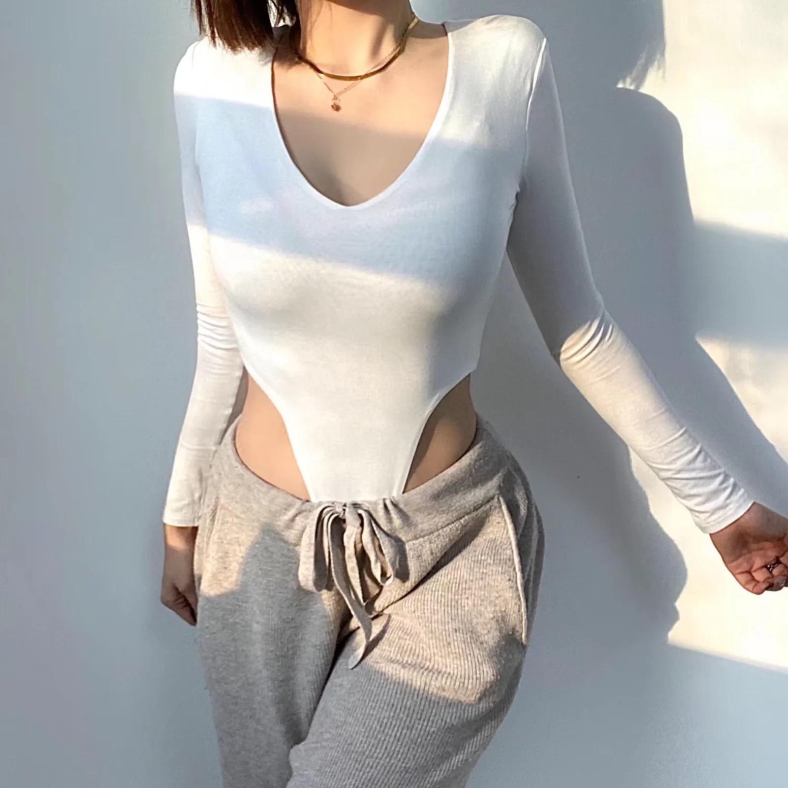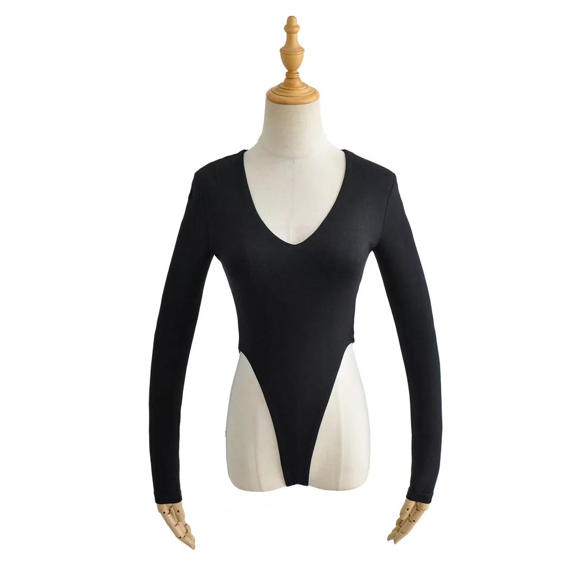 Mono Sexy de Cuello en V Profundo y Manga Larga 2023 Primavera Nuevo Ins Estilo Europeo y Americano Doble Capa Ajustado Sin Cintura Top Tipo Camiseta
