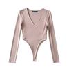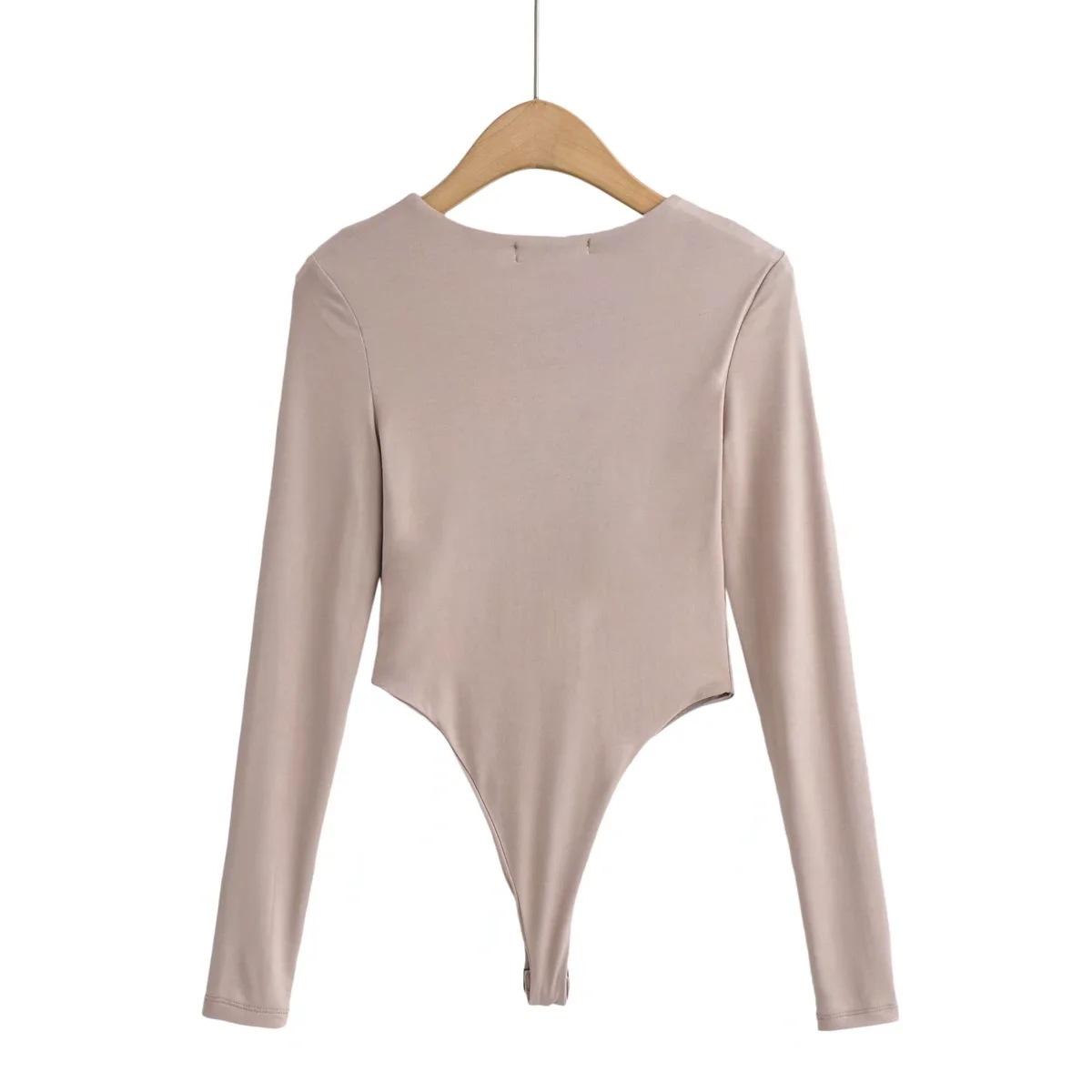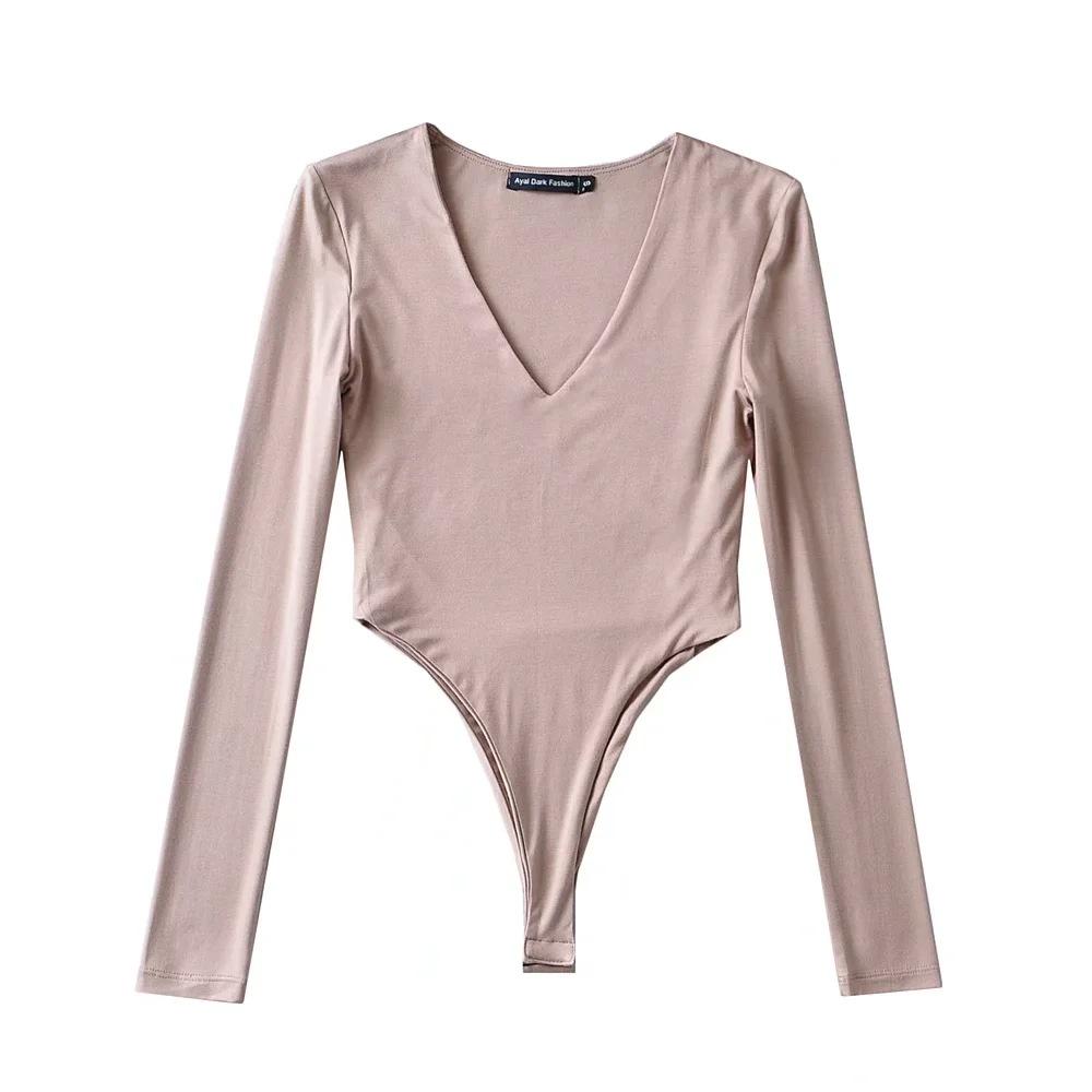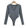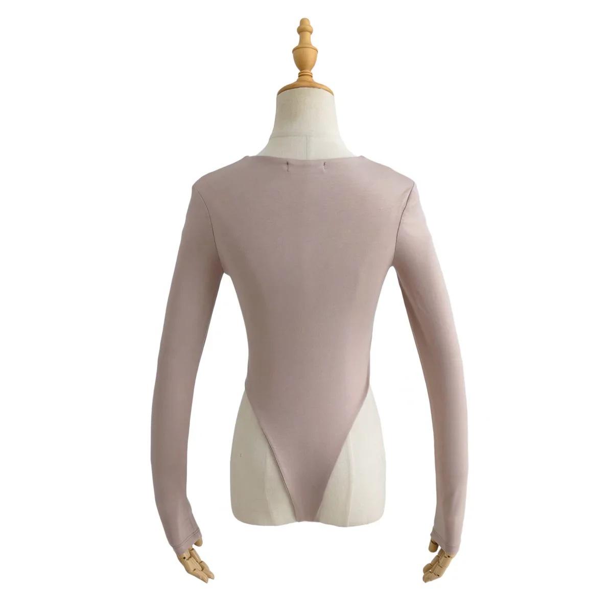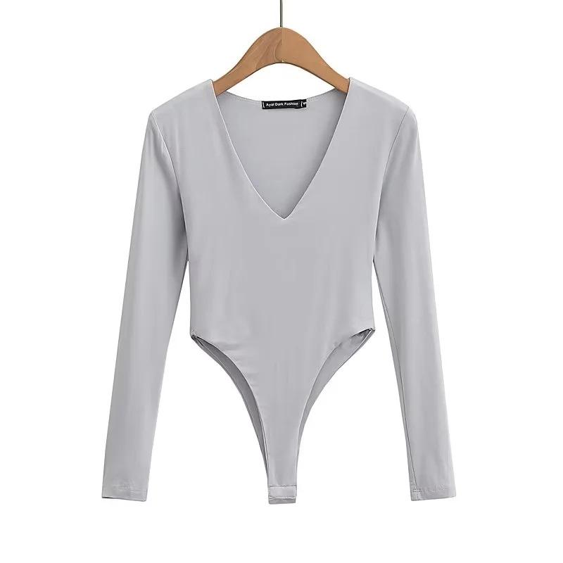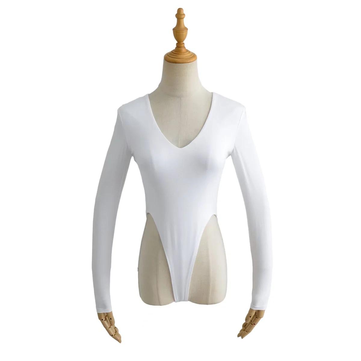 Mono Sexy de Cuello en V Profundo y Manga Larga 2023 Primavera Nuevo Ins Estilo Europeo y Americano Doble Capa Ajustado Sin Cintura Top Tipo Camiseta