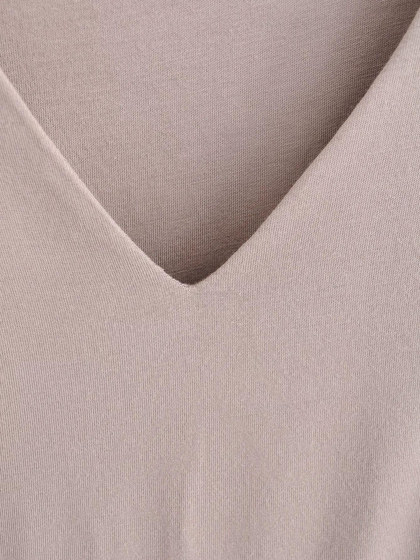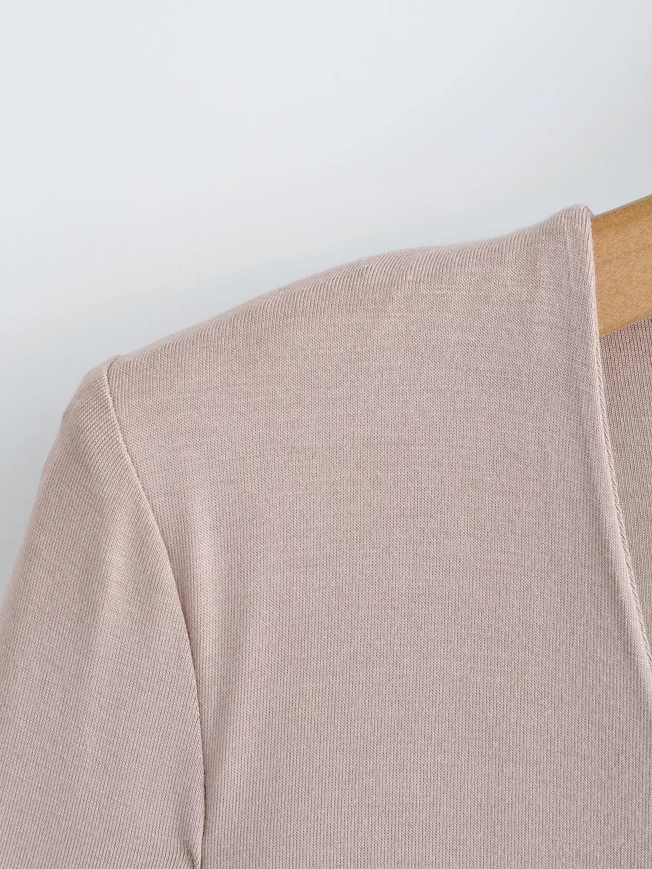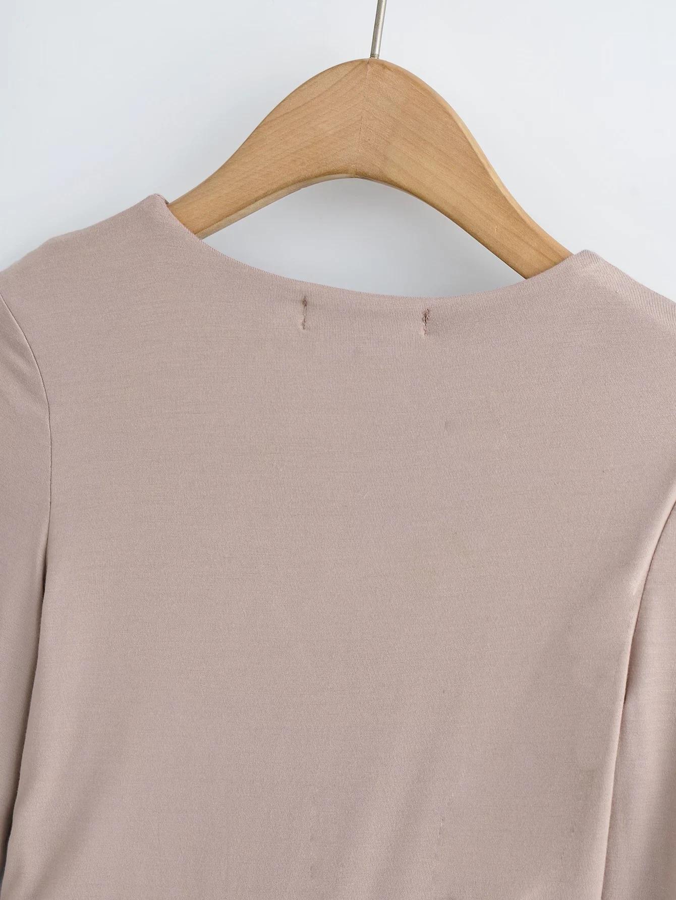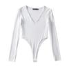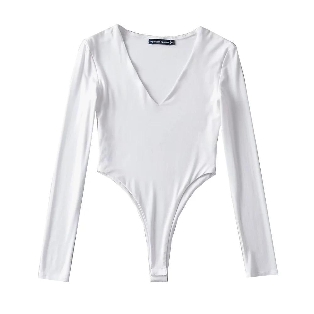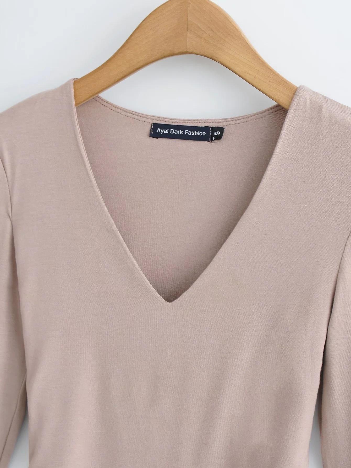 Mono Sexy de Cuello en V Profundo y Manga Larga 2023 Primavera Nuevo Ins Estilo Europeo y Americano Doble Capa Ajustado Sin Cintura Top Tipo Camiseta