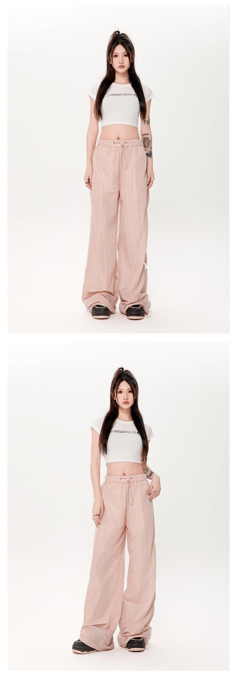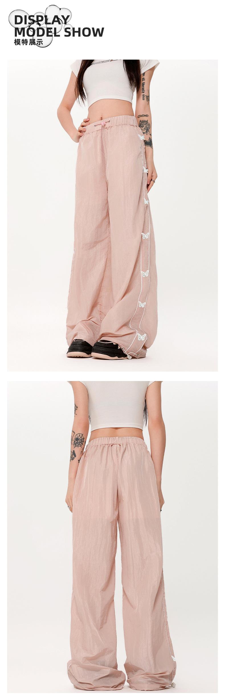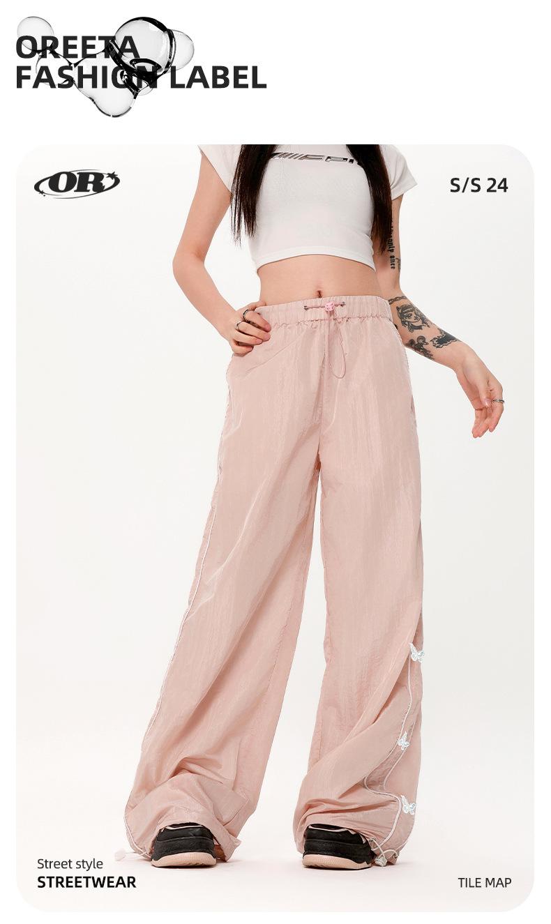 Compra OREETA Pantalones Deportivos Casuales Delgados Transpirables para Mujer Diseño Otoñal Lazo Pierna Ancha Casual al por mayor en Joom.pro