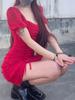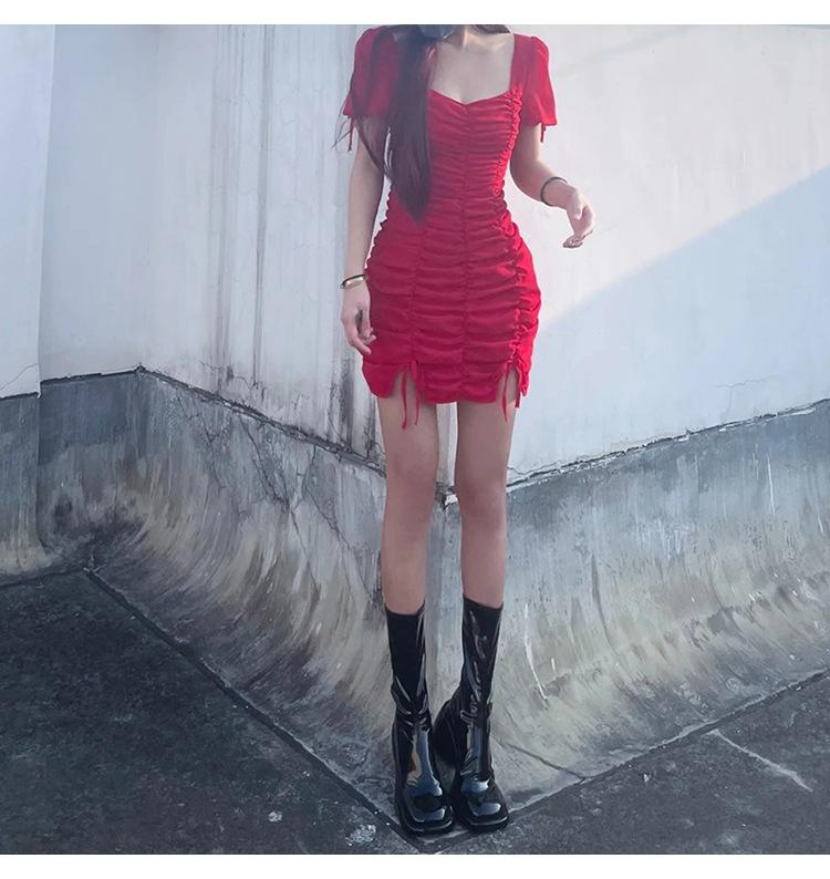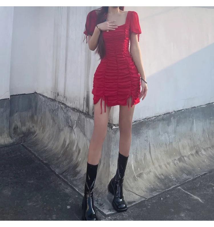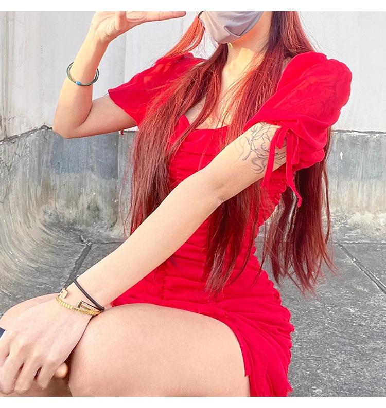 Vestido ajustado con mangas abullonadas, cuello cuadrado, plisado y cordón súper blanco. Beneficios exclusivos para fanáticos. Sin reembolso ni cambio.