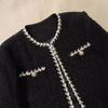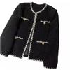 2025 Nueva Chaqueta Elegante de Tweed Estilo Francés para Dama con un Tacto de Alta Gama, Abrigo Grueso de Tweed Negro para Mujer, Otoño e Invierno