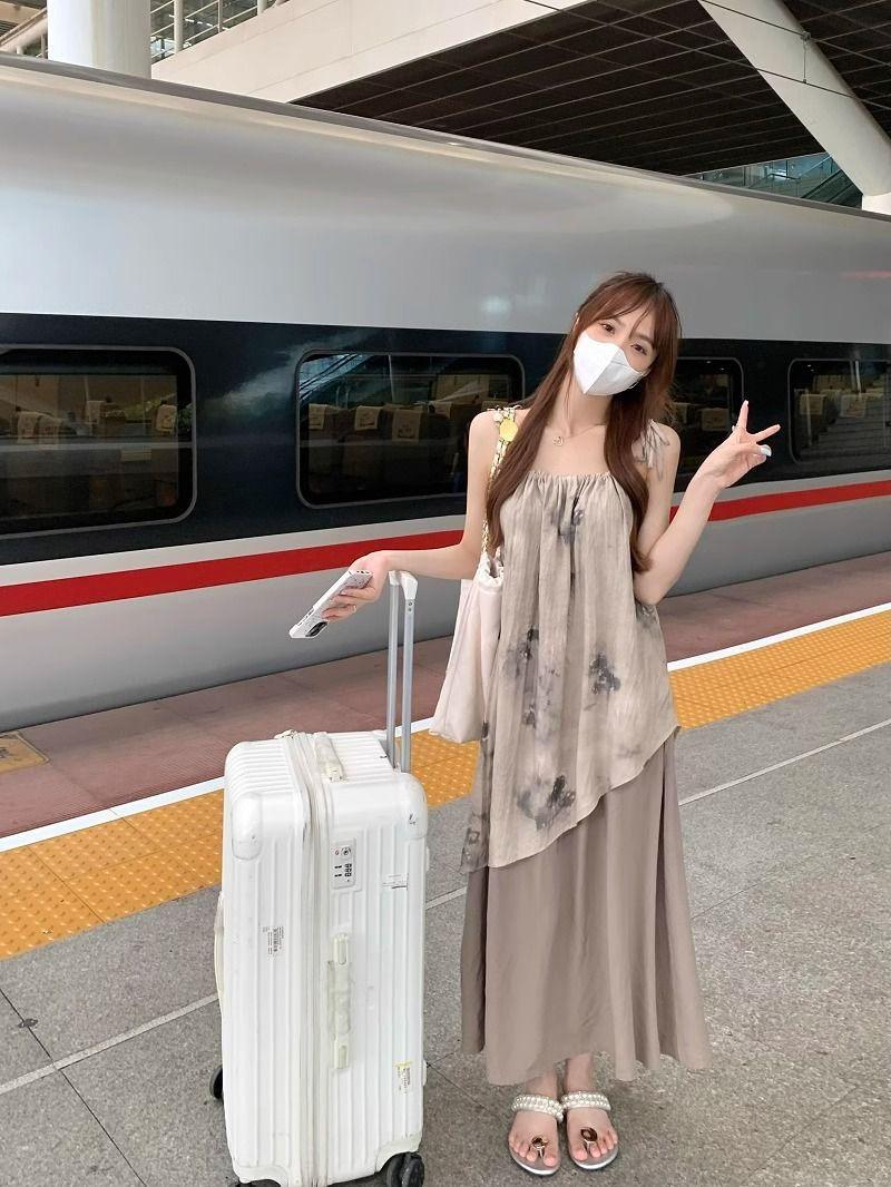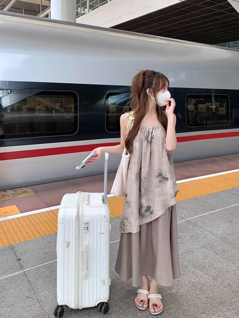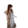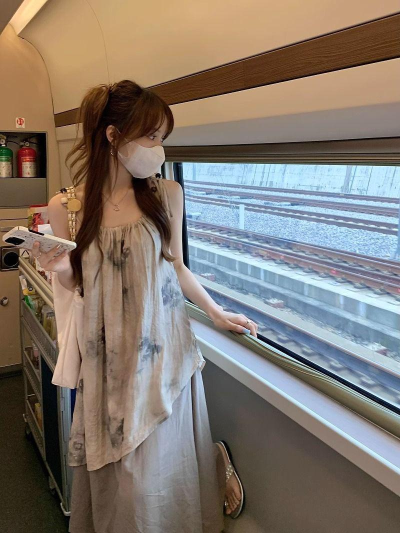 Vestido Guofeng Estampado Falso de Dos Piezas para Mujer 2024 Retro Verano Nuevo Tirantes Talla Grande Suelto Estilo Occidental Vestido Largo para Mujer