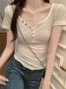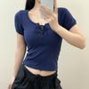 Camiseta de manga corta ajustada con cuello redondo y escote en el ombligo, estilo Spice Girls, estilo europeo y americano, nueva camiseta de verano elástica de color liso para mujer.