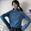 Camiseta base de terciopelo de color puro para mujer otoño e invierno ajuste ceñido top adelgazante nuevo de Dongdaemun camiseta de manga larga con medio cuello alto para mujer