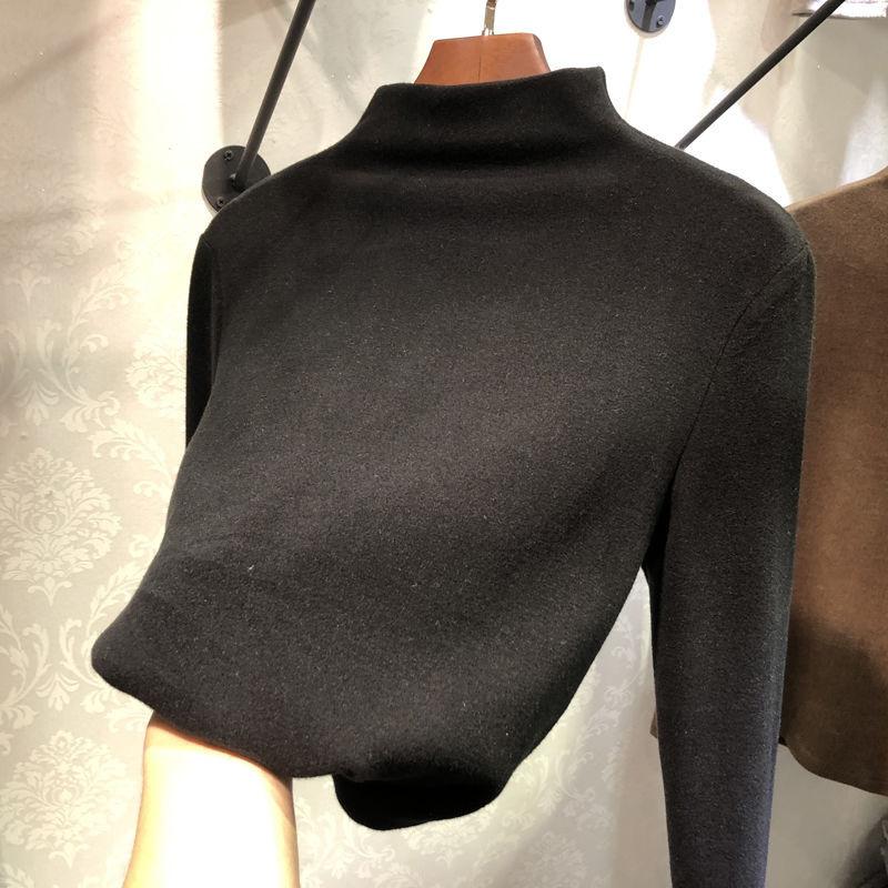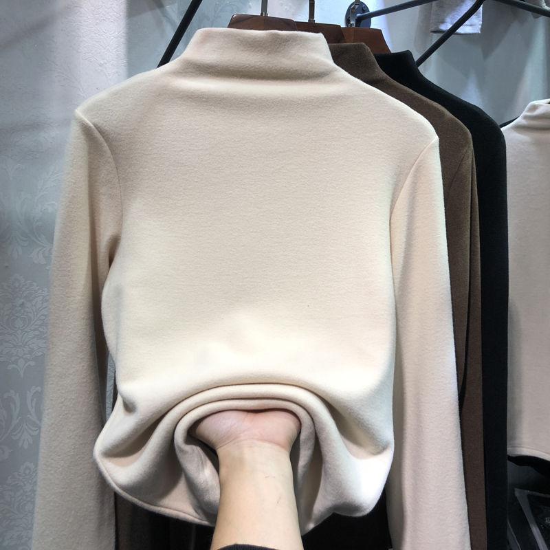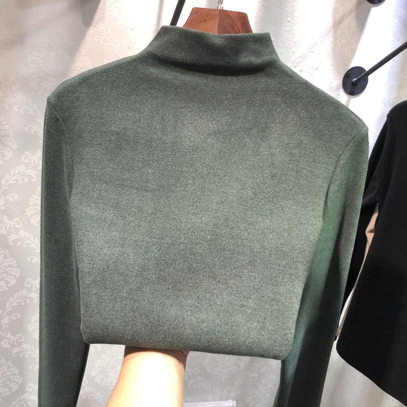 Camiseta básica de cuello alto medio cepillada de color sólido para mujer 2025 Otoño e Invierno Tops ajustados para mujer Camisetas casuales de manga larga para mujer