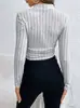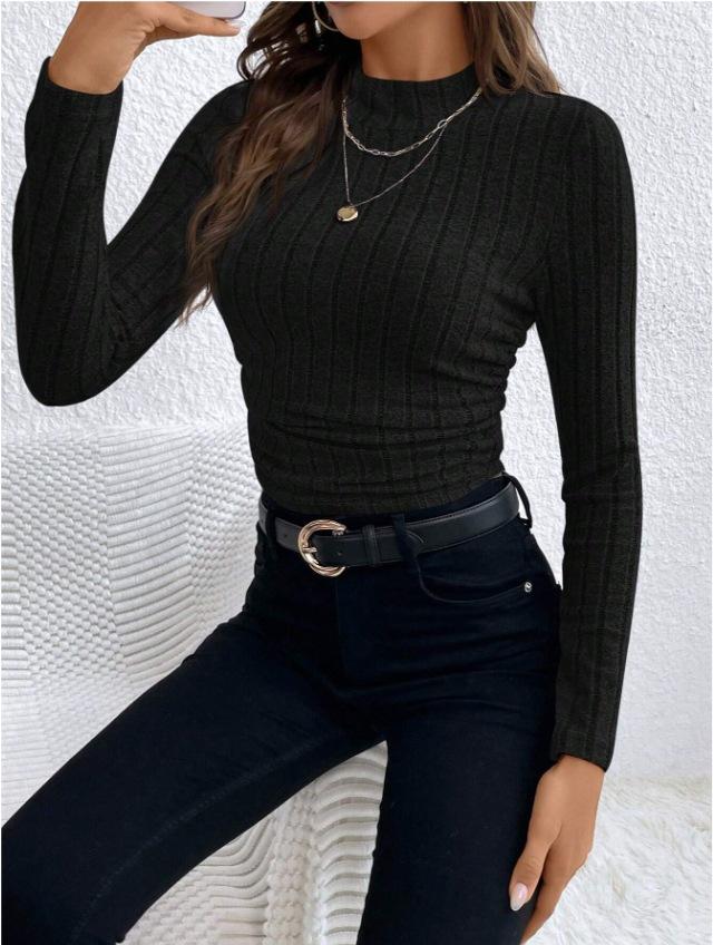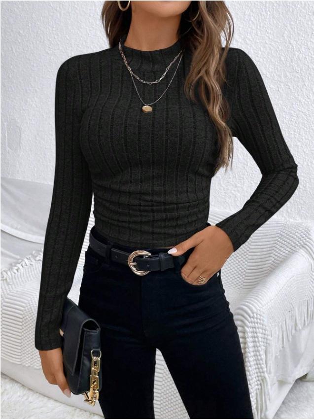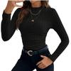 Moda Femenina Otoño/Invierno 2023 Transfronteriza Amazon Ajuste Slim Camiseta de Forro Polar Acanalada Moderna Cool Estilo Europeo y Americano