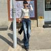 Jeans de Cintura Alta Yuyi para Mujer Básicos Elásticos Slim Casual Versátiles Acampanados