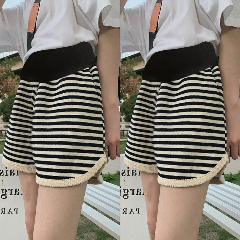 Pantalones cortos de verano para embarazadas, ropa exterior, con soporte abdominal, ajustables, de pierna ancha, talla grande, con base a rayas, finos y antiluz.