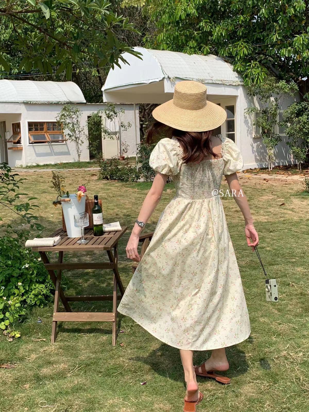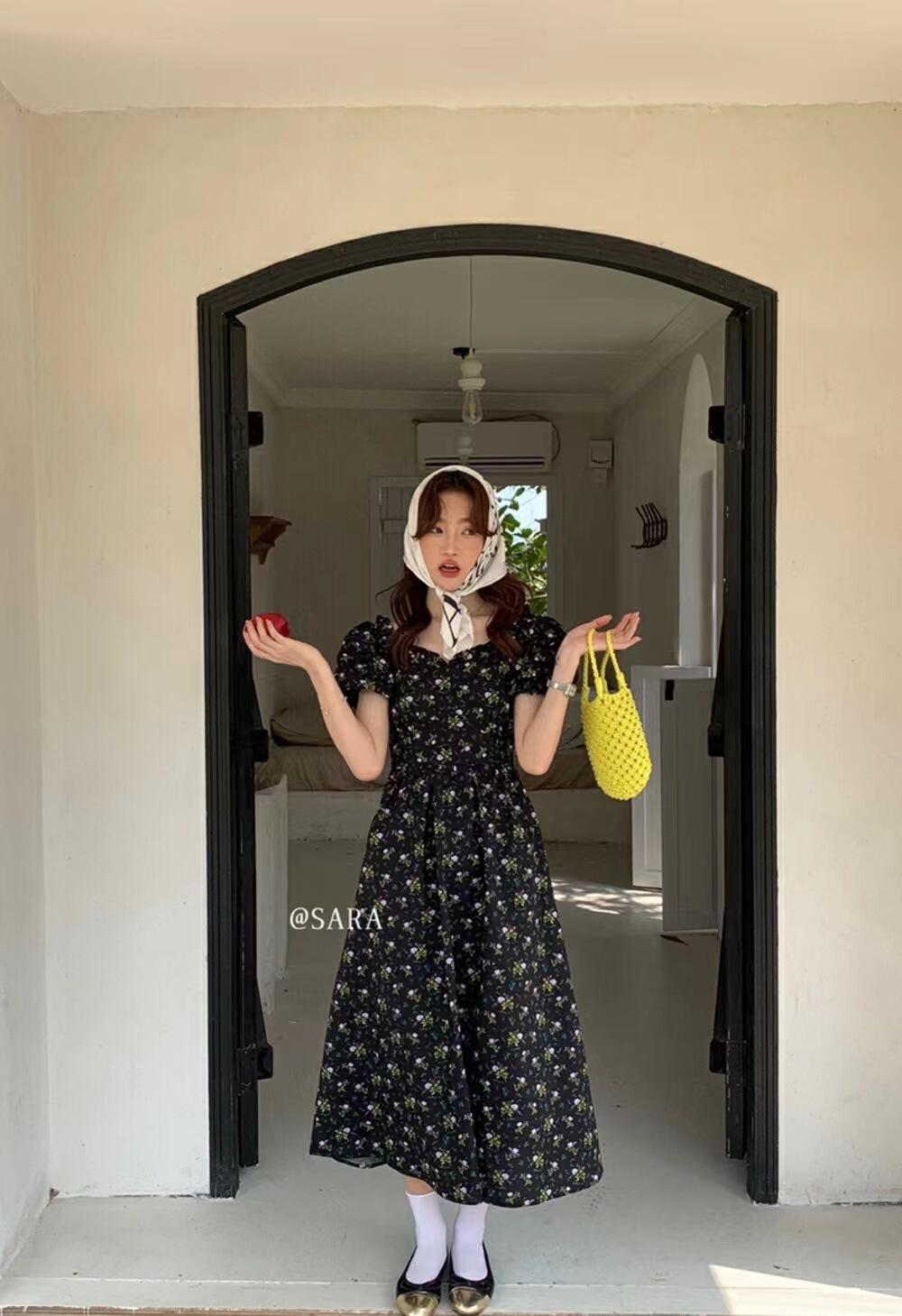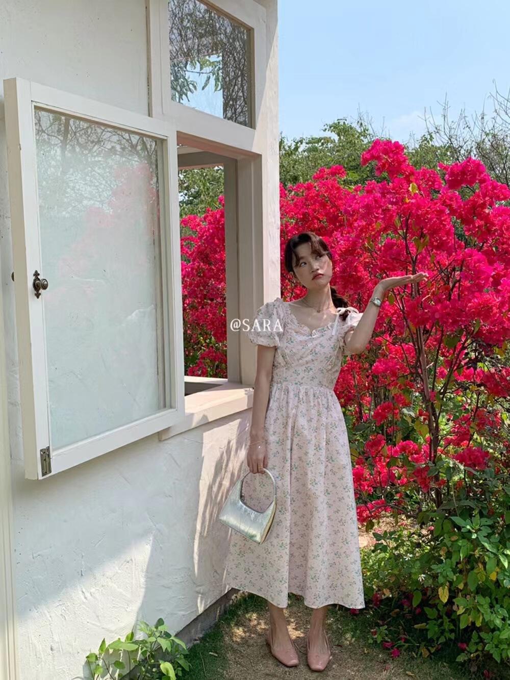 Kaiyushang Lsaraj Verano Tulipán Francés Dulce Cintura Vestido Floral