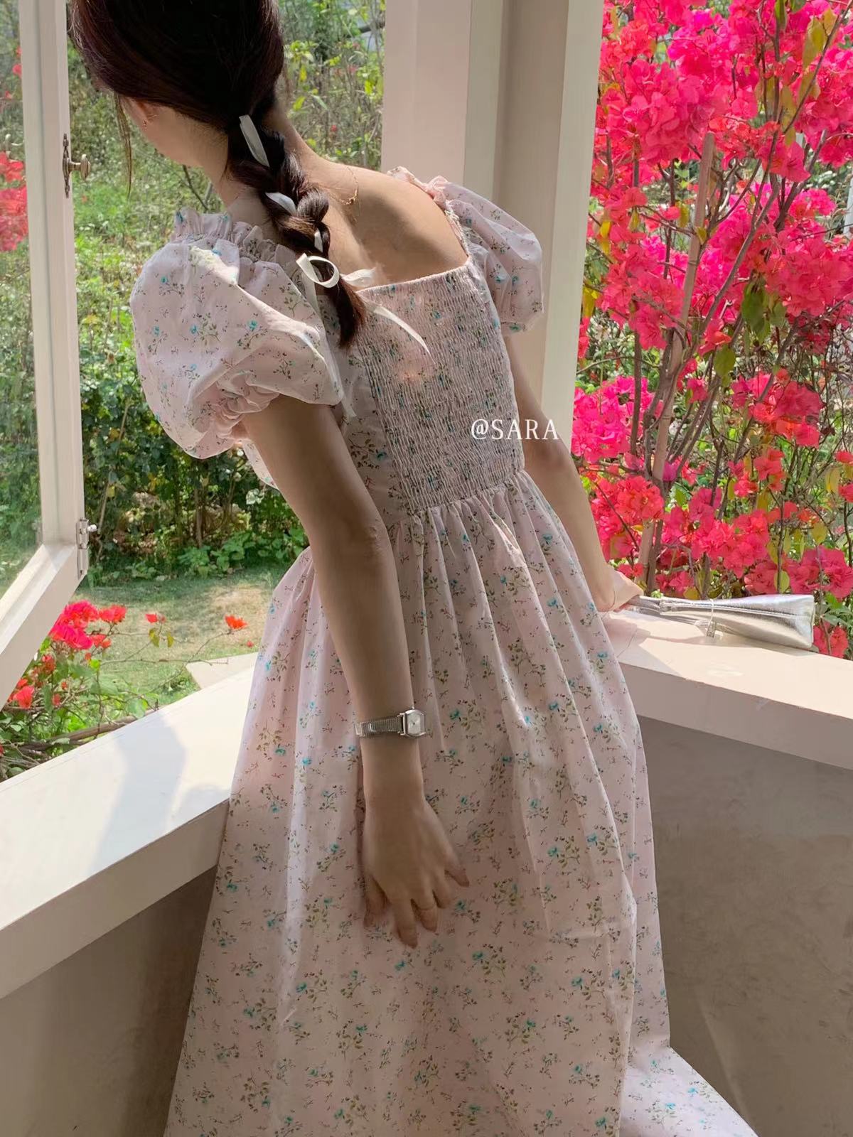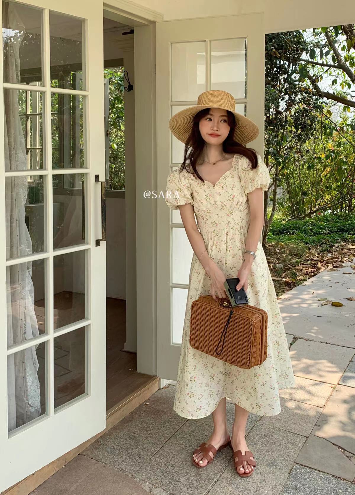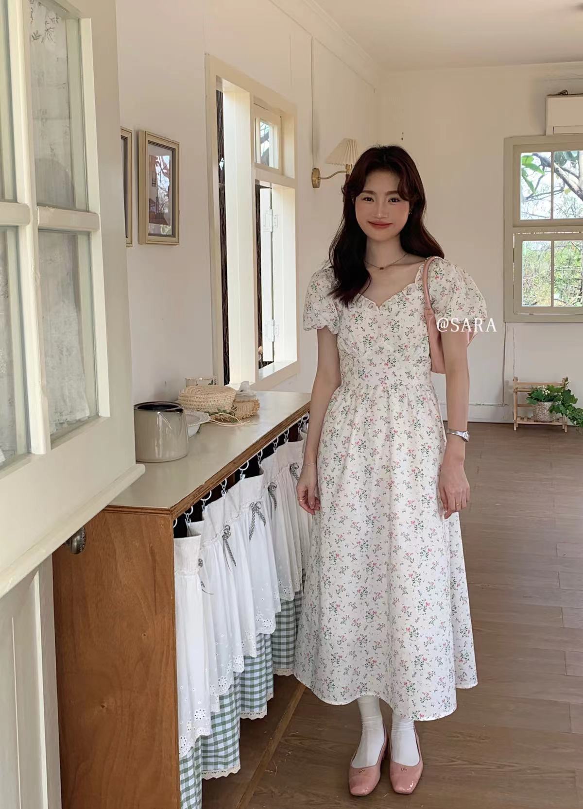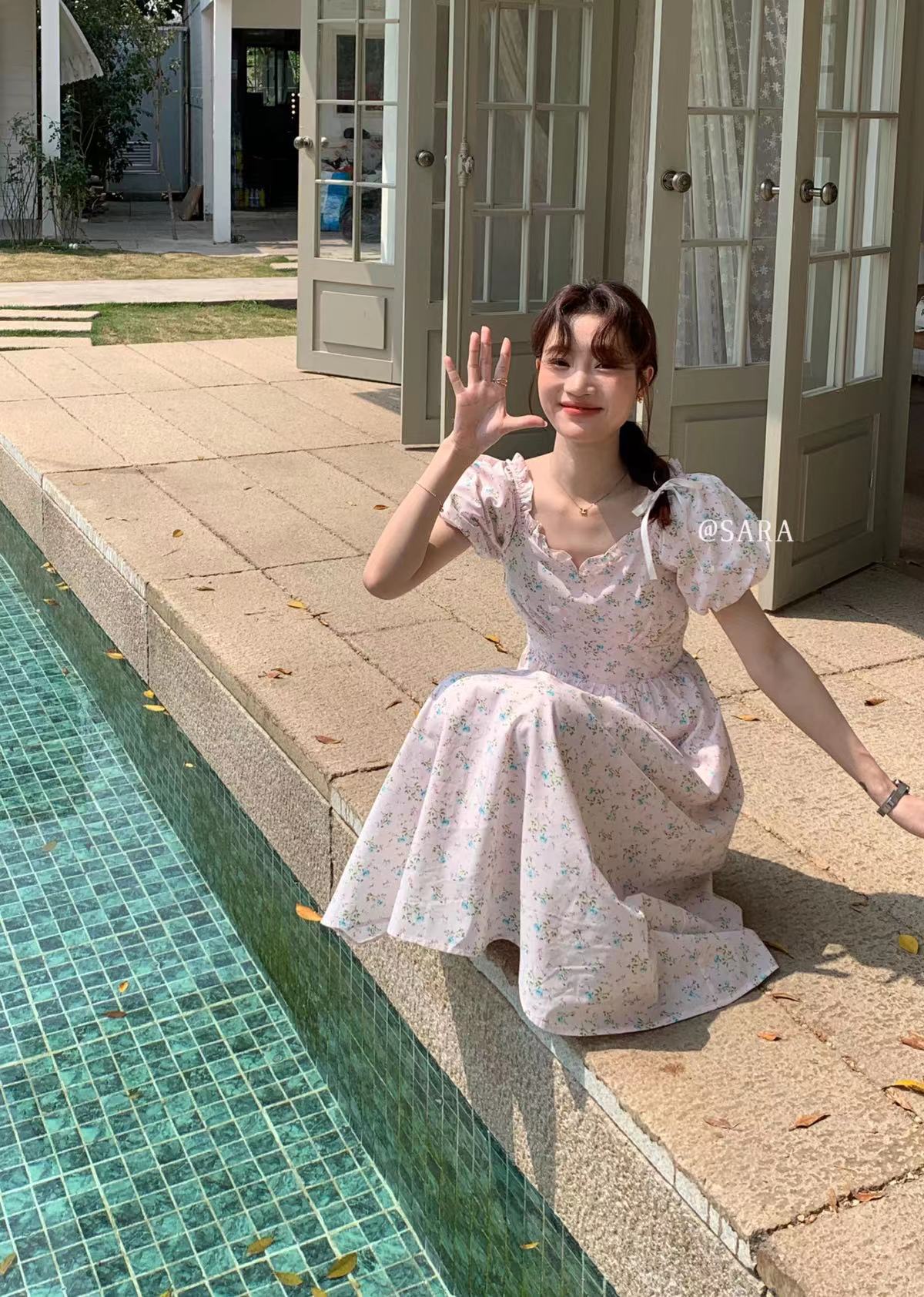 Kaiyushang Lsaraj Verano Tulipán Francés Dulce Cintura Vestido Floral