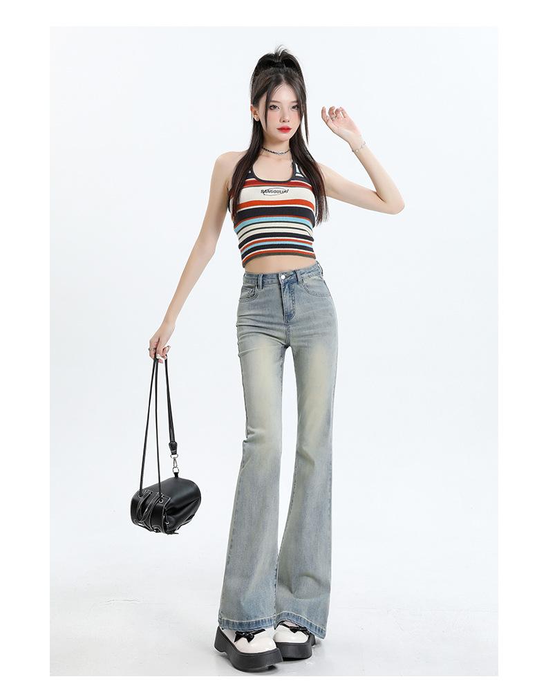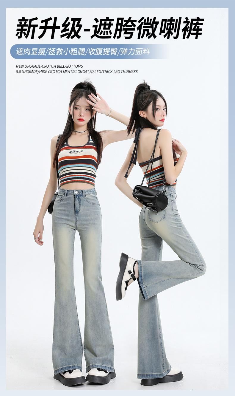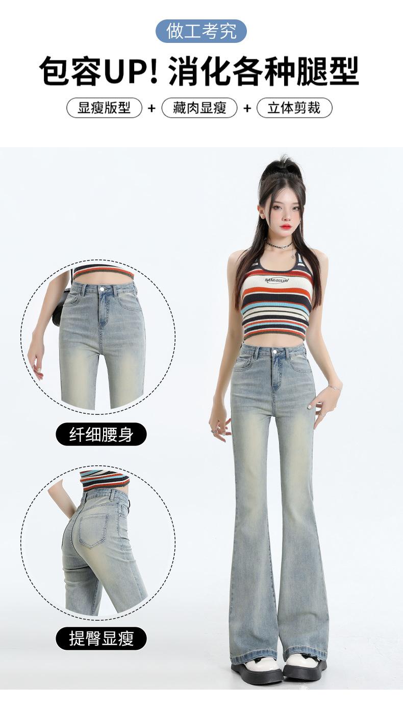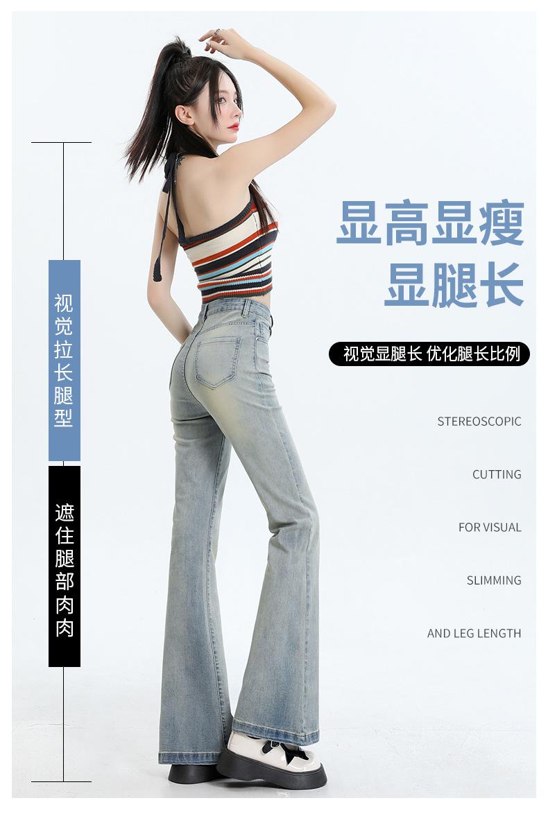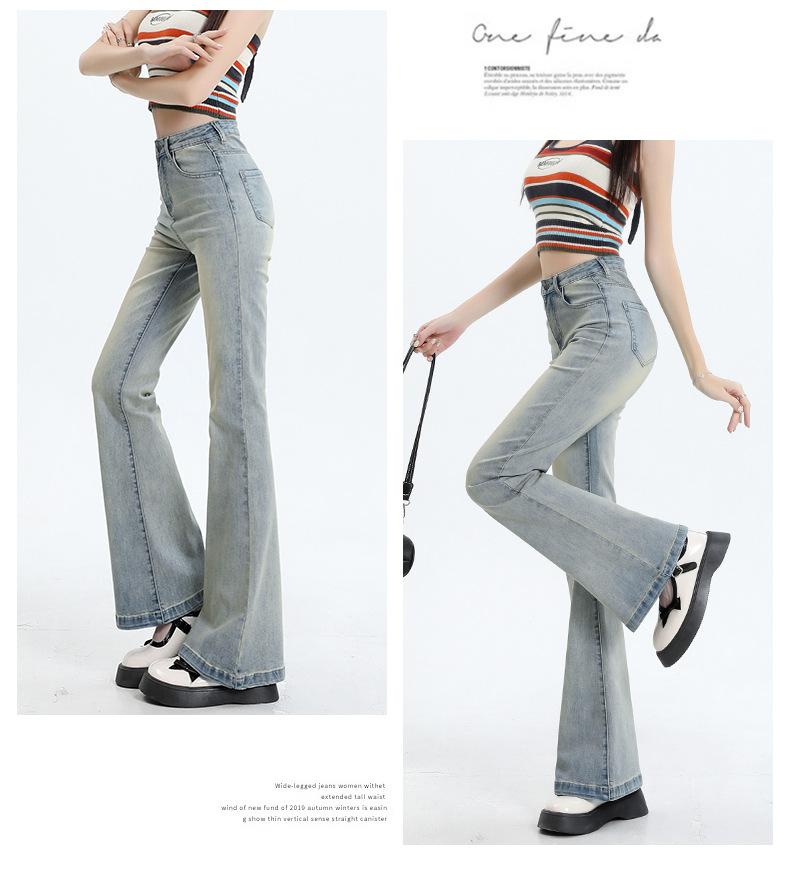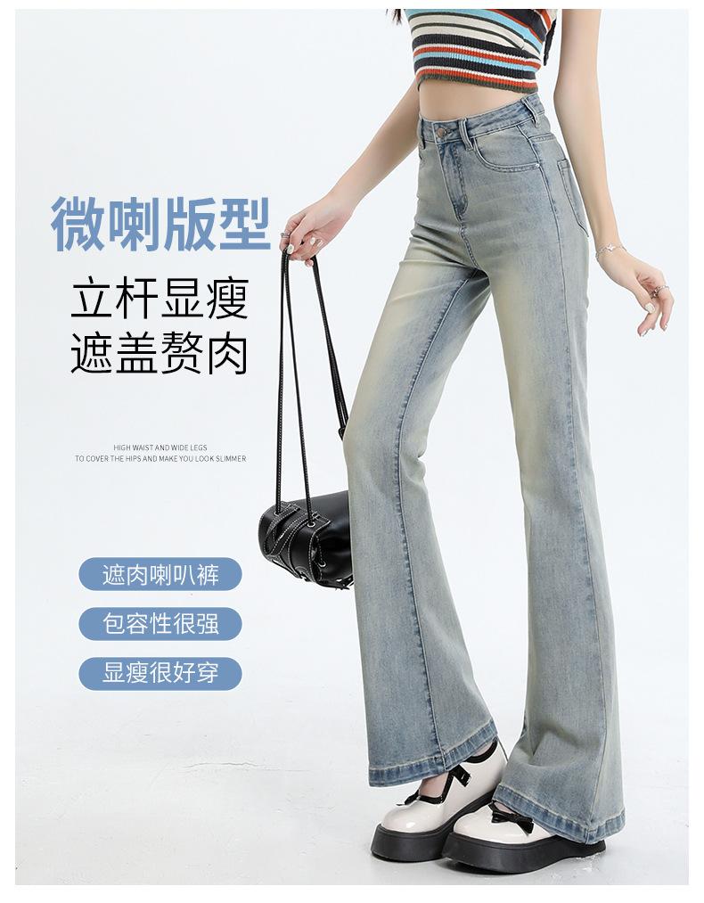 Jeans ajustados de cintura alta para mujer Primavera y Otoño 2024 principios de primavera nuevos pantalones de herradura pantalones acampanados pequeños y delgados principios de primavera