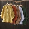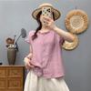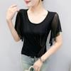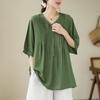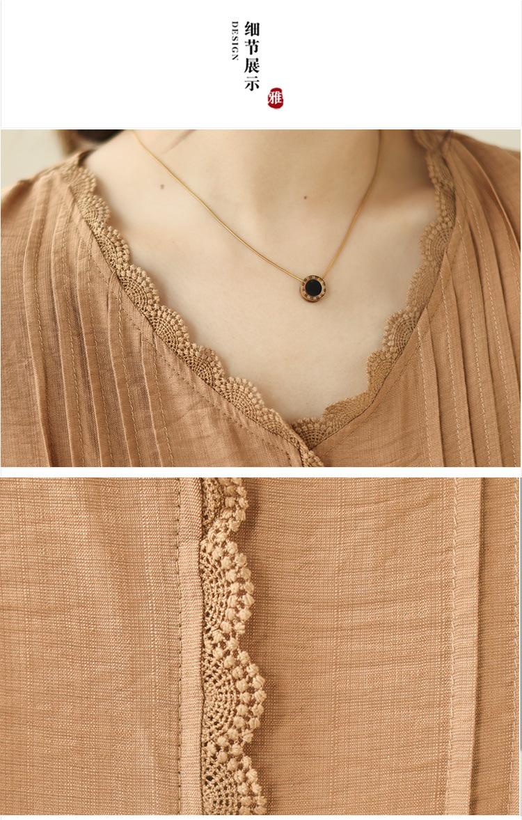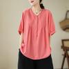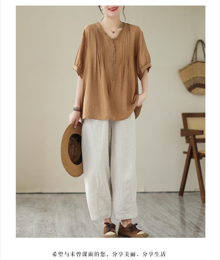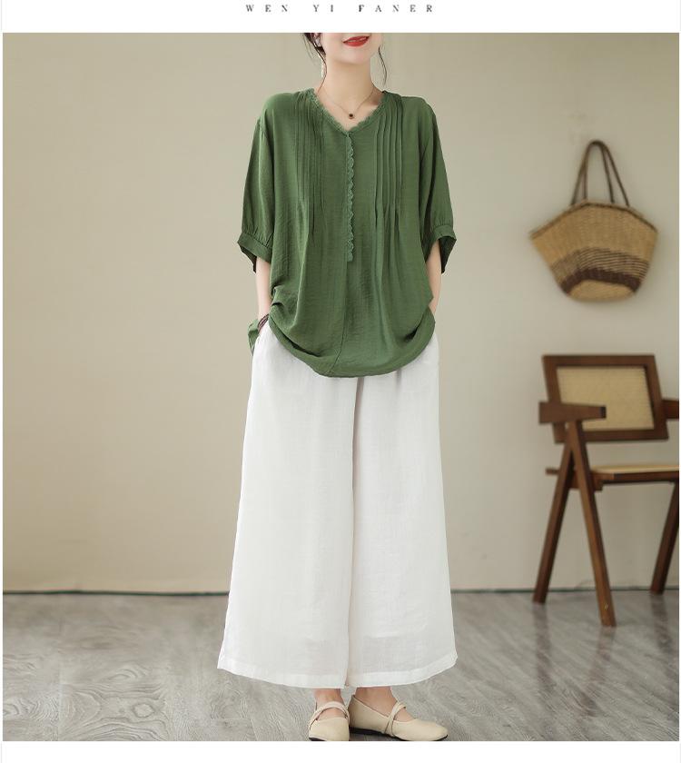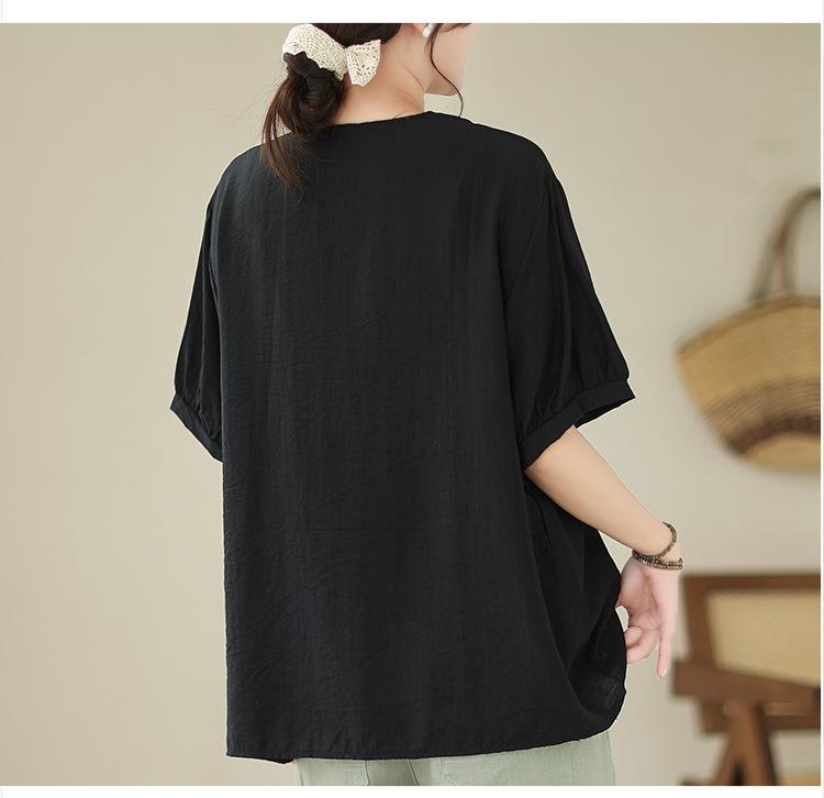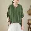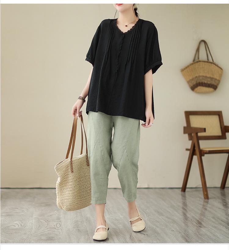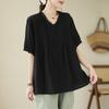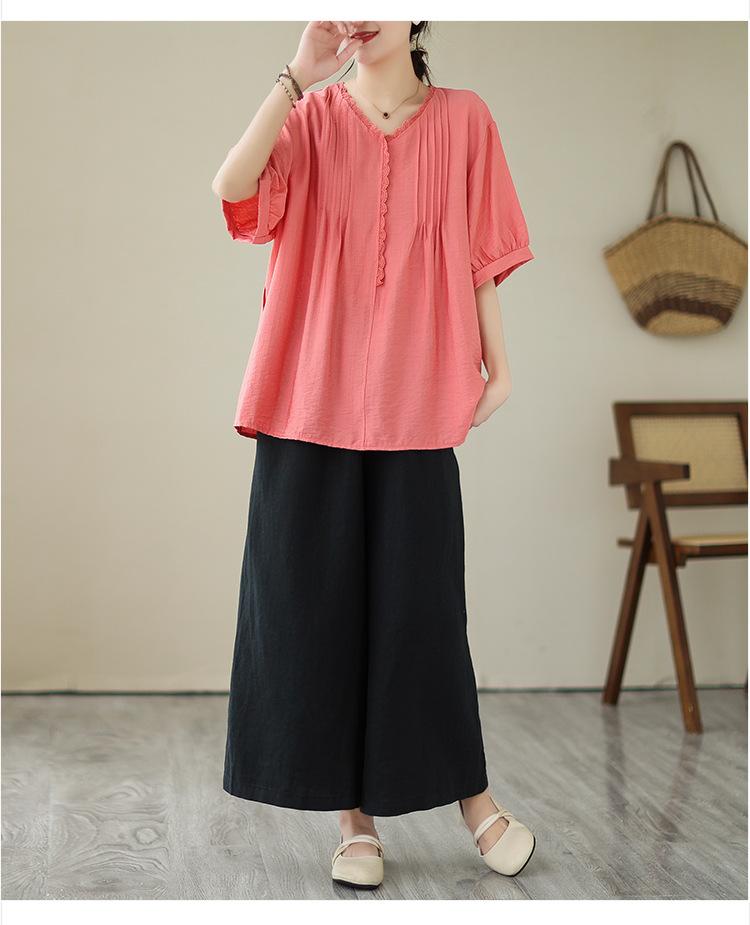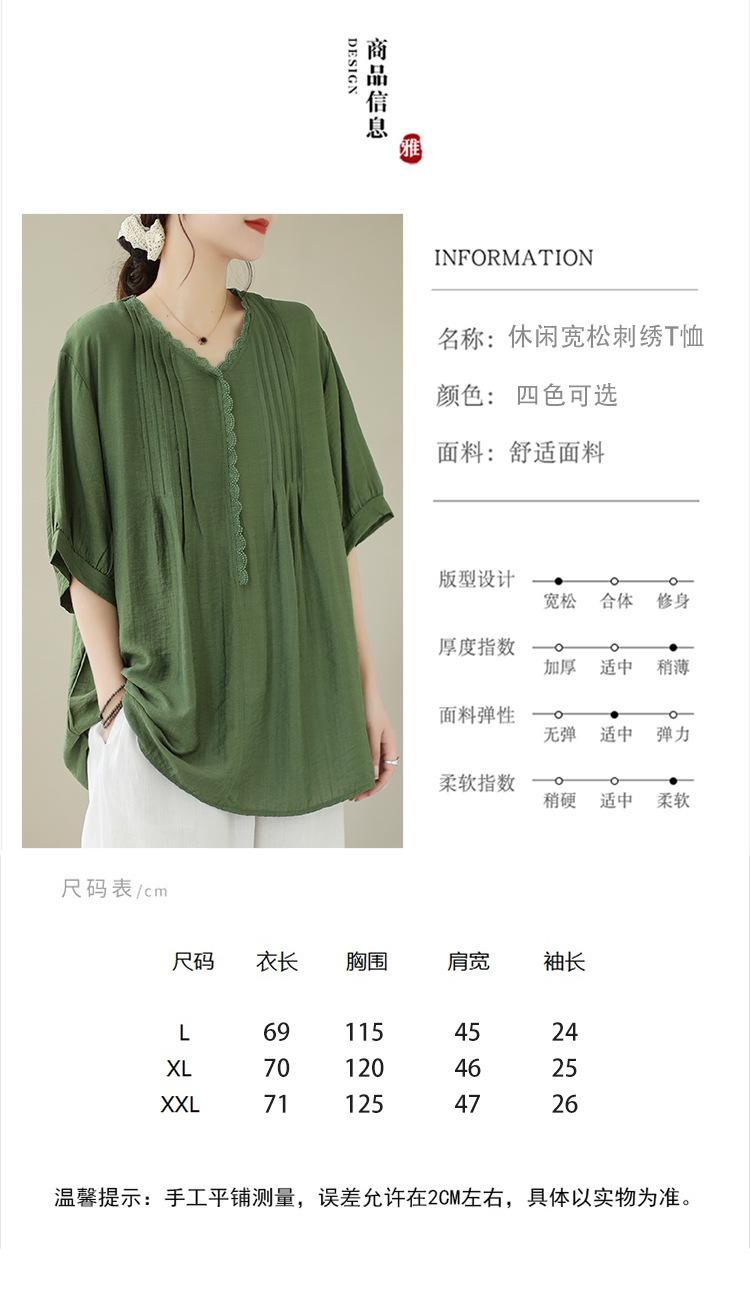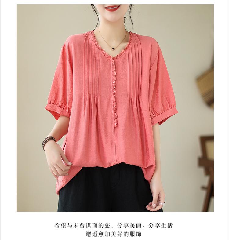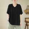 Camisa de encaje artístico con cuello en V para mujer, de verano, talla grande, holgada, informal, de color sólido, elegante, de manga corta, para chica gordita