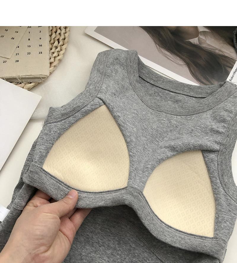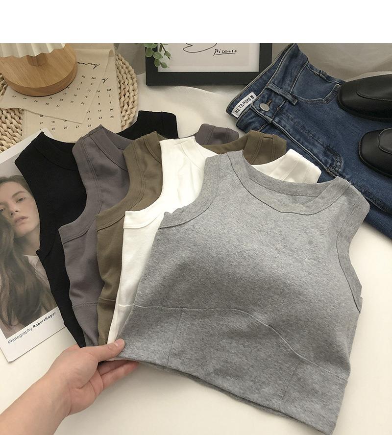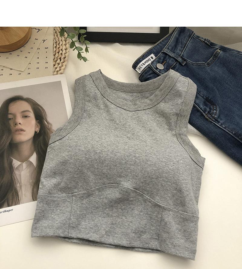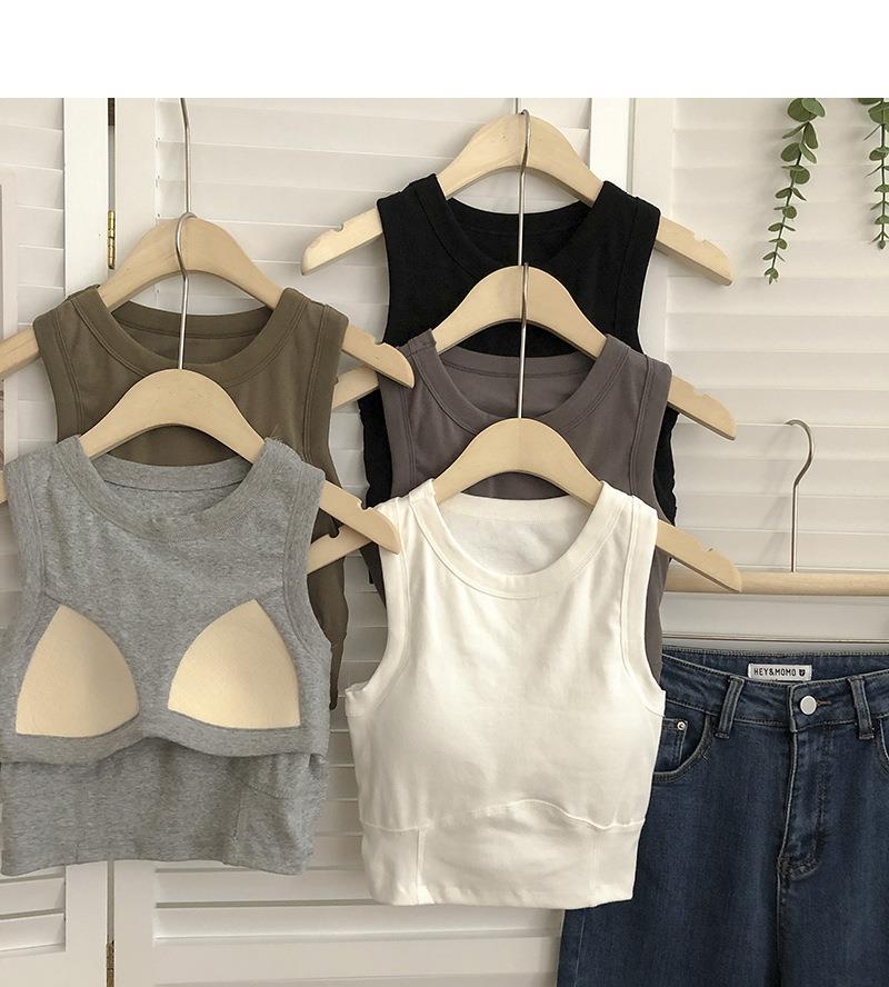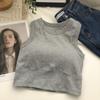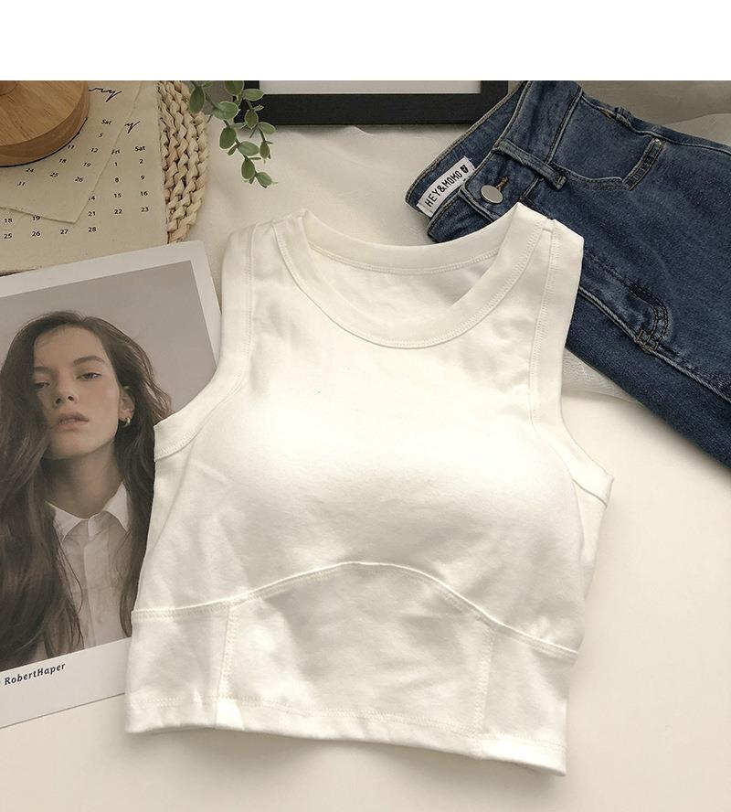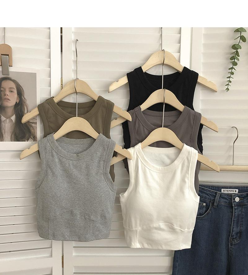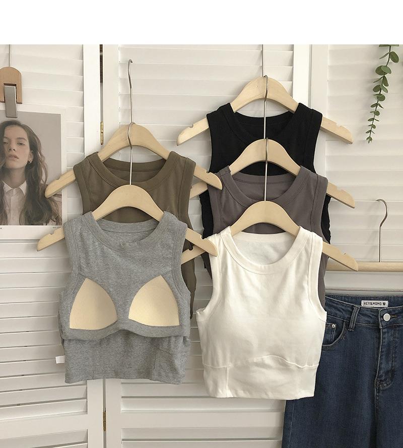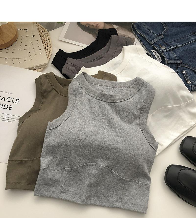 Camisola de verano estilo coreano para mujer, top ajustado de color liso sin aro de acero, almohadilla para el pecho integrada, ropa exterior combinable, ropa interior ajustada