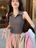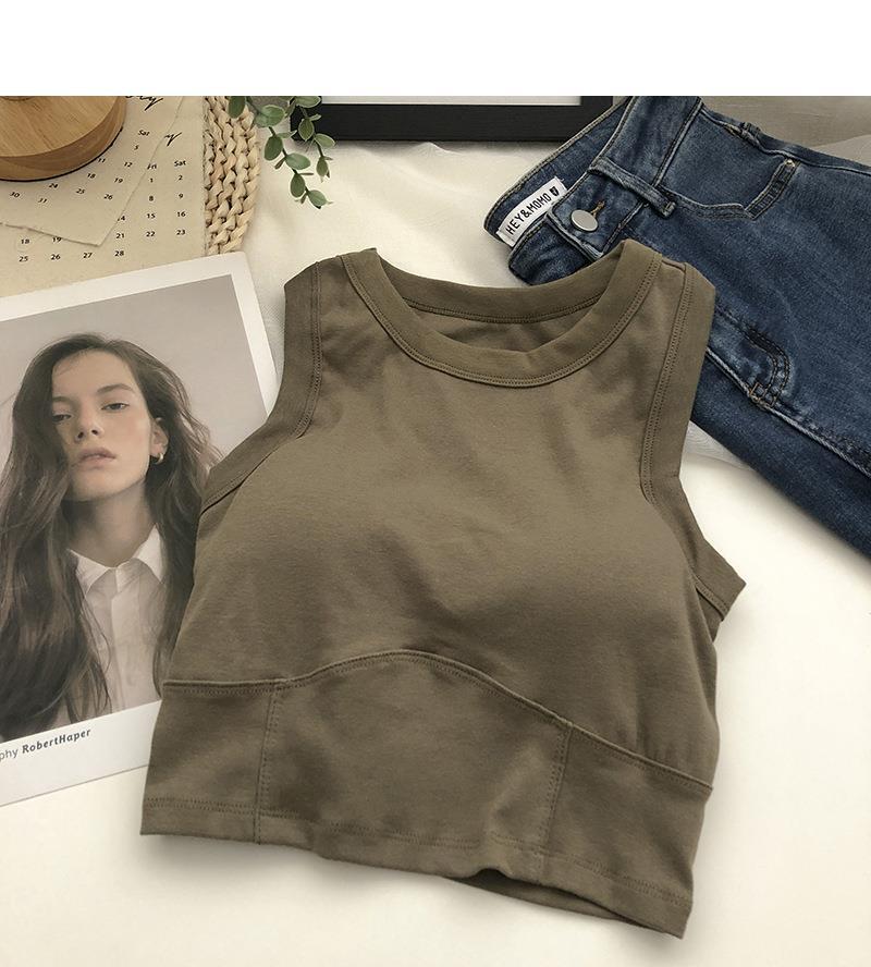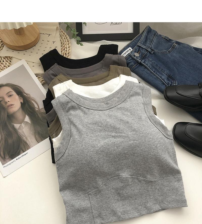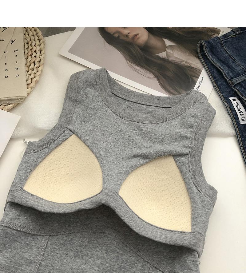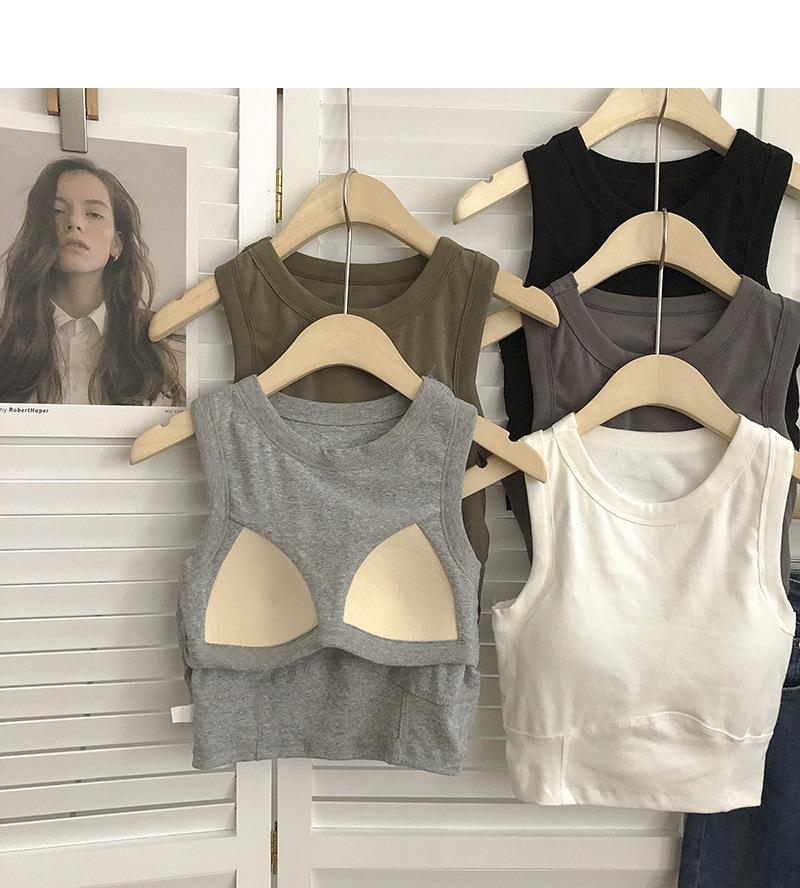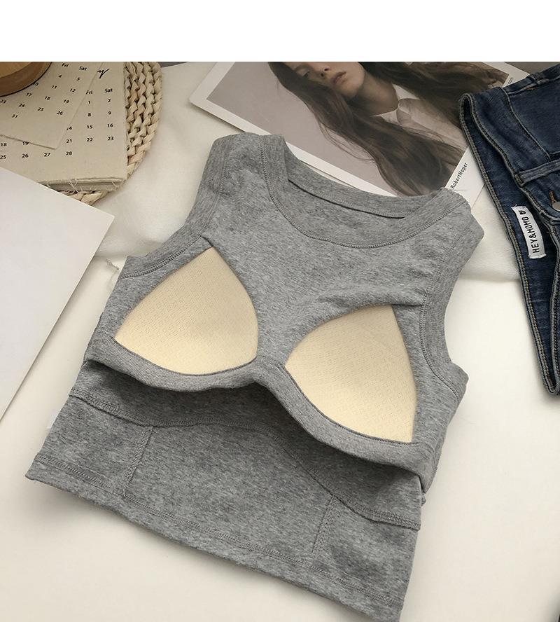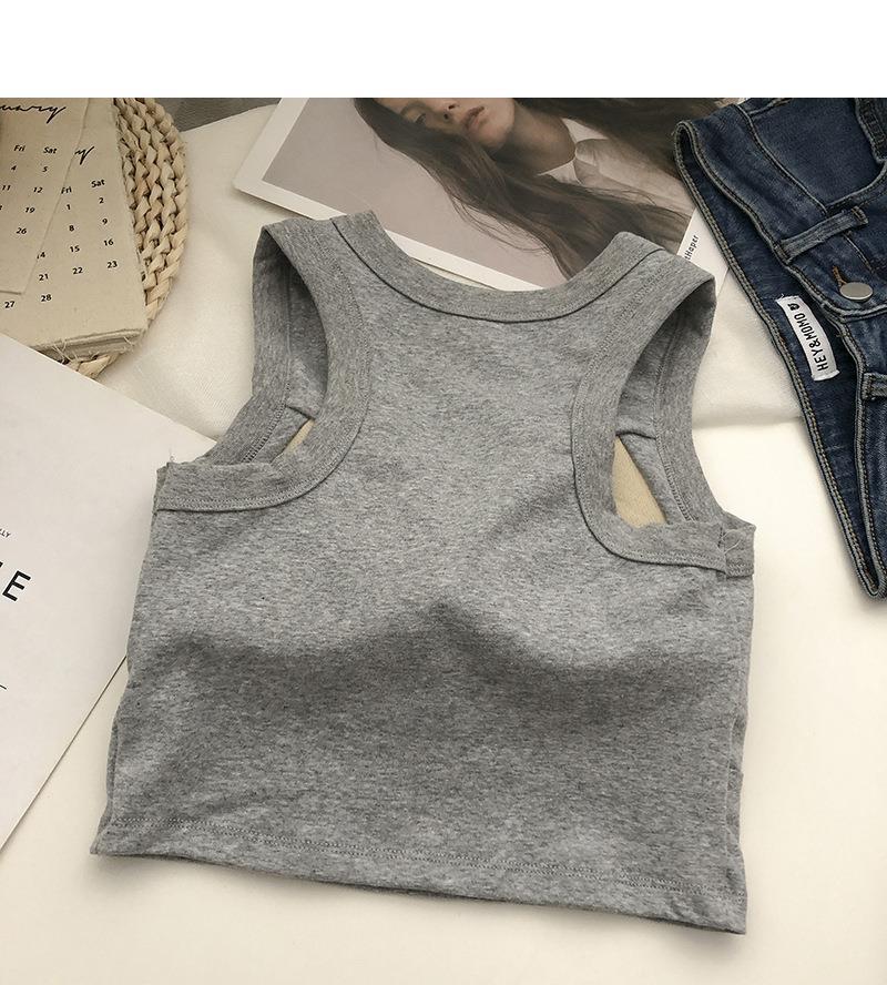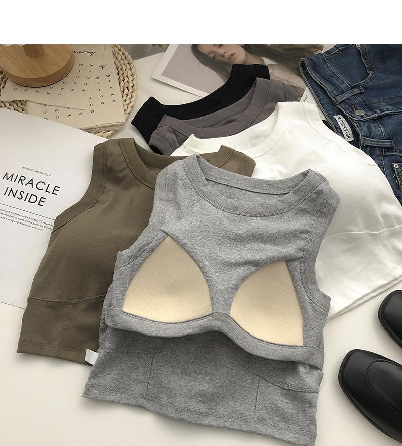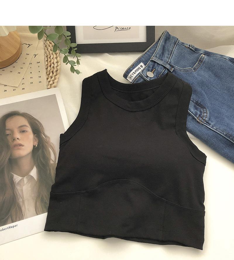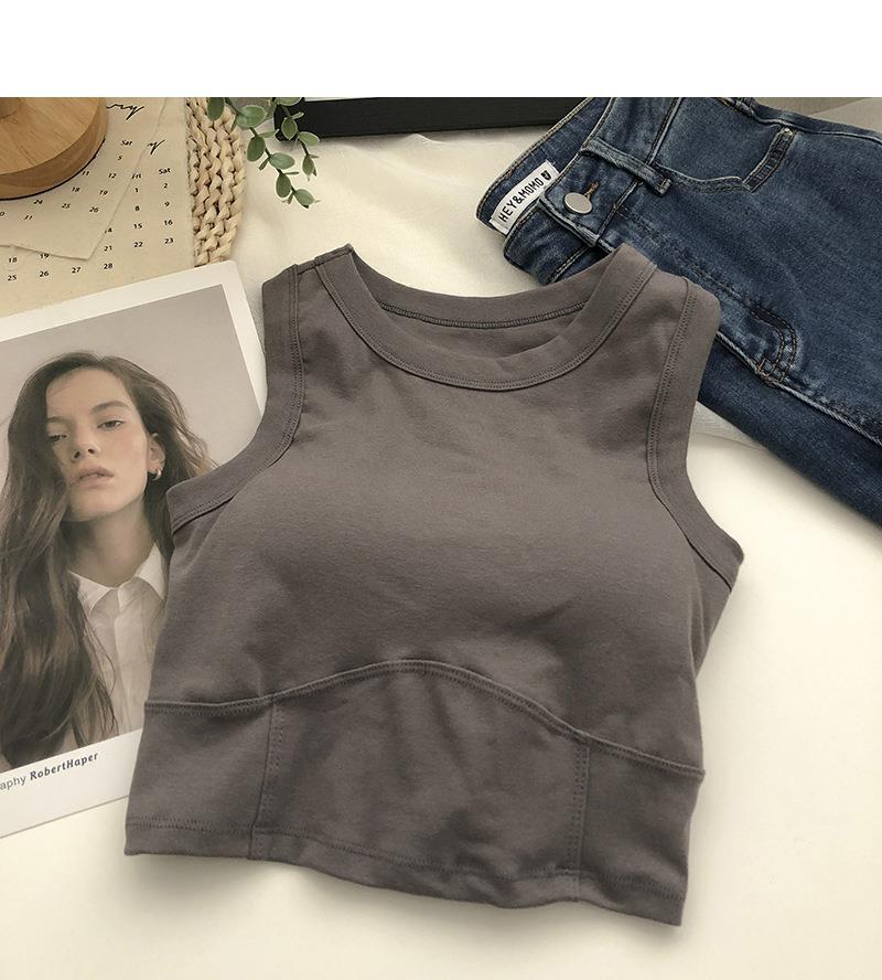 Camisola de verano estilo coreano para mujer, top ajustado de color liso sin aro de acero, almohadilla para el pecho integrada, ropa exterior combinable, ropa interior ajustada