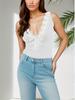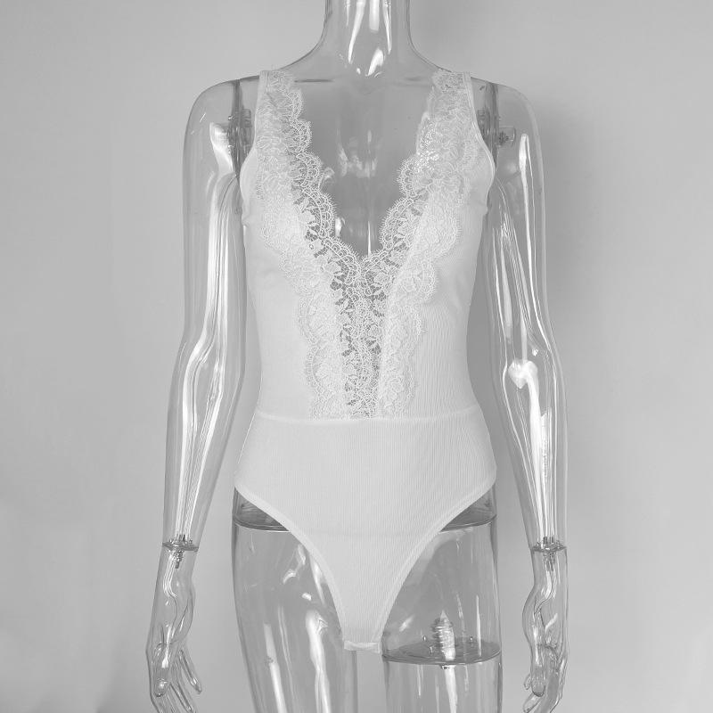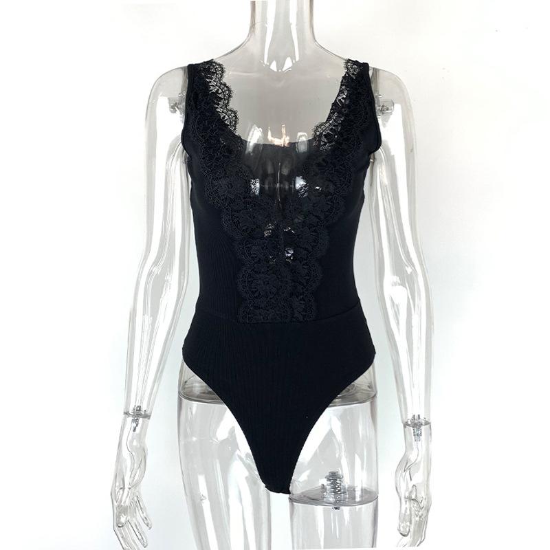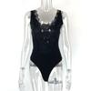 Amazon 2025 Verano Europeo y Americano Transfronterizo Nueva Ropa de Mujer Sexy Ajustado Cuello en V Encaje Acanalado Mono de Tirantes