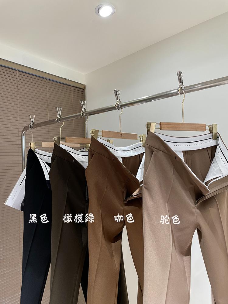 Pantalones Casuales para Mujer 2024 Primavera y Verano Tiro Medio Pierna Recta Largo hasta el Piso Pantalones de Traje de Moda para Ir al Trabajo Color Sólido Sueltos de Pierna Ancha