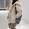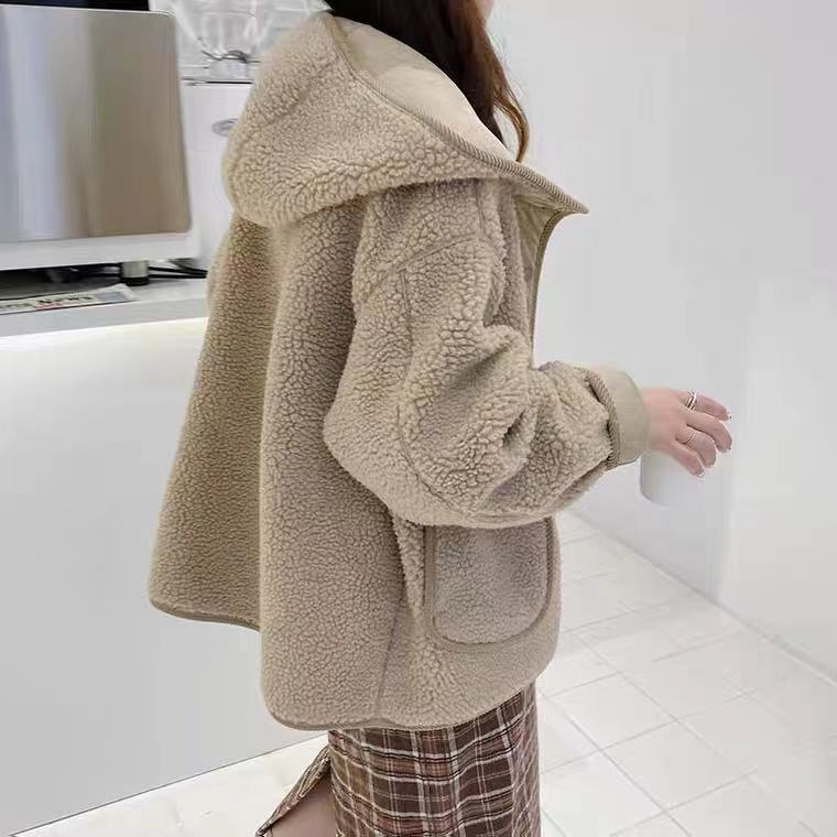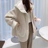 Abrigo de lana de cordero para mujer, con capucha de invierno, suelto, adelgazante, con piel integrada, gamuza antiedad, abrigo grueso de doble cara
