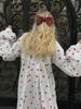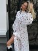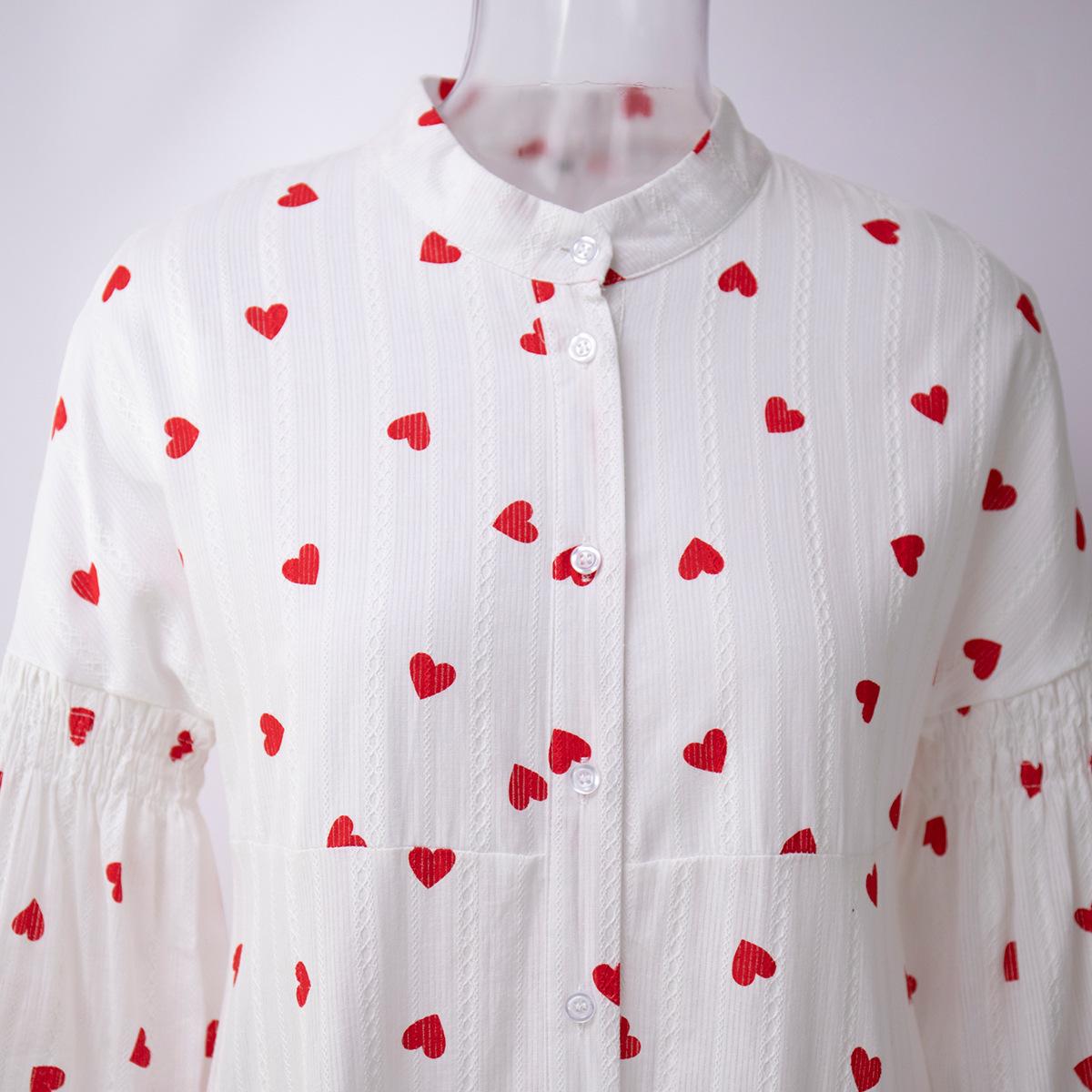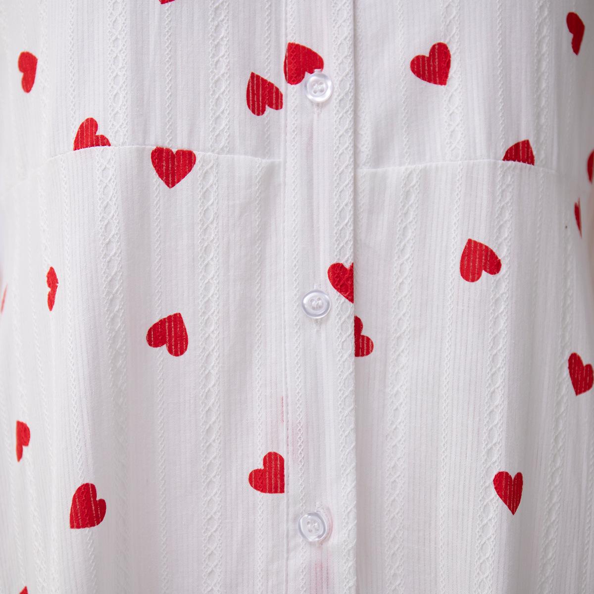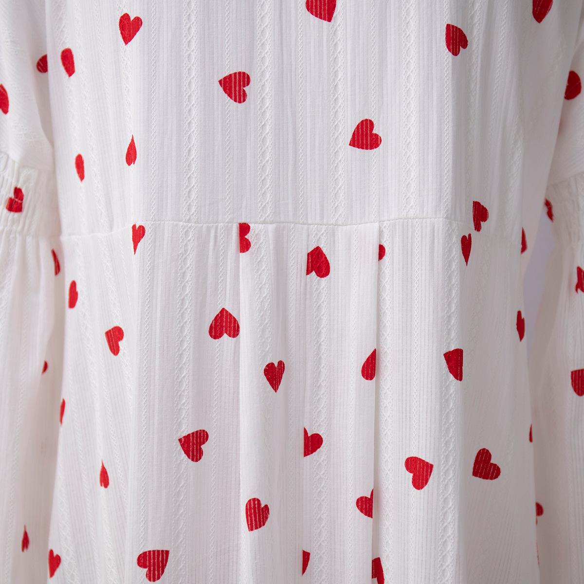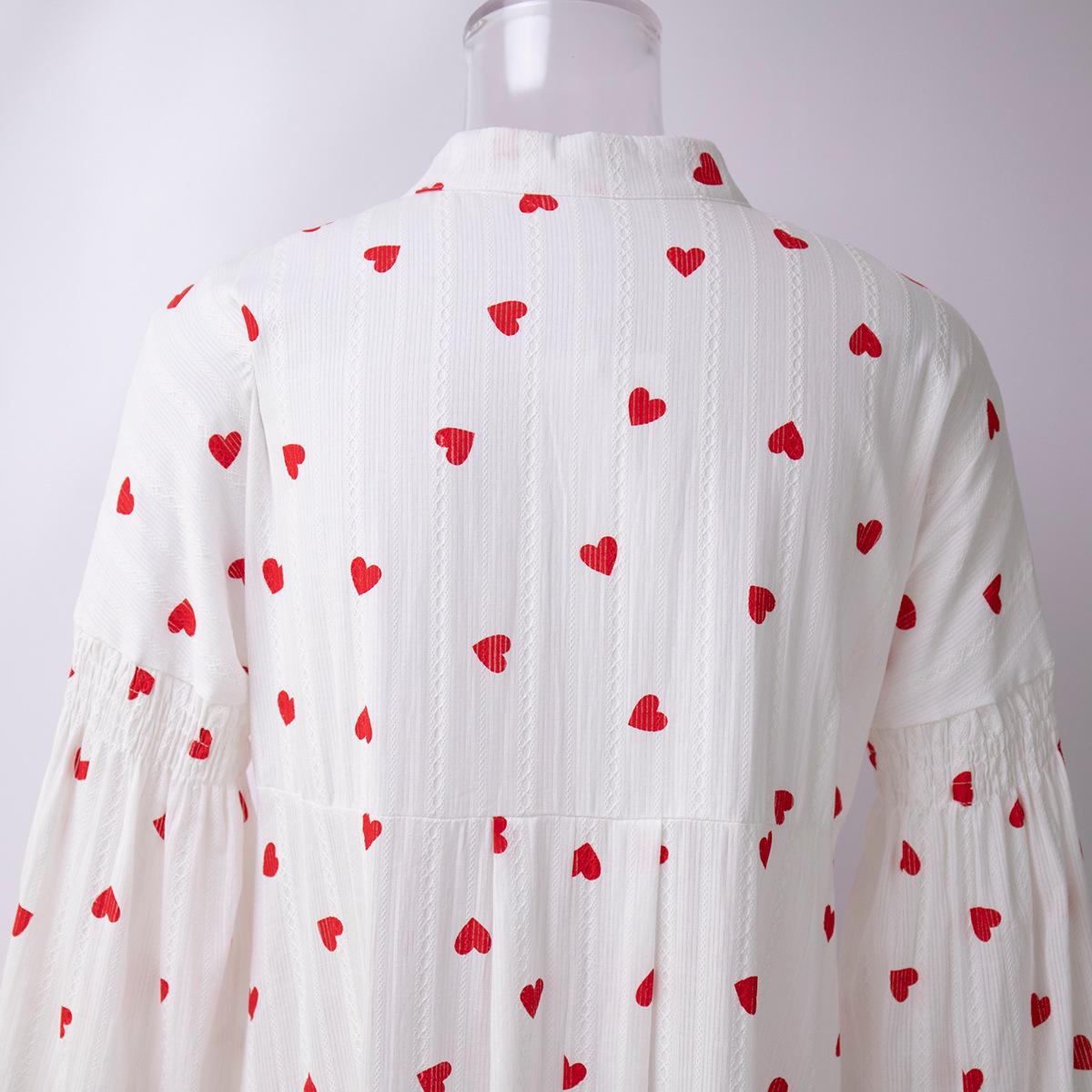 Vestido Estampado de Corazones Transfronterizo para Mujer Europeo y Americano Primavera y Verano 2025 Empalmado Manga Larga Linterna Algodón Puro Vestido de Dobladillo Completo