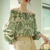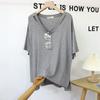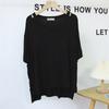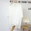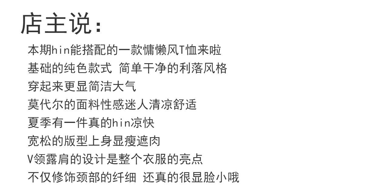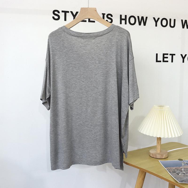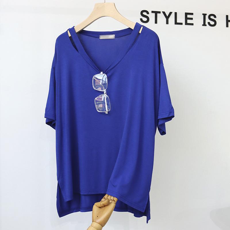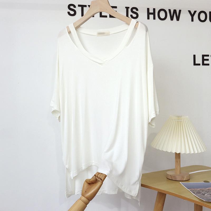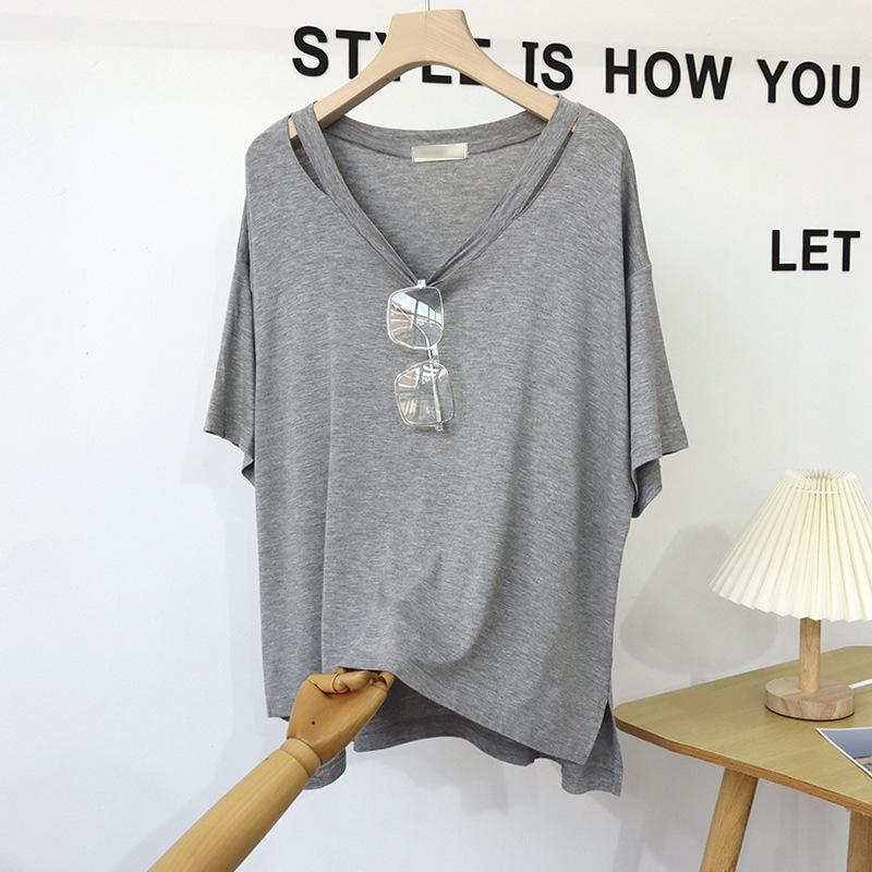 Camiseta modal con escote en V y hombros descubiertos para mujer, de manga corta, de verano, de estilo occidental, de moda, holgada, adelgazante y cubierta de piel.