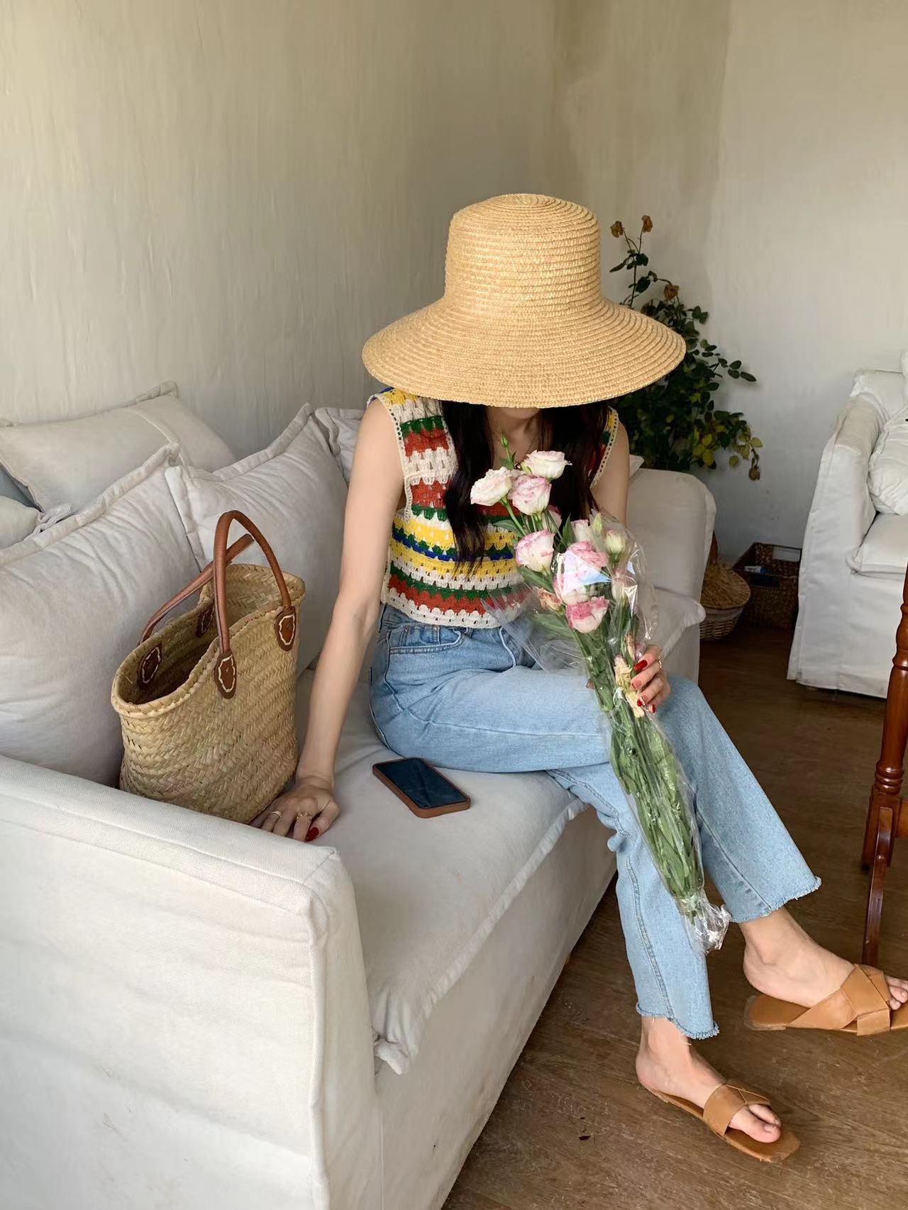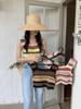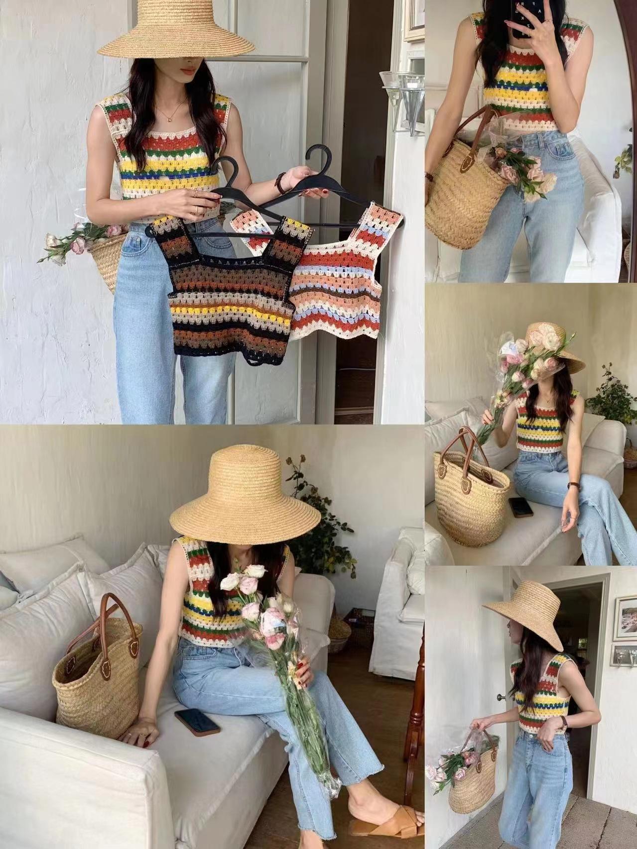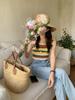 Chaleco vintage francés con cuello cuadrado y rayas en contraste, diseño exterior, corto, sin mangas, para personas pequeñas.