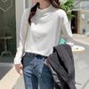Camisa de punto de manga larga ajustada, gruesa, de cuello alto, color negro, estilo coreano, nueva, para otoño e invierno, cálida