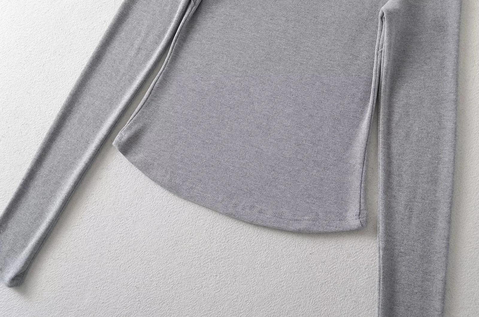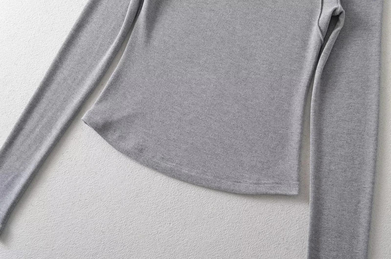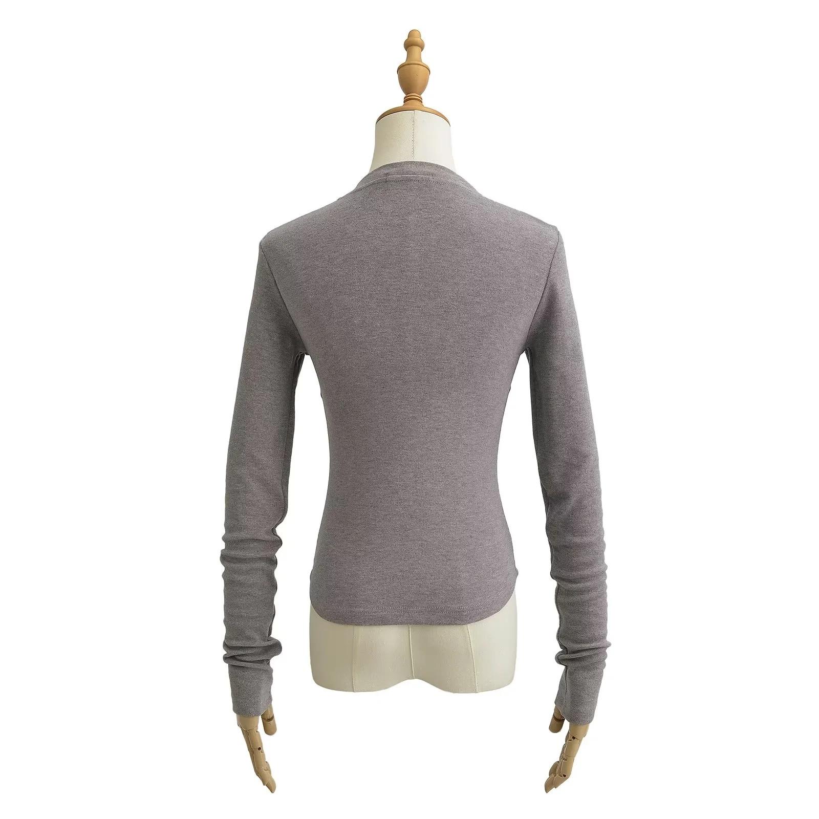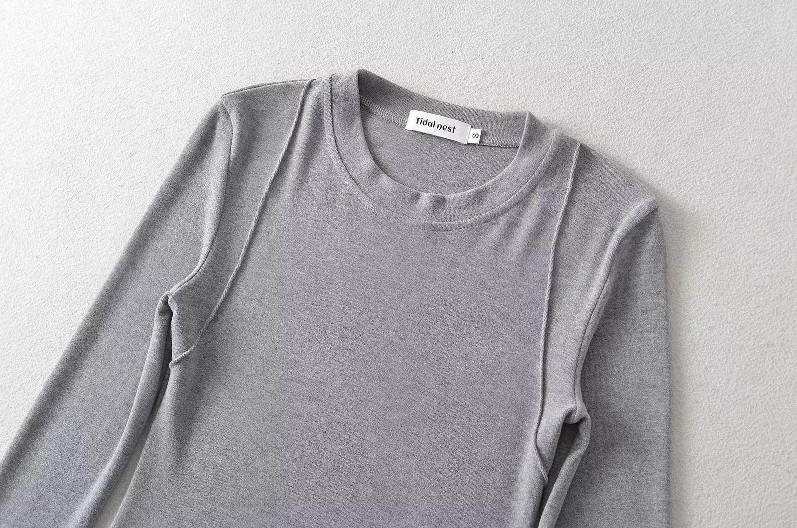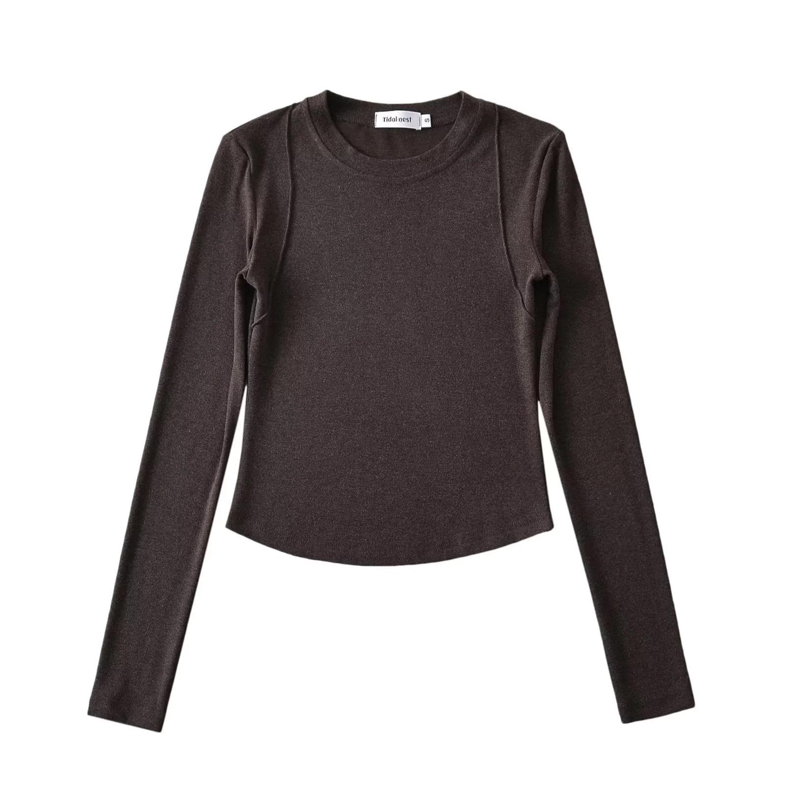 Compra Camiseta de manga larga para chica sexy europea y americana, top de cintura ajustada para mujer, otoño e invierno 2023, nueva camisa de cintura alta con costuras de cuello redondo y parte inferior corta al por mayor en Joom.pro