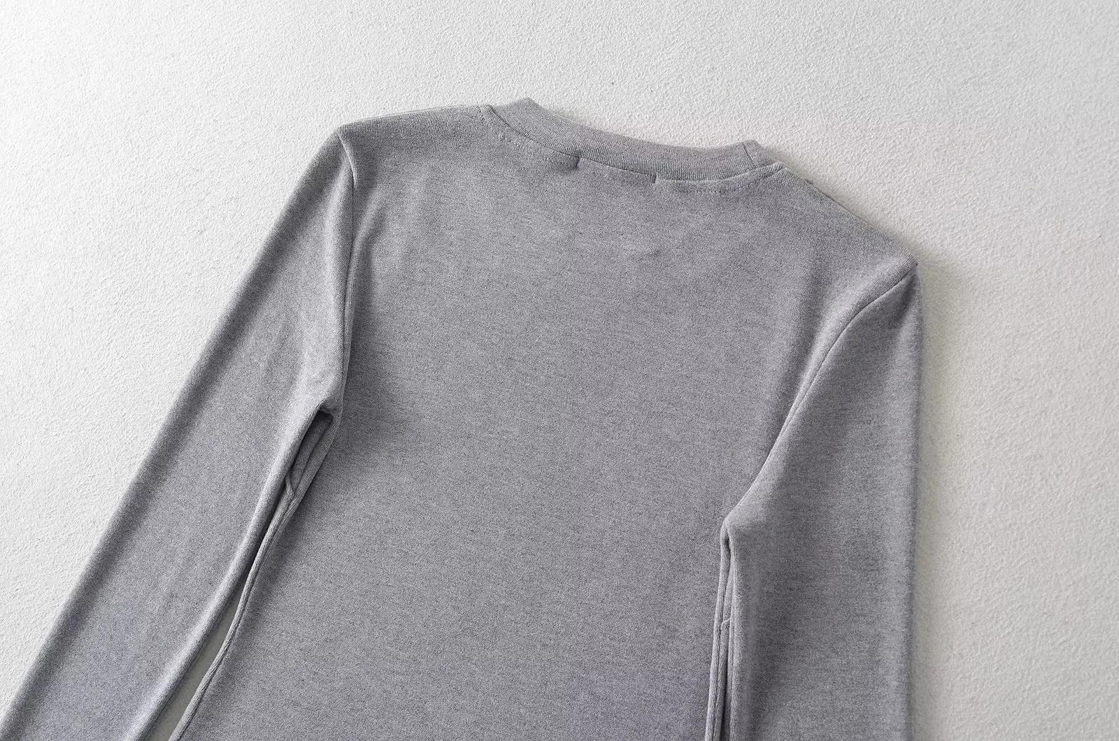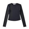 Camiseta de manga larga para chica sexy europea y americana, top de cintura ajustada para mujer, otoño e invierno 2023, nueva camisa de cintura alta con costuras de cuello redondo y parte inferior corta
