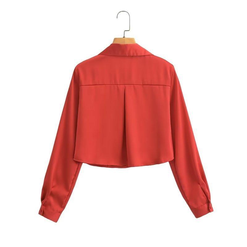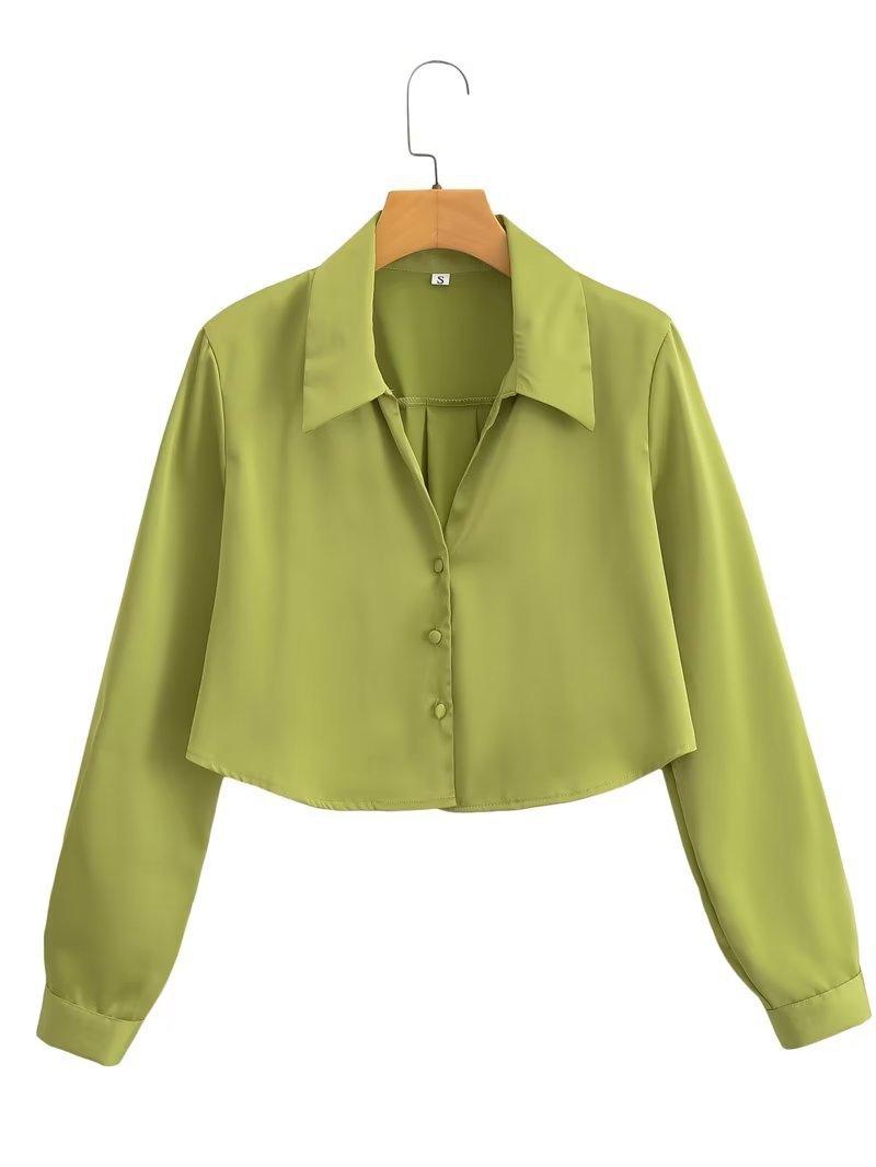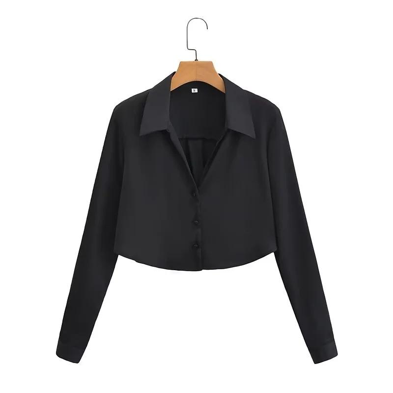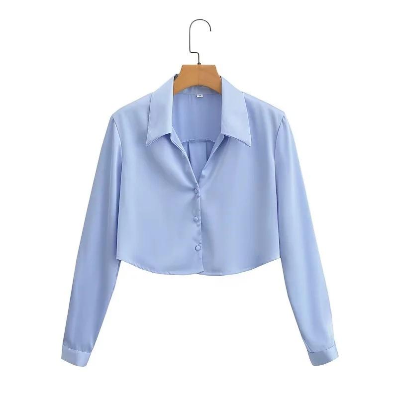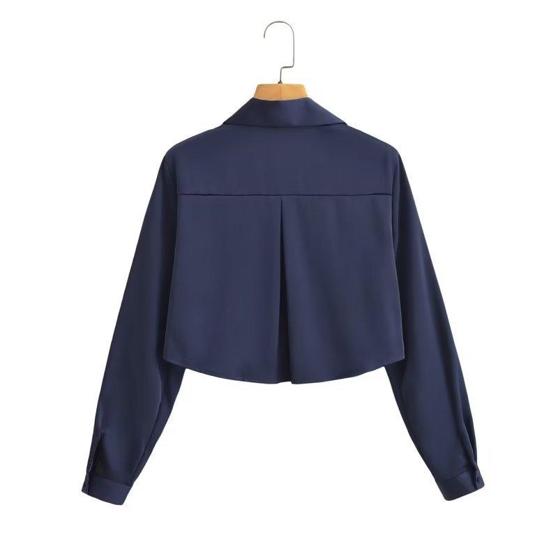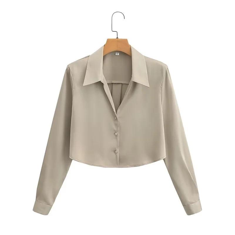 Camisa corta de seda satinada de manga larga para mujer, estilo europeo y americano, verano 2025, 1530