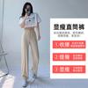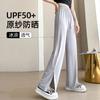 Pantalones de Pierna Ancha de Seda de Hielo de Talla Grande para Mujer en Primavera y Verano Delgados de Cintura Alta Sueltos Rectos Grises Largos Hasta el Piso Casuales Pantalones Nueve Puntos
