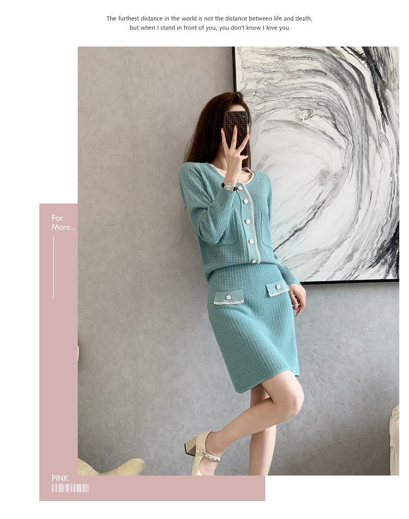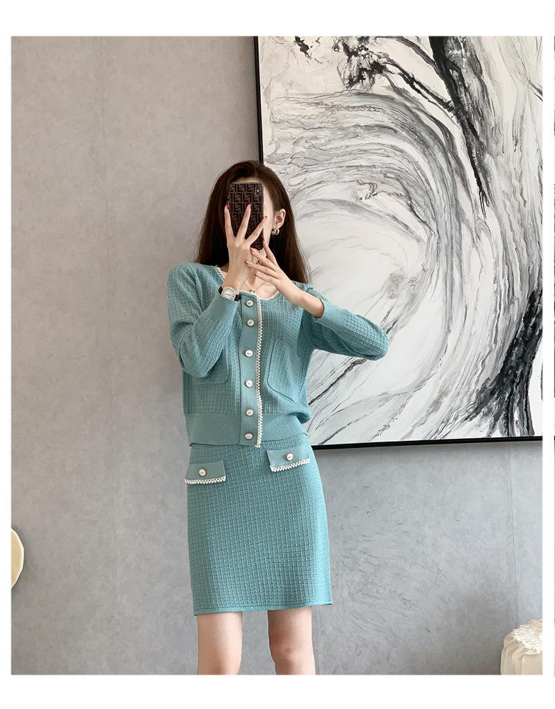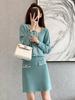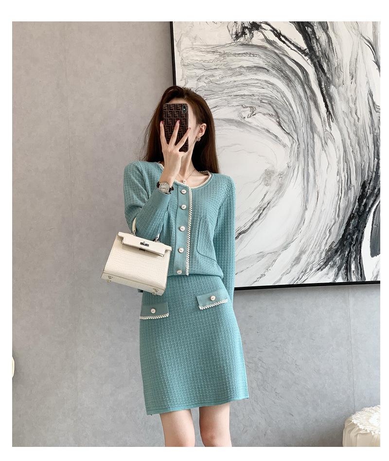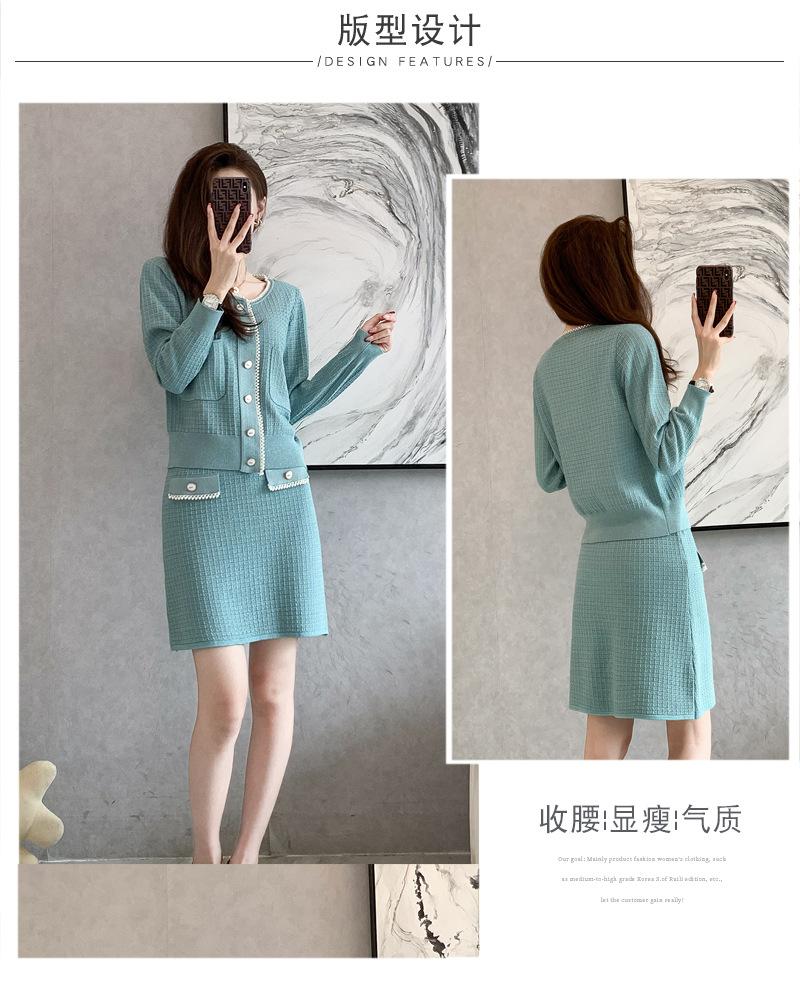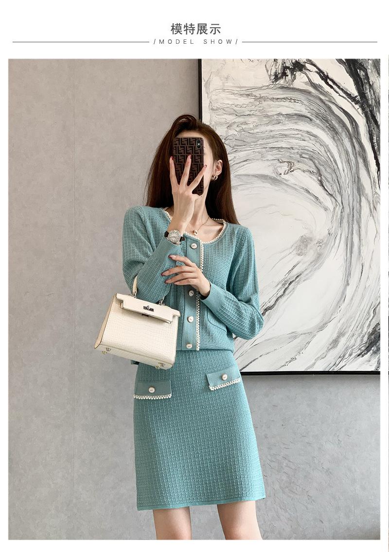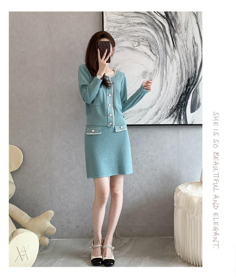 Ropa de Otoño 2024 Nuevo Estilo Estilo Francés para Mujer Vestido de Traje de Punto de Dos Piezas Azul de Manga Larga con Cintura Corte A