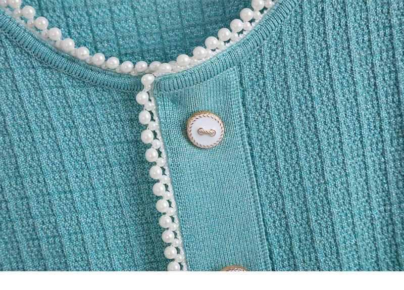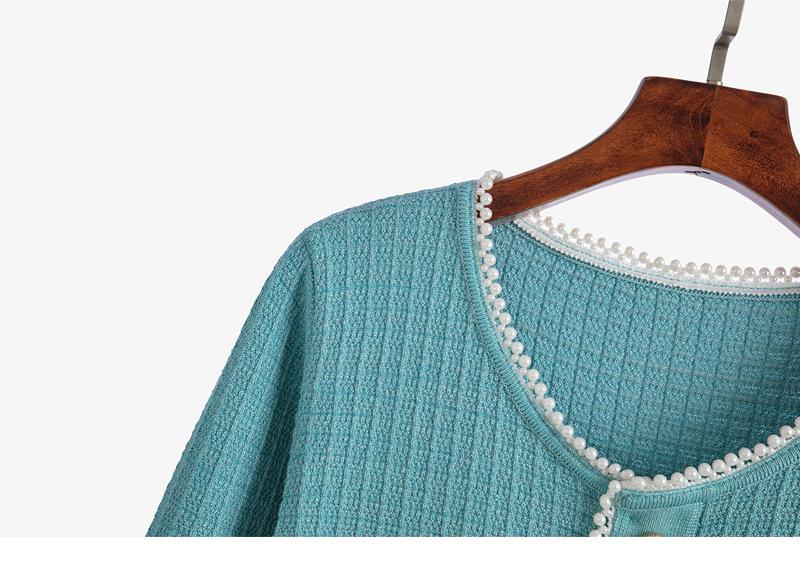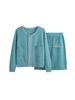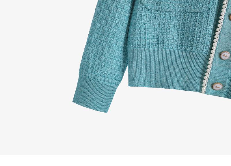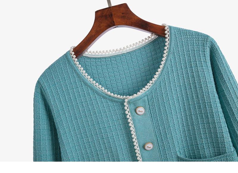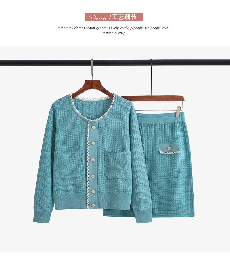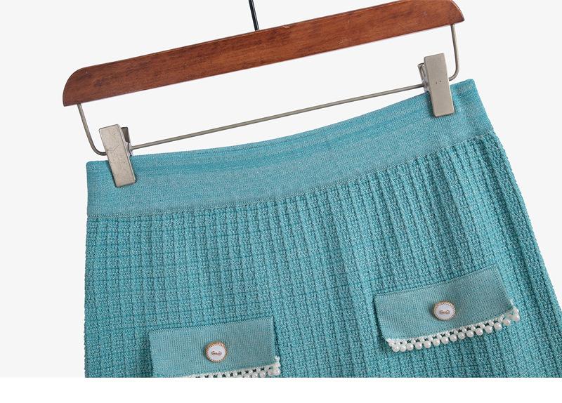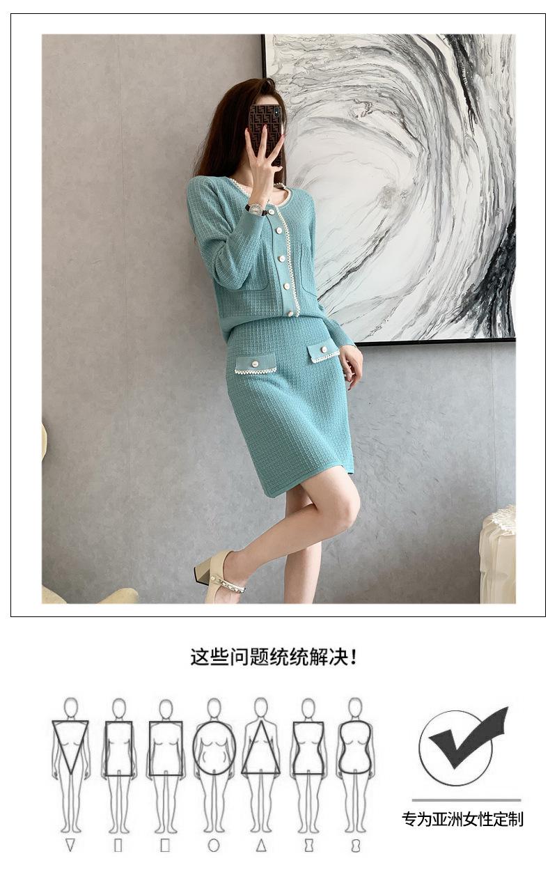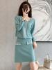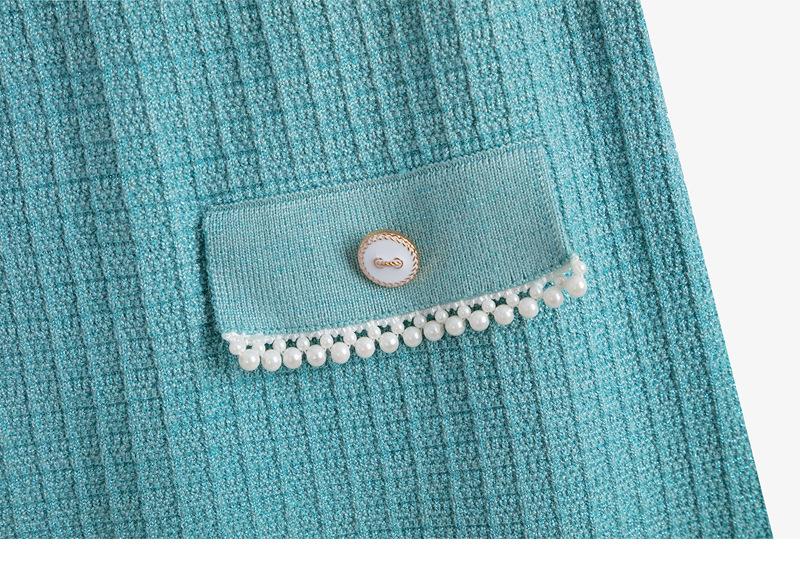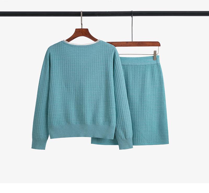 Ropa de Otoño 2024 Nuevo Estilo Estilo Francés para Mujer Vestido de Traje de Punto de Dos Piezas Azul de Manga Larga con Cintura Corte A