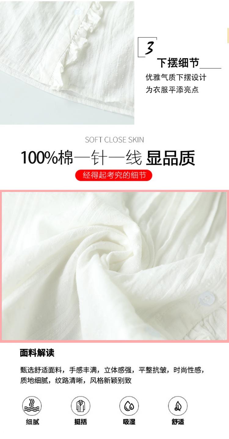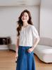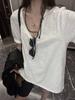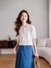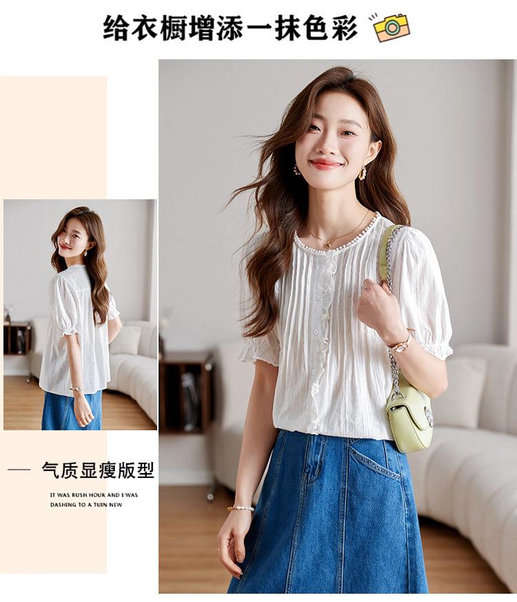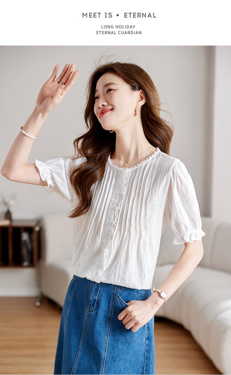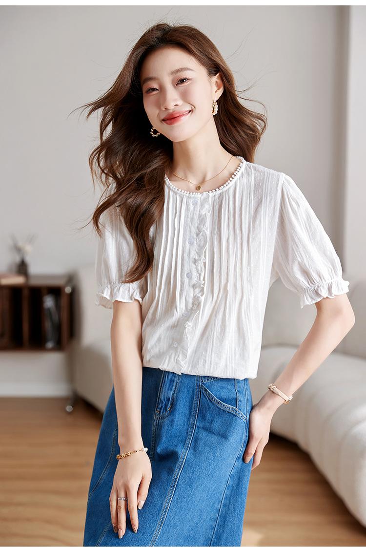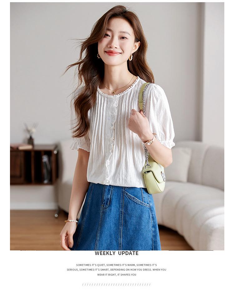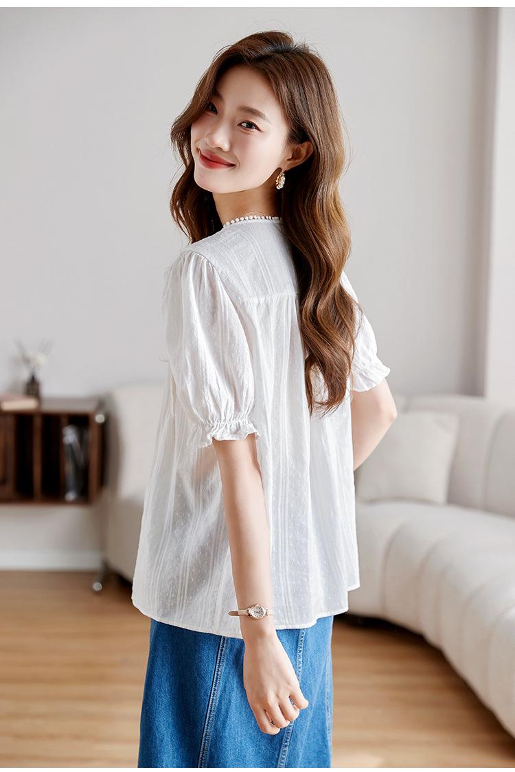 Camisa Blanca de Verano para Mujer de Manga Corta Cuello Redondo Cárdigan Holgado