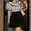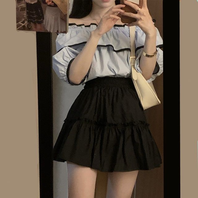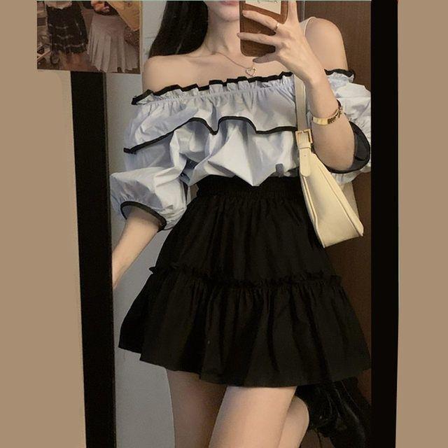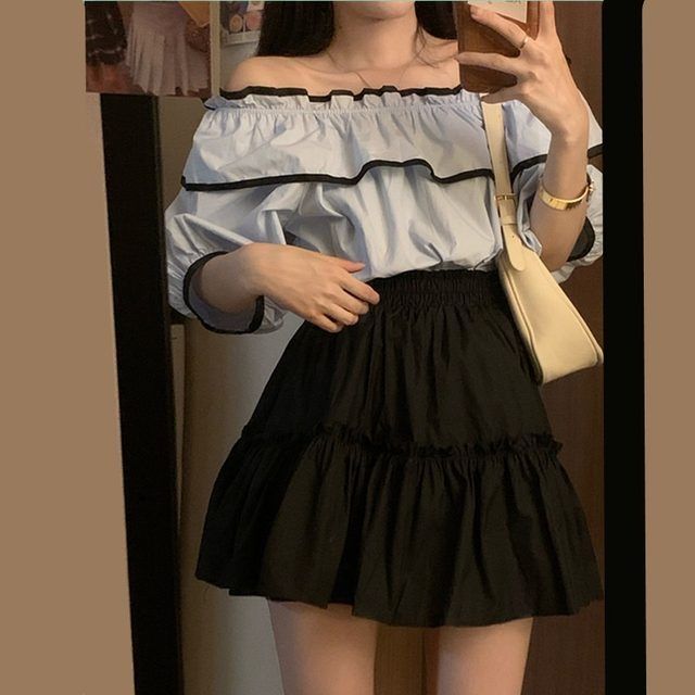 Top Dulce Francés de un Hombro, Conjunto de Dos Piezas para Primavera y Otoño, Falda Femenina, Traje de Moda, Falda Urbana Estilo Salado
