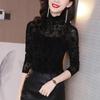 Camiseta básica de manga larga con capa interior negra para un look adelgazante para mujer 2023 Otoño e Invierno Nuevo Sexy Slim Plisado Cuello Redondo Top