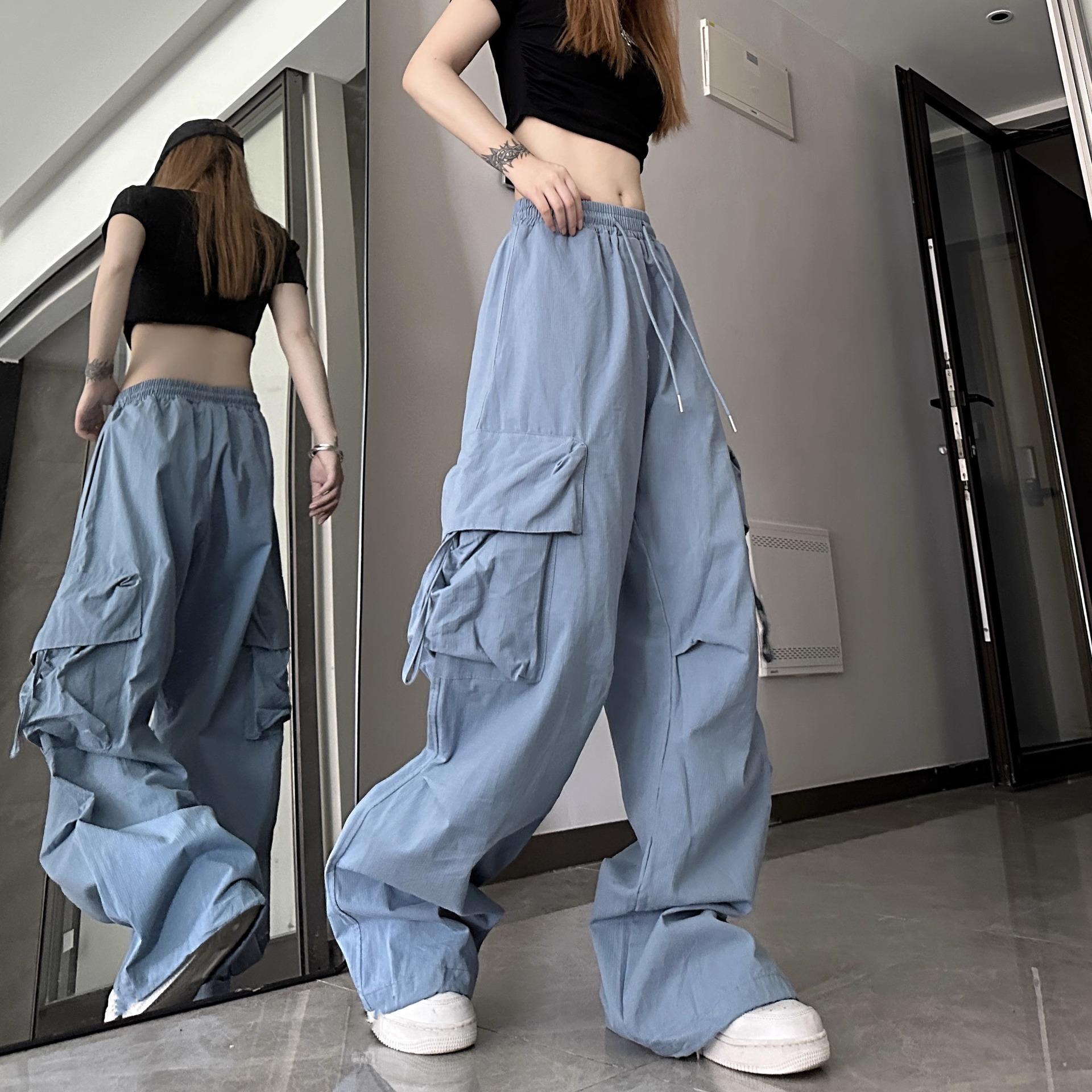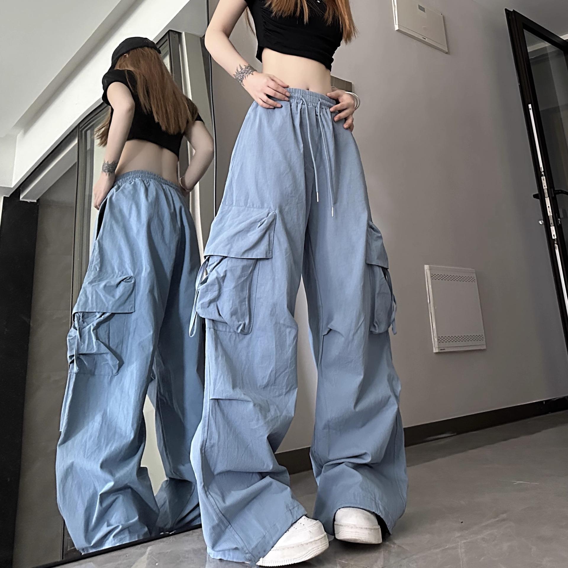 Pantalones Cargo de Mujer Estilo Americano 2025 Verano Pantalones Rectos de Cintura Alta y Pierna Ancha con un Diseño Casual Holgado, Pantalones Largos Adelgazantes hasta el Piso