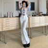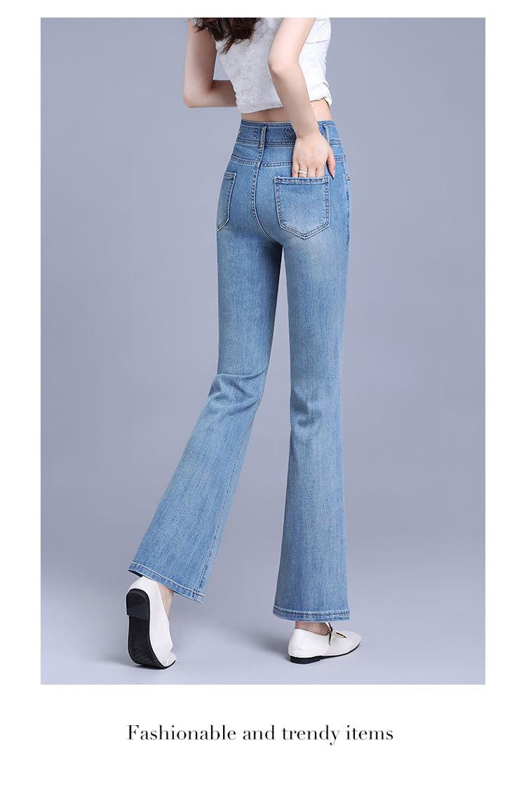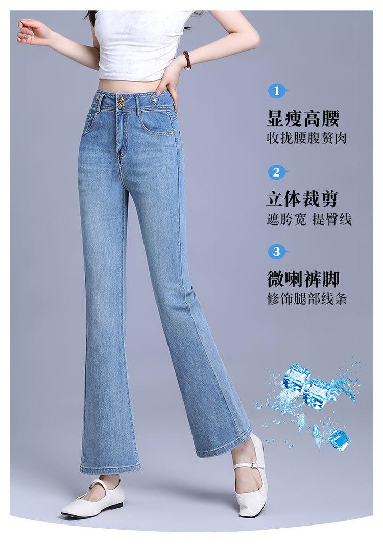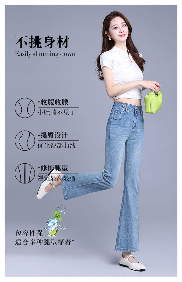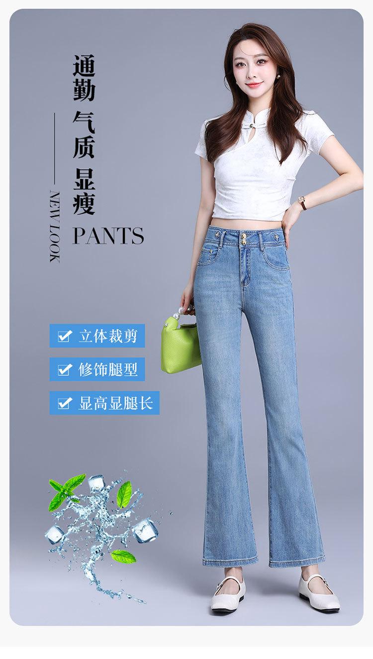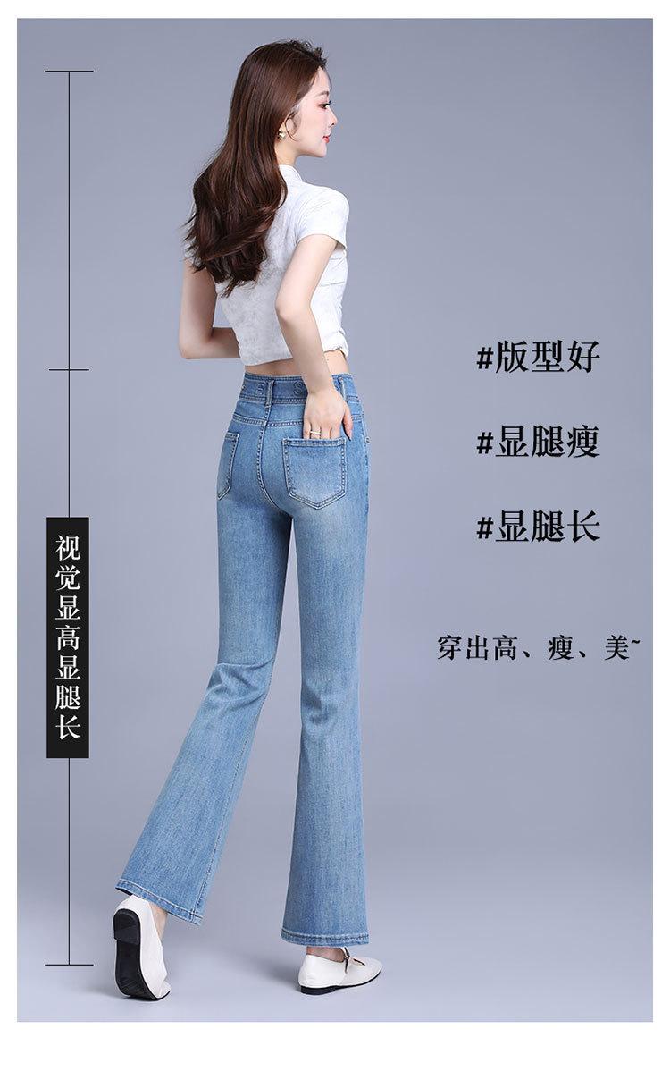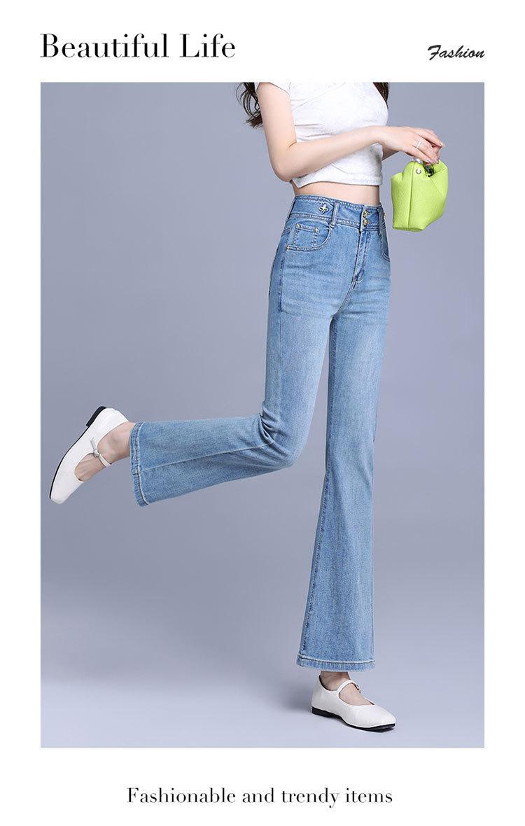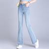 Pantalones de mezclilla acampanados modernos y sencillos para mujer 2025 Verano Nuevo Estilo Coreano Adelgazantes de Cintura Alta con Cola de Pescado