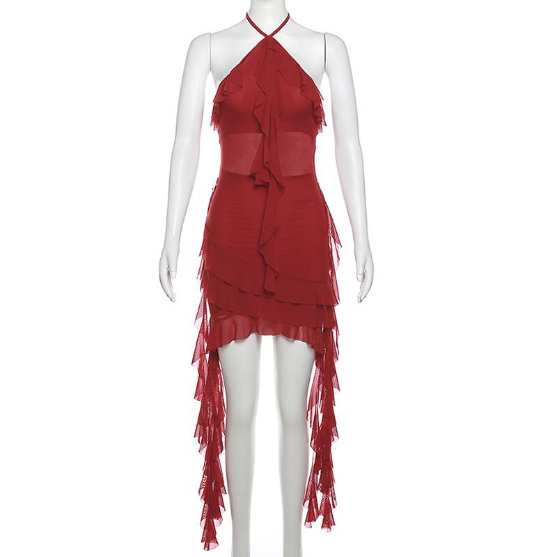 Compra Vestido de otoño e invierno 2023, estilo europeo y americano transfronterizo, nueva ropa de mujer, color sólido, ajustado, de cintura alta, moda urbana, estilo halter sin espalda al por mayor en Joom.pro