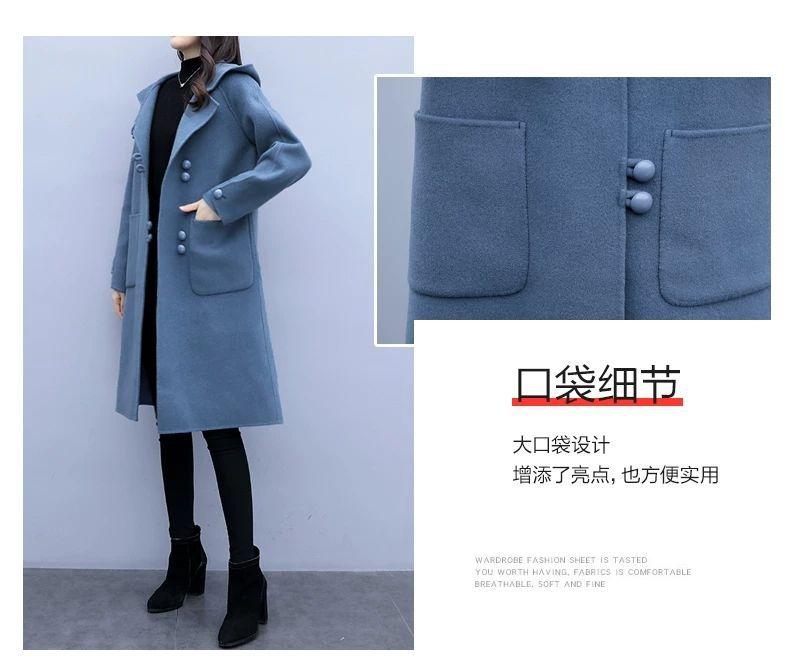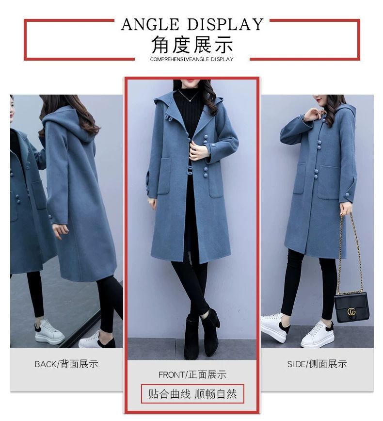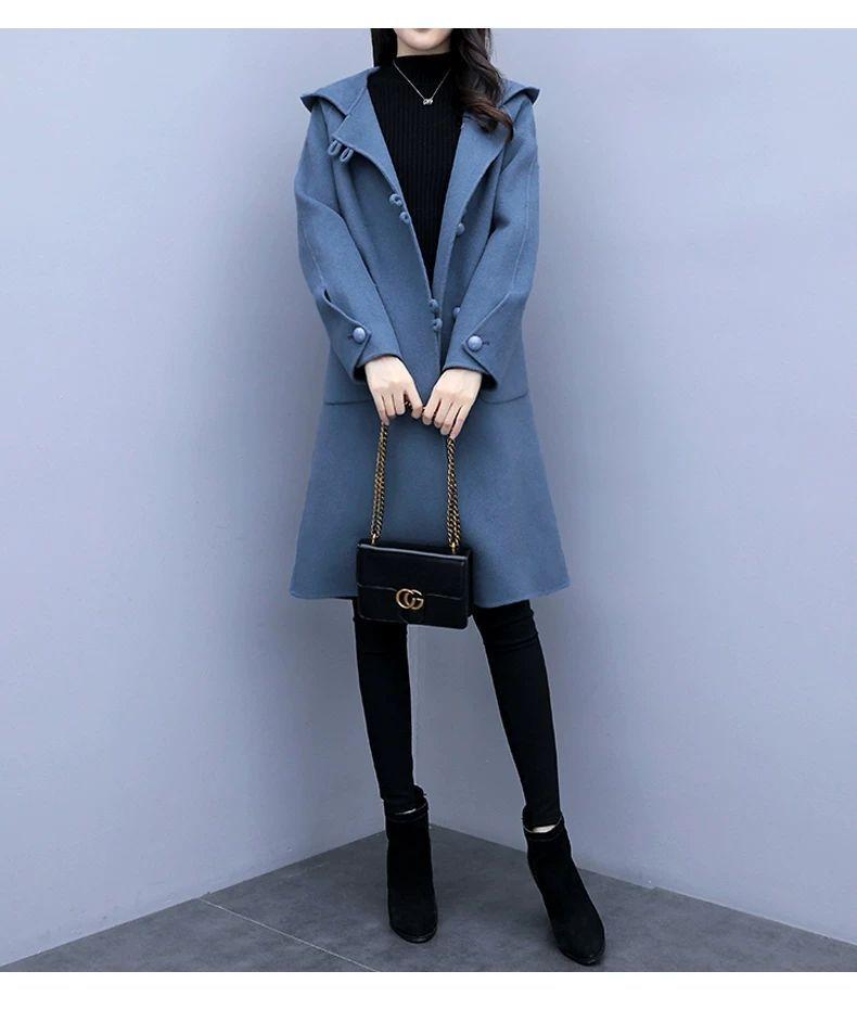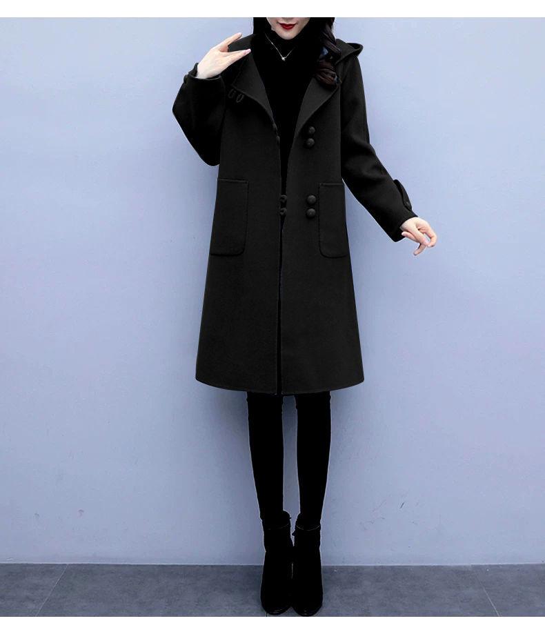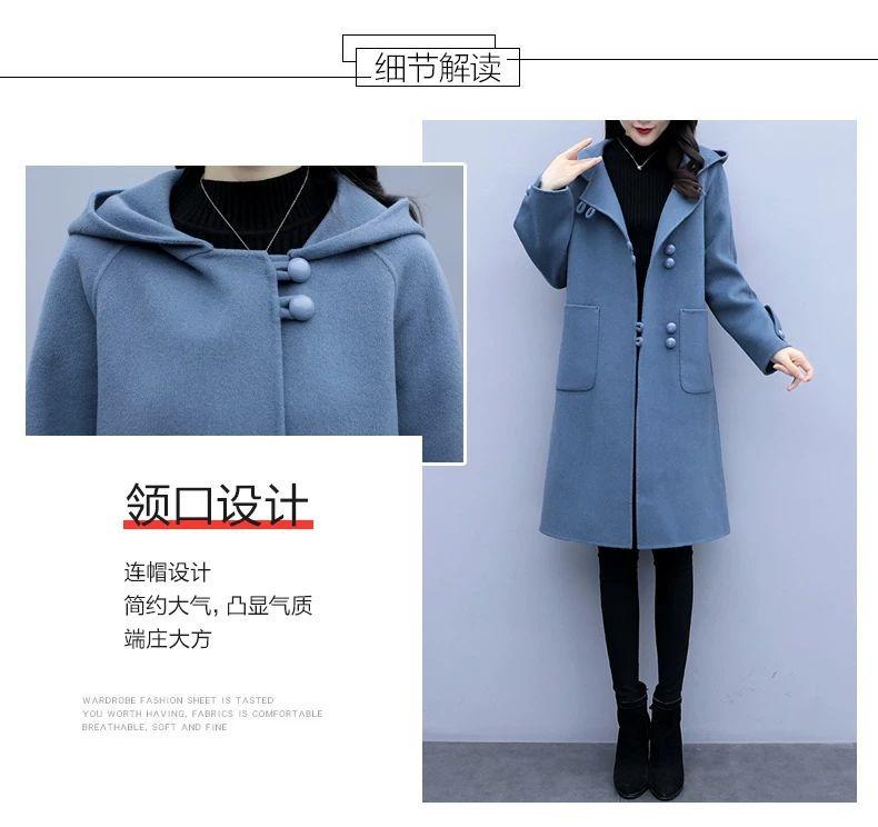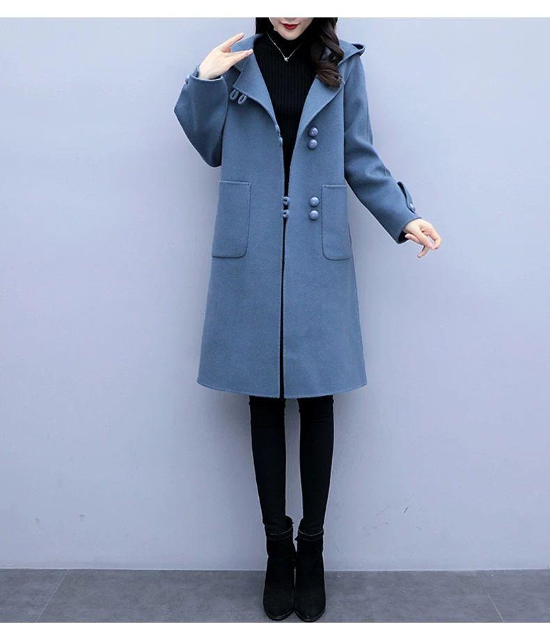 Abrigo de lana para Mujer 2020 nuevo otoño e invierno estilo coreano holgado media longitud con capucha retro abrigo de lana para mujer