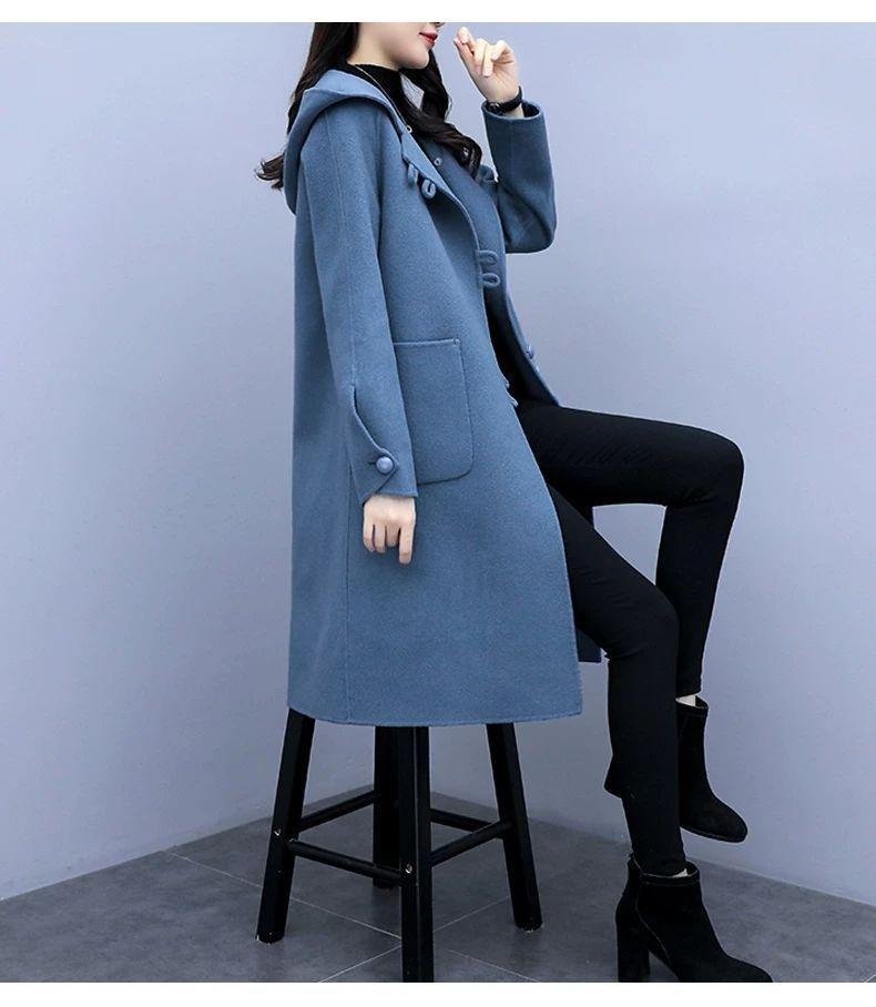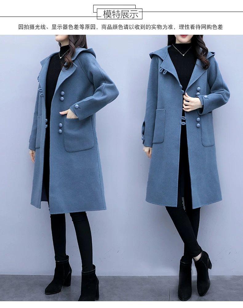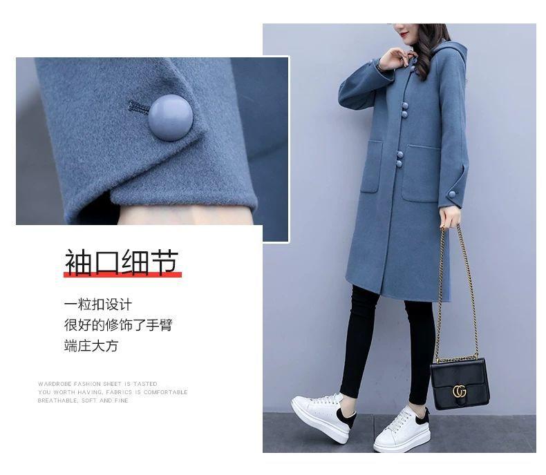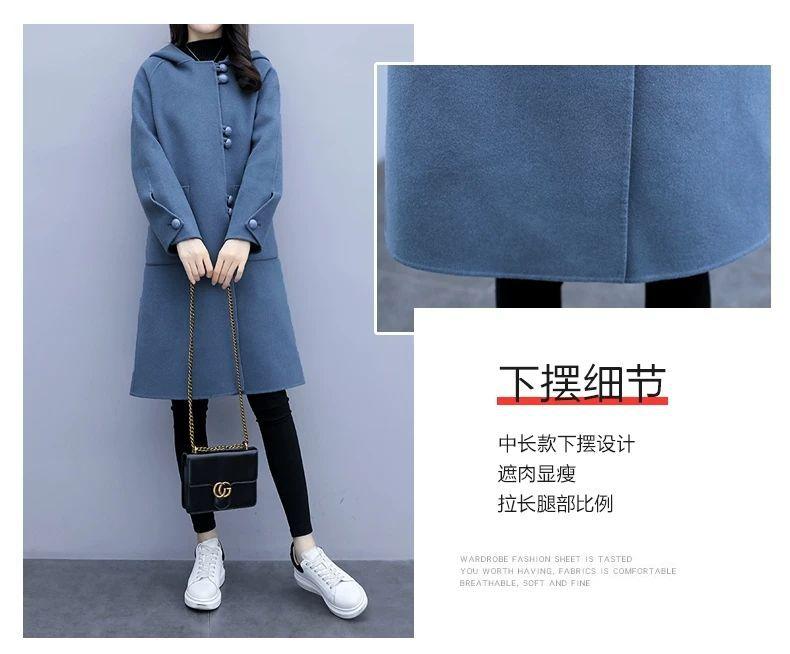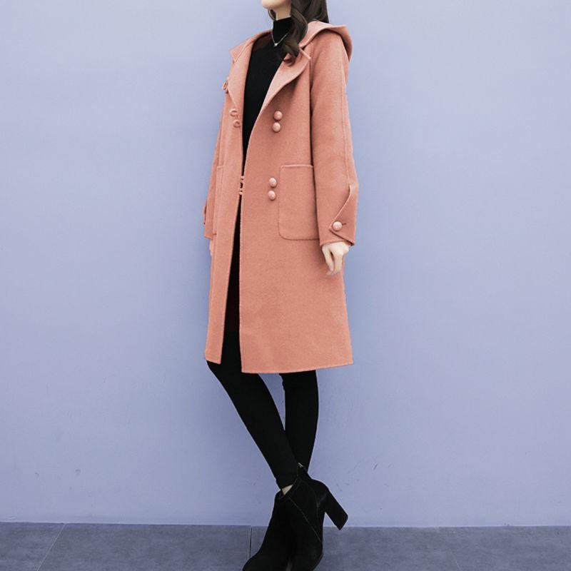 Compra Abrigo de lana para Mujer 2020 nuevo otoño e invierno estilo coreano holgado media longitud con capucha retro abrigo de lana para mujer al por mayor en Joom.pro