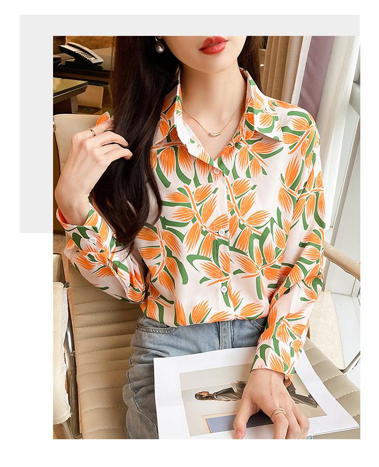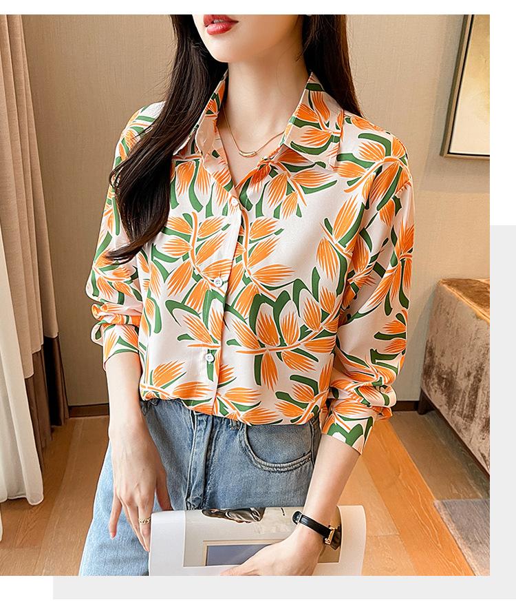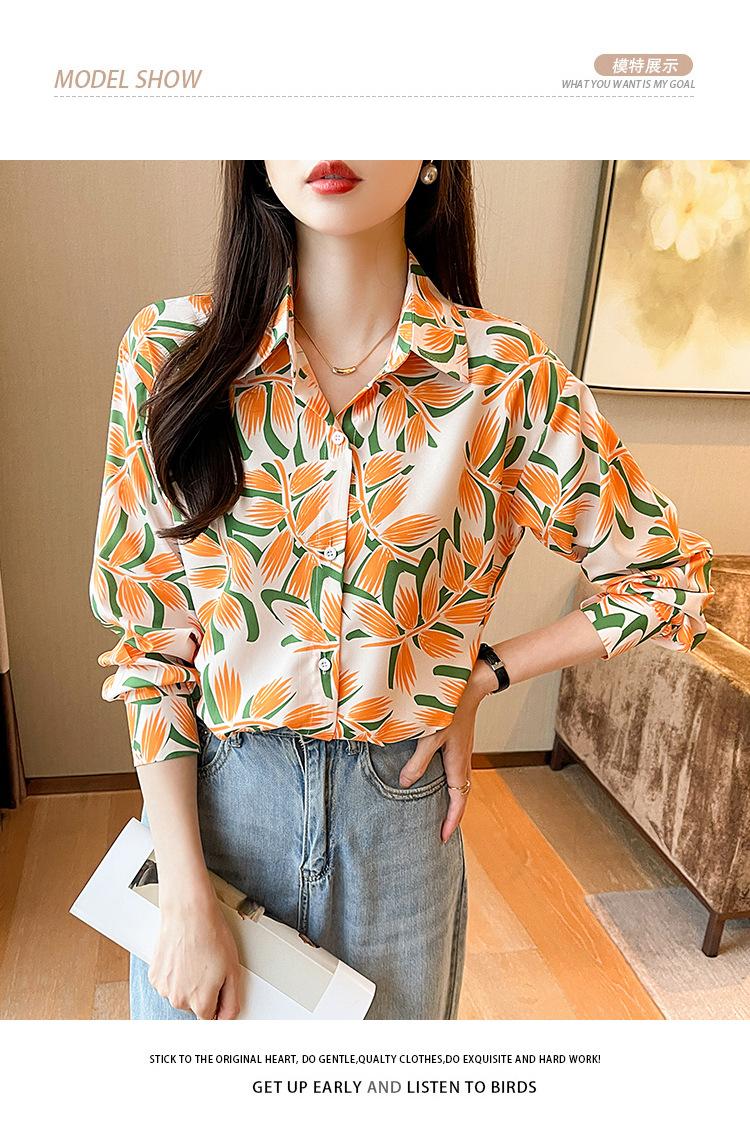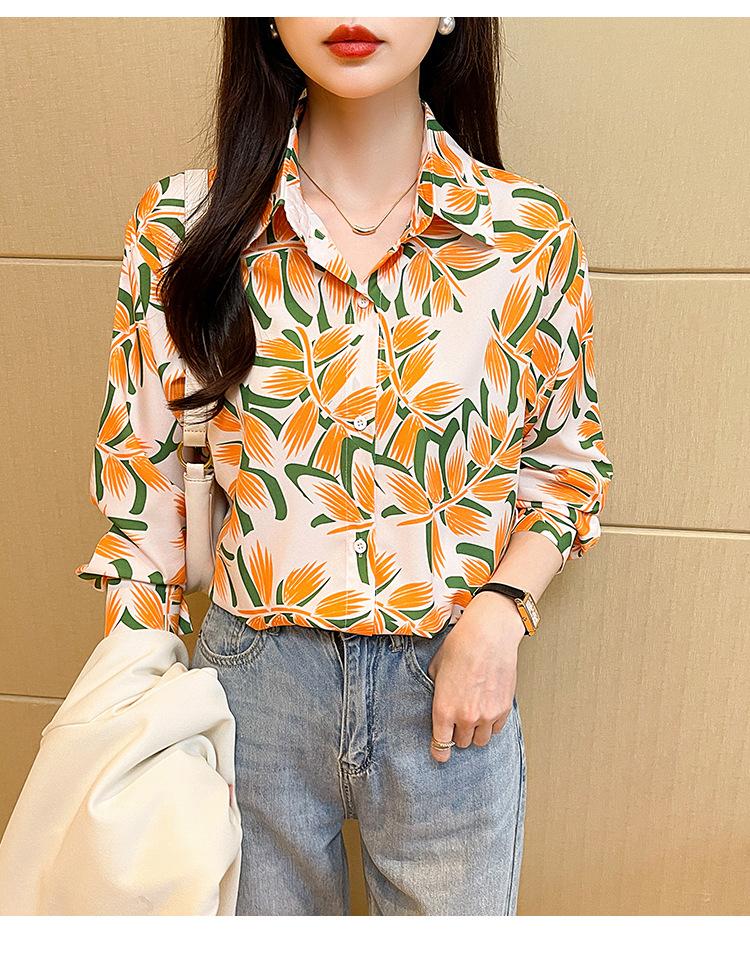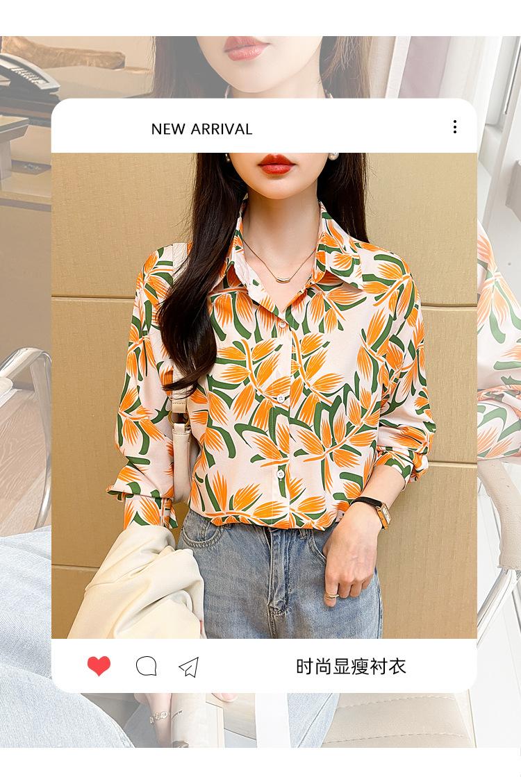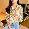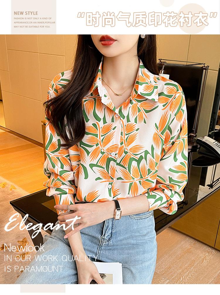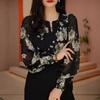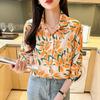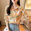Camisa estampada de exportación de comercio exterior 2024 nuevo diseño de moda nicho chic estampada manga larga versátil adelgazante