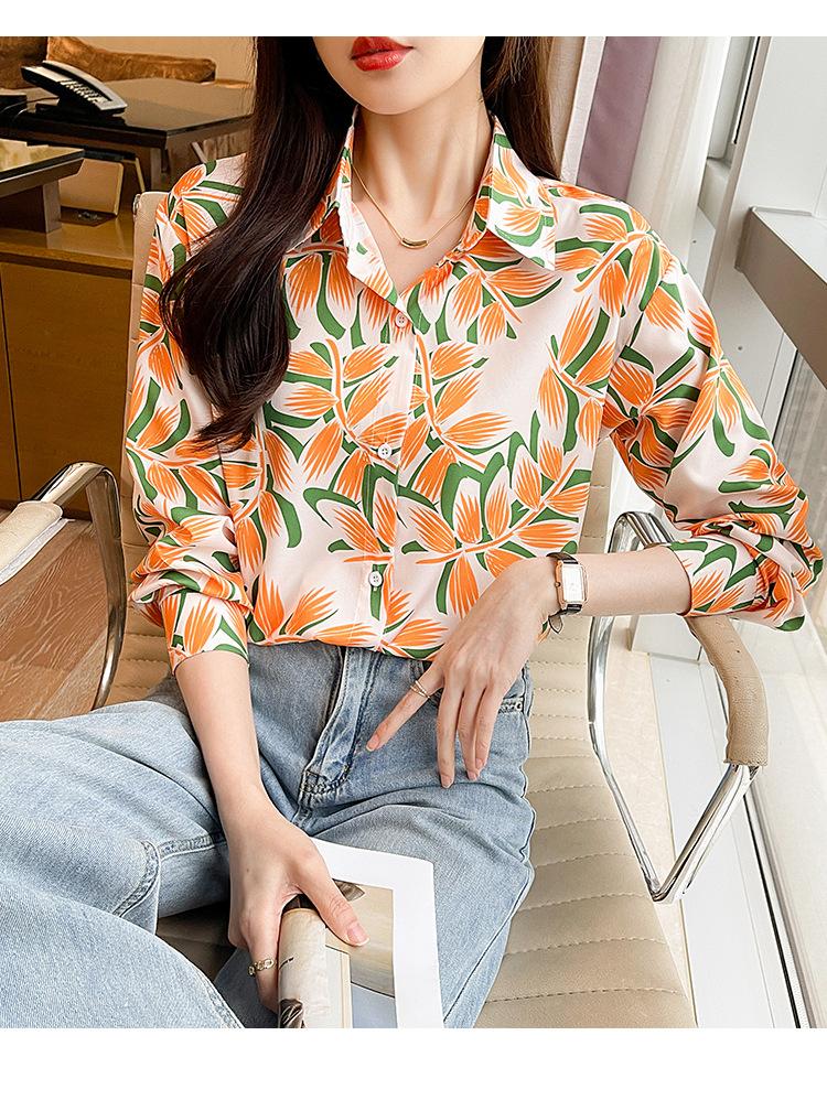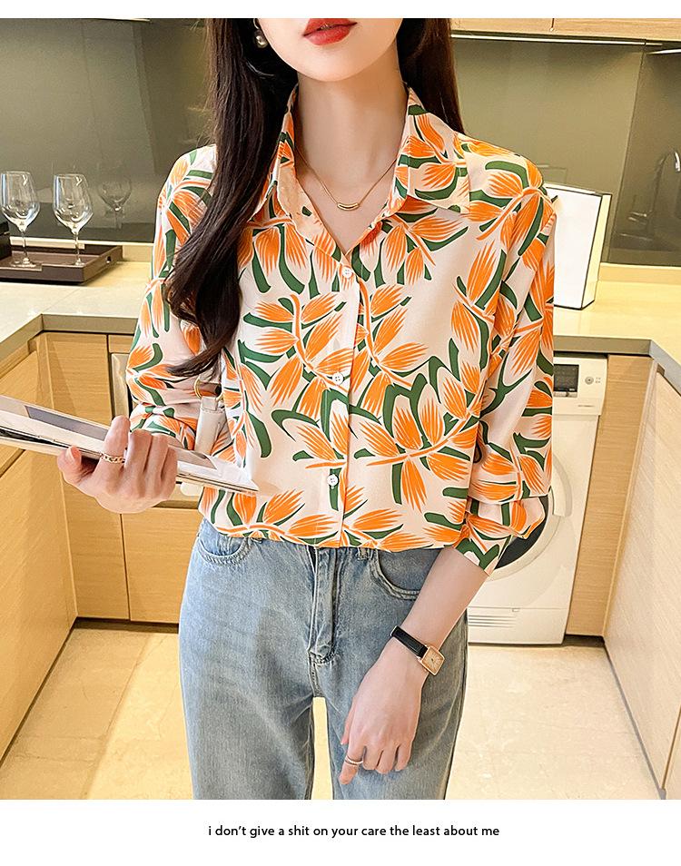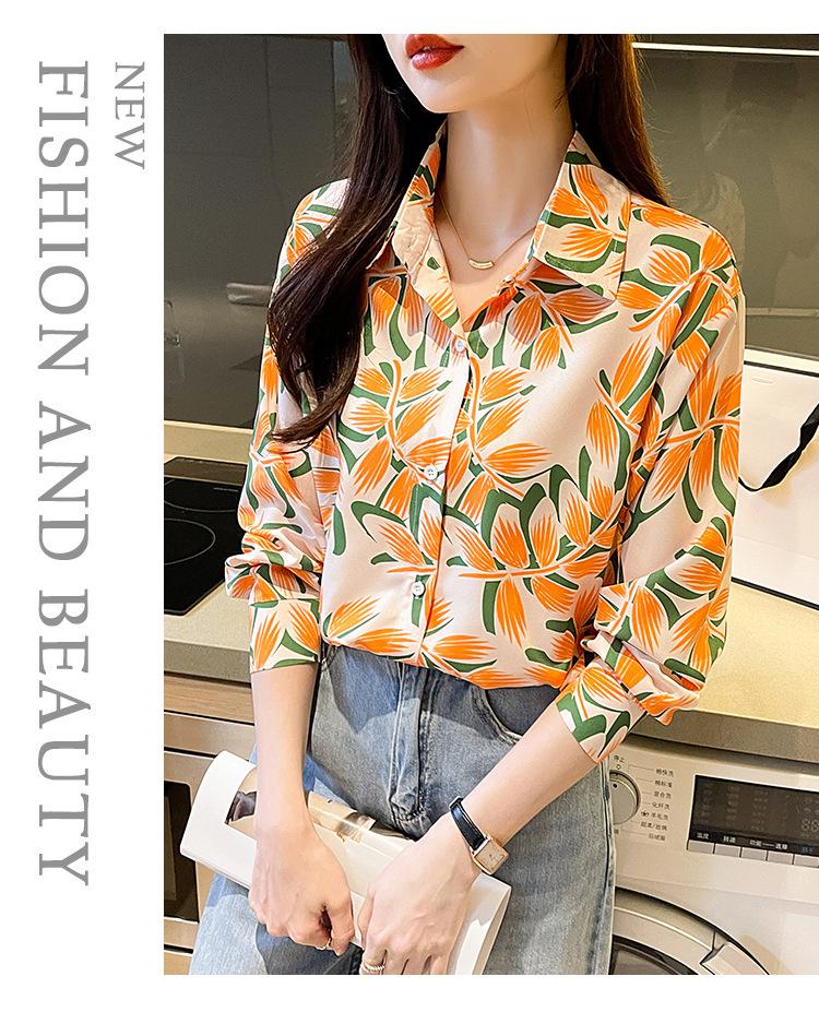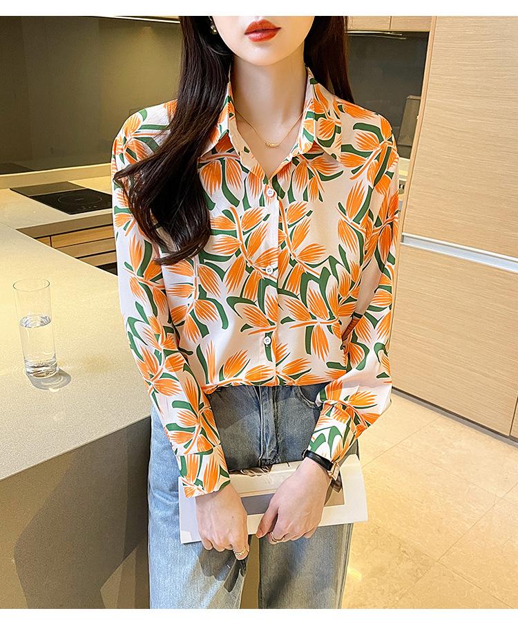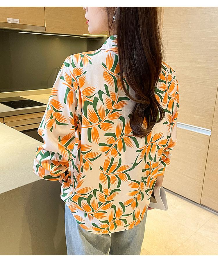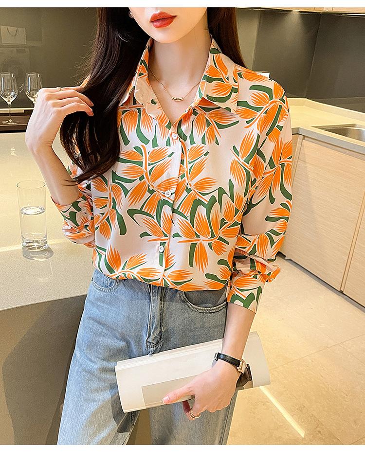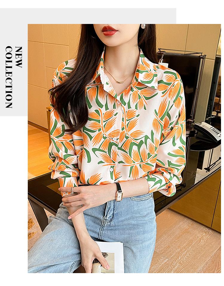 Camisa estampada de exportación de comercio exterior 2024 nuevo diseño de moda nicho chic estampada manga larga versátil adelgazante