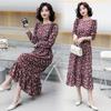 Vestido de primavera y verano de estilo coreano con estampado de papaya, cintura ajustada, cuello redondo, manga siete, lunares y longitud media.