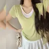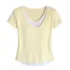 Playera de Manga Corta para Mujer con Hombros Regulares, Diseño Color Block 2025, Cuello Redondo, Falso Dos Piezas, Entallada en la Cintura, Ajuste Slim, Top Corto