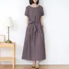 Vestido camisero a cuadros de 4 colores de buena calidad para mujer, verano 2021, manga corta, algodón, lino, largo hasta la rodilla, holgado.