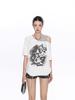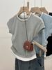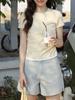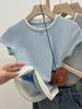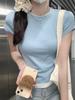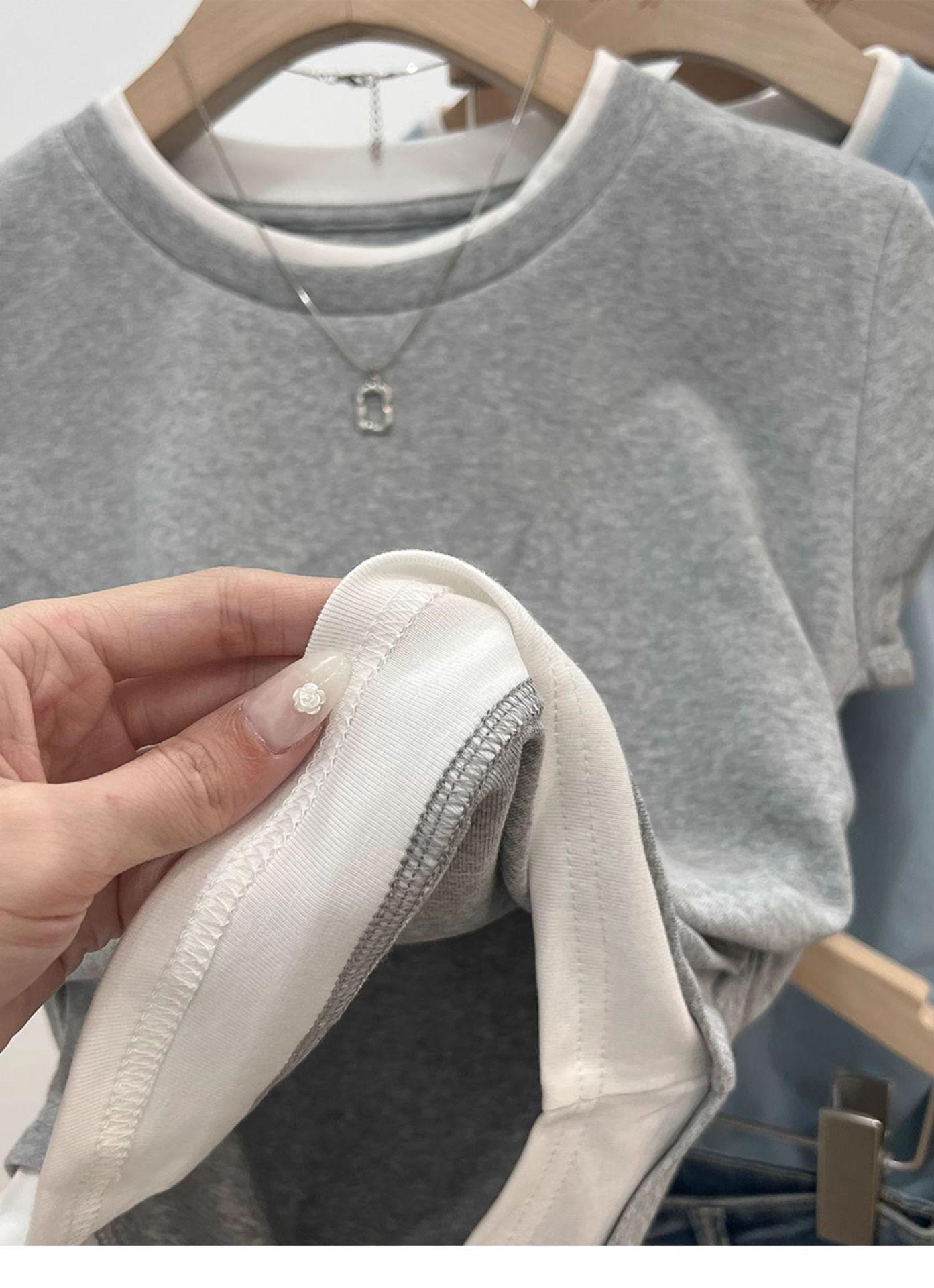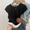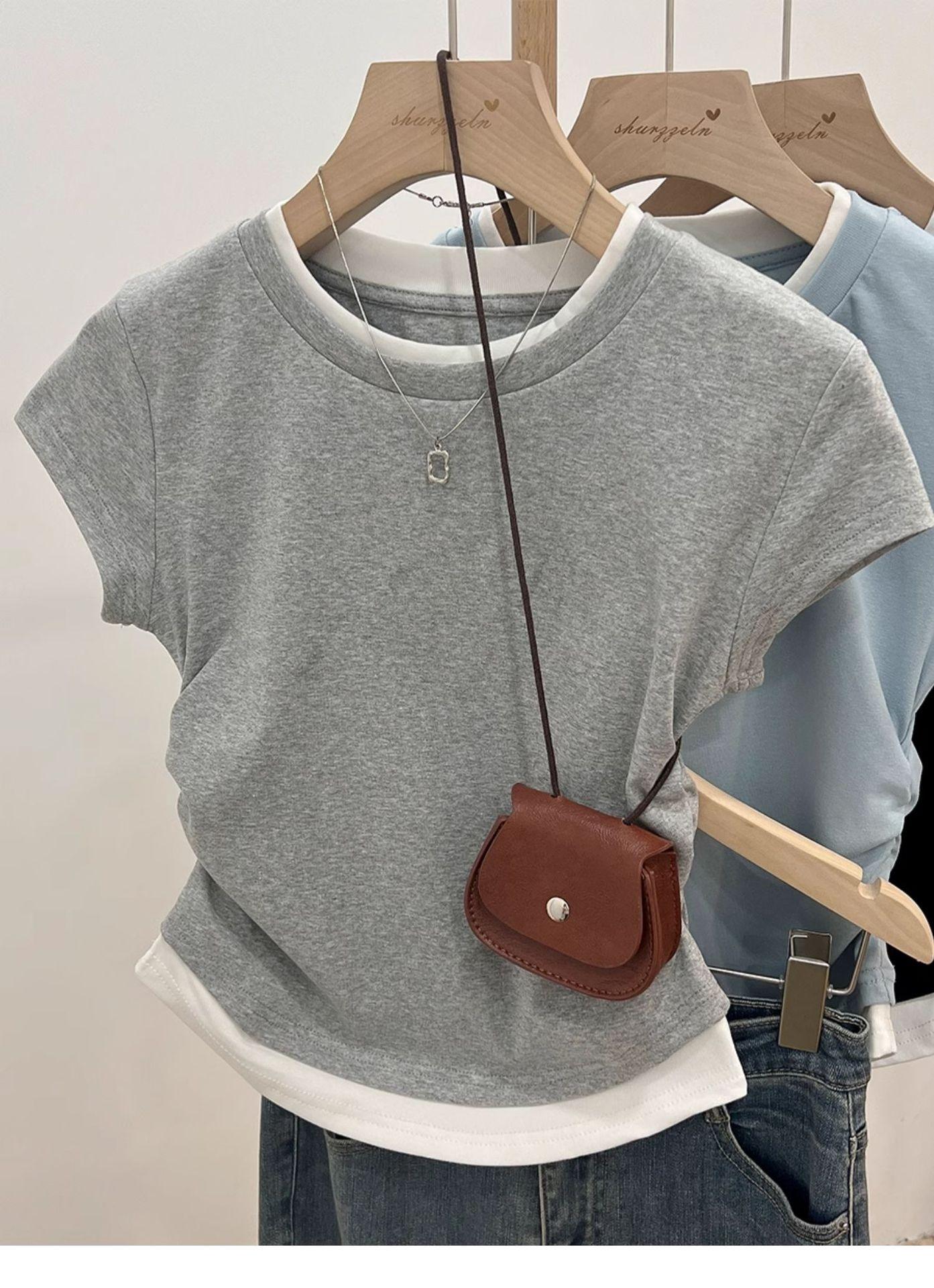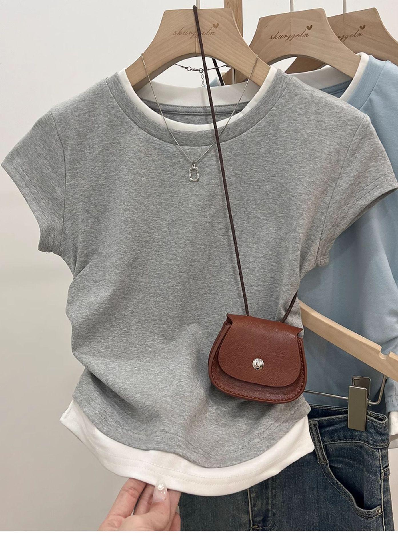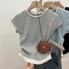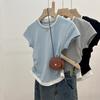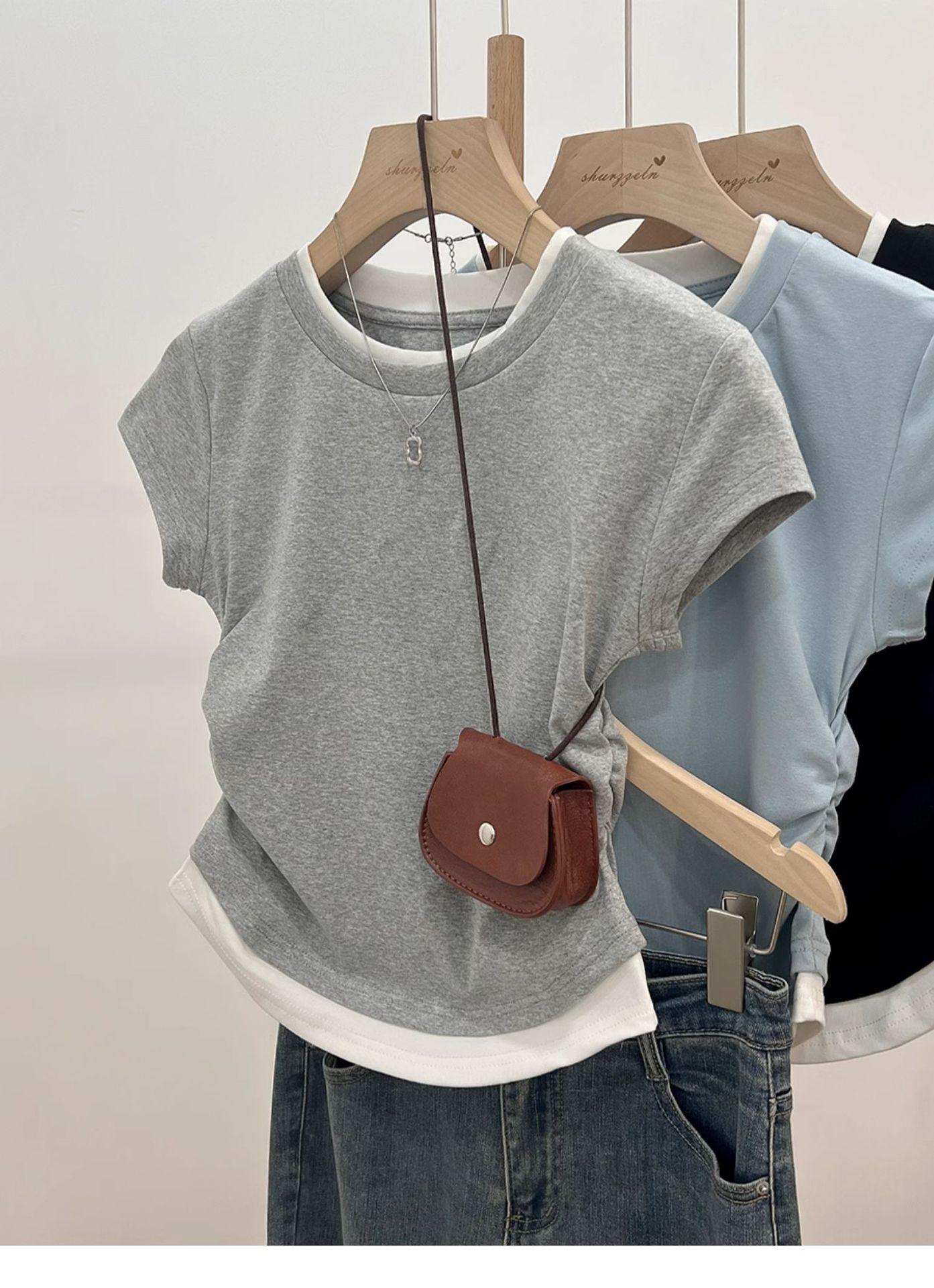 Nueva camiseta de manga corta de dos piezas con hombros descubiertos y contraste de color para mujer, diseño nuevo de verano, top corto plisado estilo Sweet Spice Girl
