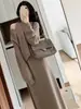 Conjunto de dos piezas de primavera y otoño con leche de papaya, abrigo de lana ajustado elegante y a la moda coreana, traje de falda de lana para mujer.