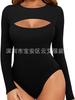 Mameluco Sexy Acanalado de Una Pieza con Cierre Frontal y Top de Manga Larga Amazon Transfronterizo Europeo y Americano 2023