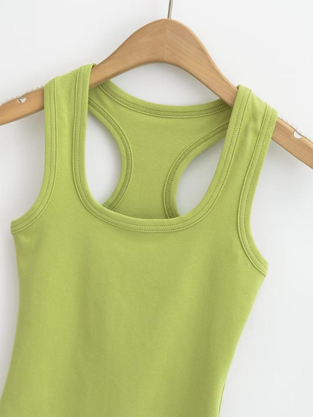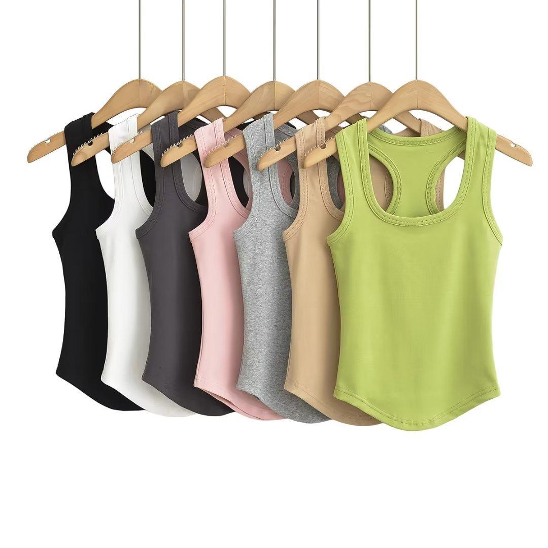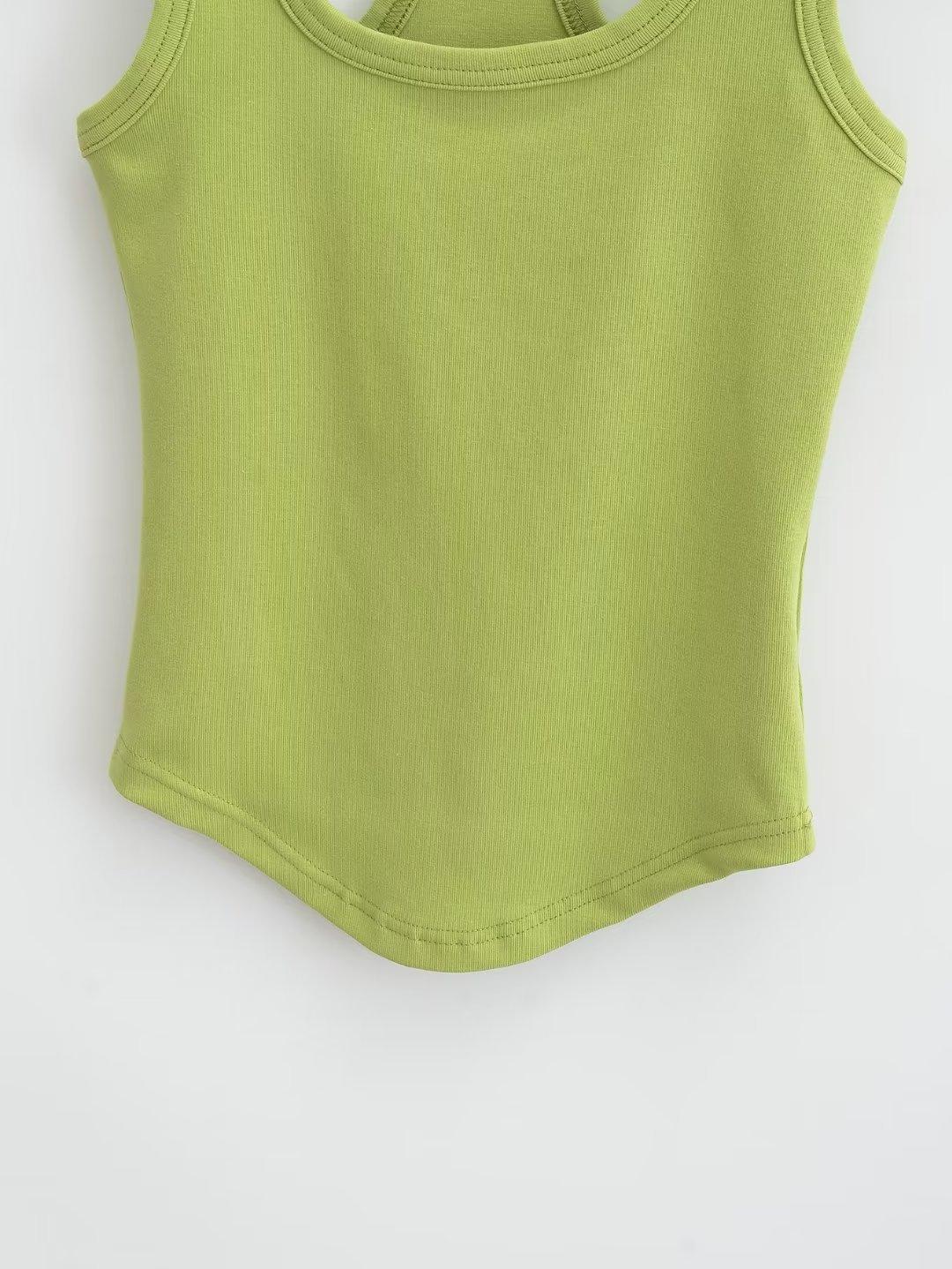 Chaleco exterior en forma de I de estilo europeo y americano de verano 2023 para mujer, sexy, elástico, ajustado, interior corto sin mangas