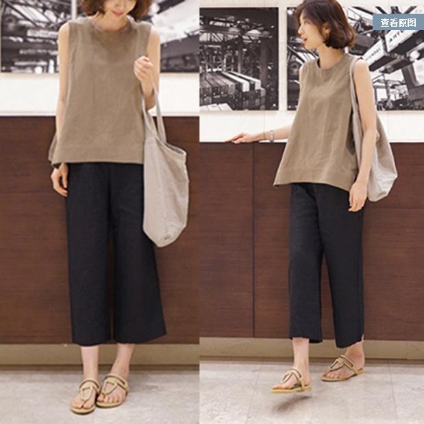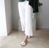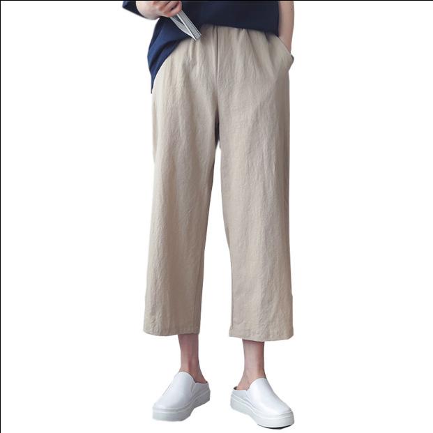 Pantalones anchos de algodón y lino para mujer, de primavera y verano, finos, de talla grande, holgados, informales, para estudiantes, para chicas gorditas, pantalones rectos cortos de lino.